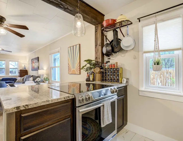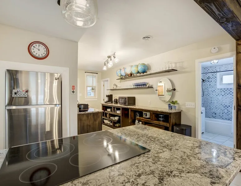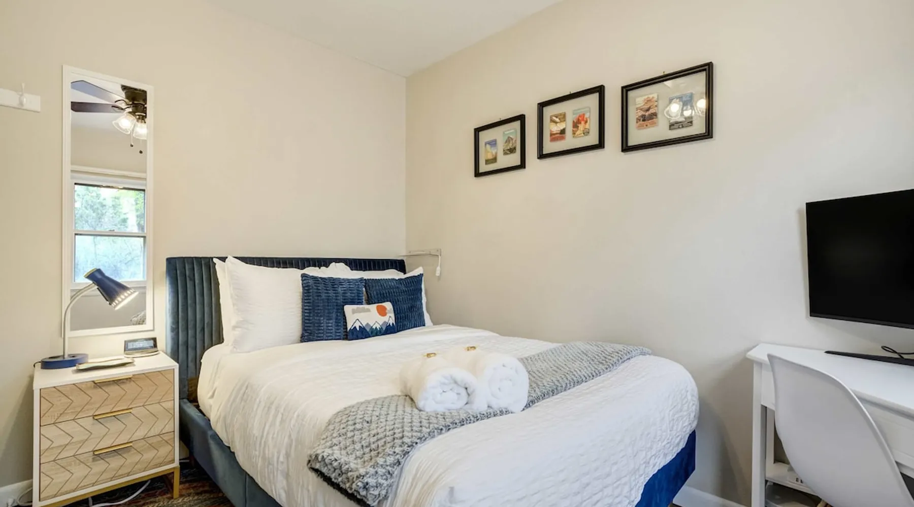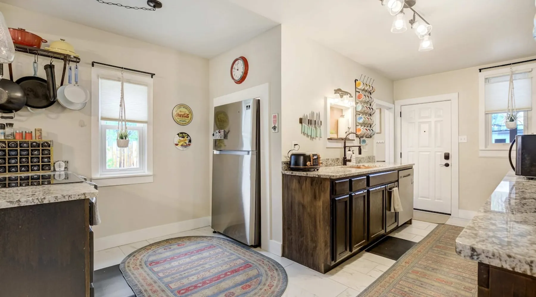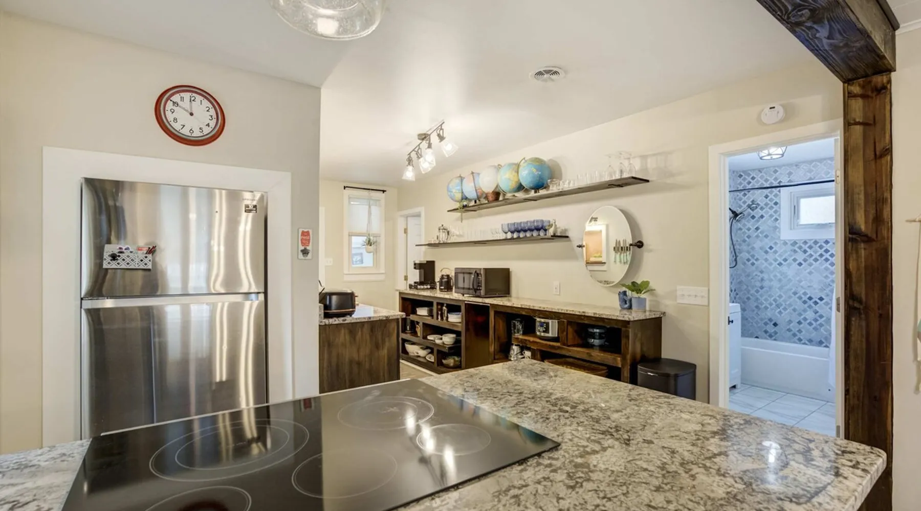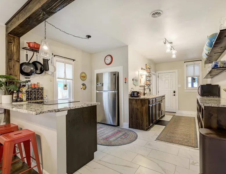 Welcome to Peakstone Nest! A cozy Colorado Springs retreat blending comfort, function, and design! 🔥 Cozy fire pit and outdoor seating area for relaxing nights 🪵 Thoughtfully designed with warm textures and rustic-modern charm 💻 Home office setup with a curved 27" external monitor 👶 Pet-friendly, includes pack-n-play and high chair for traveling families 📍 Located near Old Colorado City, parks, cafés, and downtown Book your Colorado Springs escape today! The space Peakstone Nest is a cozy single-level retreat that combines comfort, functionality, and warm design. From the open living area to the backyard fire pit and dedicated home office, every space is crafted for relaxation and ease. 🛋️ Living Room(s) The open-concept living area is full of warmth and charm, featuring a plush blue sectional, hardwood floors, and mountain-inspired artwork. Gather for movie nights, morning coffee, or game nights in this cozy, stylish space. Ceiling fans and natural light make it an easy place to unwind year-round. 🍽️ Kitchens & Dining The kitchen blends function and design with granite countertops, stainless steel appliances, and curated open shelving. A wall-mounted pot rack keeps essentials close at hand, while track lighting and a window above the sink add brightness. The adjacent dining area overlooks the backyard—ideal for relaxed meals or takeout from nearby spots. A complimentary coffee station with pods and a curated spice rack make prepping meals feel effortless. 🛏️ Bedroom/s & Sleeping Arrangement/s Bedroom 1: King bed Bedroom 2: Full bed Bedroom 3: Full-over-full bunk bed 🛁 Bathrooms The full bathroom includes a mosaic-tiled shower, LED-lit mirror, modern vanity, and a tub perfect for soaking. Stocked with plush towels and essential toiletries to keep you refreshed throughout your stay. 🧺 Laundry In-unit washer and dryer with extra storage space, making longer stays a breeze. 🌿 Outdoor Spaces Step outside to your own backyard retreat—featuring a cozy fire pit, bench seating, and a covered patio for shaded relaxation. Whether you’re enjoying a peaceful morning or gathering under the stars, this outdoor space is a guest favorite. 💻 Remote Work Setup Need to get a little work done between adventures? A dedicated workspace includes a curved 27" external monitor, comfortable desk chair, and plenty of natural light. It’s the perfect nook for video calls, creative focus, or extended remote stays. 🐾 Pet-Friendly Details Peakstone Nest is pet-friendly. If you are bringing a pet, there is a mandatory pet fee of $100 per pet, with a maximum of 2 pets allowed. Please let us know ahead of time if you plan to bring your furry friends. 👶 Kid-Friendly Touches Includes a pack-n-play and high chair to make family travel easy and comfortable. 🅿️ Parking Front street parking is available, along with one private spot in the back off the alleyway. Guest access 🔑You'll have full access to the entire home, including all bedrooms, living areas, the kitchen, and outdoor spaces. Feel free to make yourself at home and enjoy everything the space has to offer. If you have any questions or need anything during your stay, just let us know—we’re happy to help! Other things to note 📜 Rental Agreement: For a seamless booking experience, a Rental Agreement is required for all reservations. Once your reservation is confirmed, we’ll provide details for completing the agreement. 🔑 Check-In Process: For a seamless check-in experience, your unique code along with your check-in instructions will be updated into your personalized guidebook on the morning of your arrival. You’ll use this code for entry. ☕ Starter Supply: We’ve prepared a starter supply that includes paper towels, coffee K-cups, toilet paper, shampoo, body wash, and plush white towels! We hope these amenities add an extra touch of comfort to your stay. ⏰ Unauthorized Late Checkout Fee: $20 Per Half Hour Late 💵 Additional Fees: For guests bringing dogs, there is a mandatory pet fee of $100 per dog, collected after booking. A maximum of 2 dogs is allowed per reservation unless otherwise approved. No other animals are permitted. Optional services, including early check-in, late check-out, and additional guests, can be arranged upon request and are subject to availability. These additional fees help cover the cost of reworking the schedule or adding an additional cleaner if needed. Please message us ahead of time for pricing and availability.