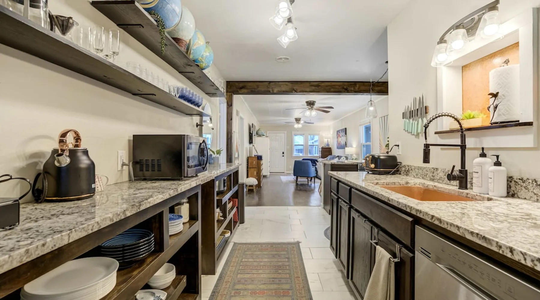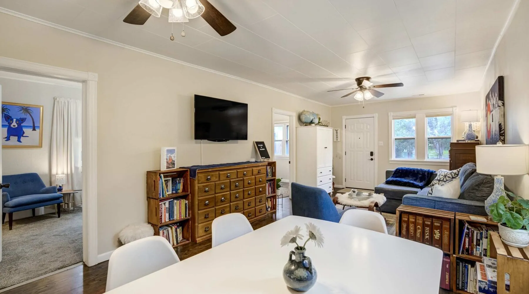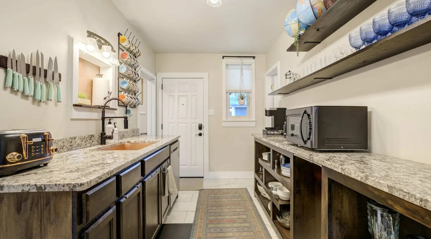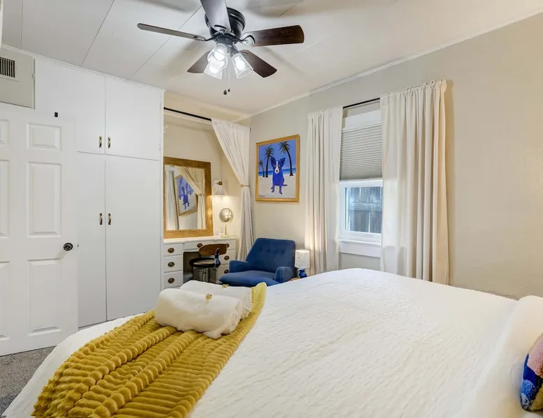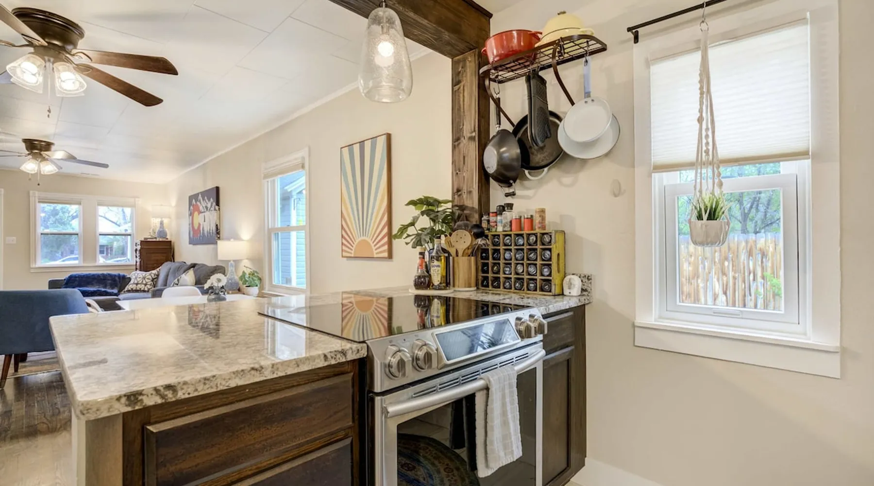 Welcome to Peakstone Nest! A cozy Colorado Springs retreat blending comfort, function, and design! 🔥 Cozy fire pit and outdoor seating area for relaxing nights 🪵 Thoughtfully designed with warm textures and rustic-modern charm 💻 Home office setup with a curved 27" external monitor 👶 Pet-friendly, includes pack-n-play and high chair for traveling families 📍 Located near Old Colorado City, parks, cafés, and downtown Book your Colorado Springs escape today! The space Peakstone Nest is a cozy single-level retreat that combines comfort, functionality, and warm design. From the open living area to the backyard fire pit and dedicated home office, every space is crafted for relaxation and ease. 🛋️ Living Room(s) The open-concept living area is full of warmth and charm, featuring a plush blue sectional, hardwood floors, and mountain-inspired artwork. Gather for movie nights, morning coffee, or game nights in this cozy, stylish space. Ceiling fans and natural light make it an easy place to unwind year-round. 🍽️ Kitchens & Dining The kitchen blends function and design with granite countertops, stainless steel appliances, and curated open shelving. A wall-mounted pot rack keeps essentials close at hand, while track lighting and a window above the sink add brightness. The adjacent dining area overlooks the backyard—ideal for relaxed meals or takeout from nearby spots. A complimentary coffee station with pods and a curated spice rack make prepping meals feel effortless. 🛏️ Bedroom/s & Sleeping Arrangement/s Bedroom 1: King bed Bedroom 2: Full bed Bedroom 3: Full-over-full bunk bed 🛁 Bathrooms The full bathroom includes a mosaic-tiled shower, LED-lit mirror, modern vanity, and a tub perfect for soaking. Stocked with plush towels and essential toiletries to keep you refreshed throughout your stay. 🧺 Laundry In-unit washer and dryer with extra storage space, making longer stays a breeze. 🌿 Outdoor Spaces Step outside to your own backyard retreat—featuring a cozy fire pit, bench seating, and a covered patio for shaded relaxation. Whether you’re enjoying a peaceful morning or gathering under the stars, this outdoor space is a guest favorite. 💻 Remote Work Setup Need to get a little work done between adventures? A dedicated workspace includes a curved 27" external monitor, comfortable desk chair, and plenty of natural light. It’s the perfect nook for video calls, creative focus, or extended remote stays. 🐾 Pet-Friendly Details Peakstone Nest is pet-friendly. If you are bringing a pet, there is a mandatory pet fee of $100 per pet, with a maximum of 2 pets allowed. Please let us know ahead of time if you plan to bring your furry friends. 👶 Kid-Friendly Touches Includes a pack-n-play and high chair to make family travel easy and comfortable. 🅿️ Parking Front street parking is available, along with one private spot in the back off the alleyway. Guest access 🔑You'll have full access to the entire home, including all bedrooms, living areas, the kitchen, and outdoor spaces. Feel free to make yourself at home and enjoy everything the space has to offer. If you have any questions or need anything during your stay, just let us know—we’re happy to help! Other things to note 📜 Rental Agreement: For a seamless booking experience, a Rental Agreement is required for all reservations. Once your reservation is confirmed, we’ll provide details for completing the agreement. 🔑 Check-In Process: For a seamless check-in experience, your unique code along with your check-in instructions will be updated into your personalized guidebook on the morning of your arrival. You’ll use this code for entry. ☕ Starter Supply: We’ve prepared a starter supply that includes paper towels, coffee K-cups, toilet paper, shampoo, body wash, and plush white towels! We hope these amenities add an extra touch of comfort to your stay. ⏰ Unauthorized Late Checkout Fee: $20 Per Half Hour Late 💵 Additional Fees: For guests bringing dogs, there is a mandatory pet fee of $100 per dog, collected after booking. A maximum of 2 dogs is allowed per reservation unless otherwise approved. No other animals are permitted. Optional services, including early check-in, late check-out, and additional guests, can be arranged upon request and are subject to availability. These additional fees help cover the cost of reworking the schedule or adding an additional cleaner if needed. Please message us ahead of time for pricing and availability.