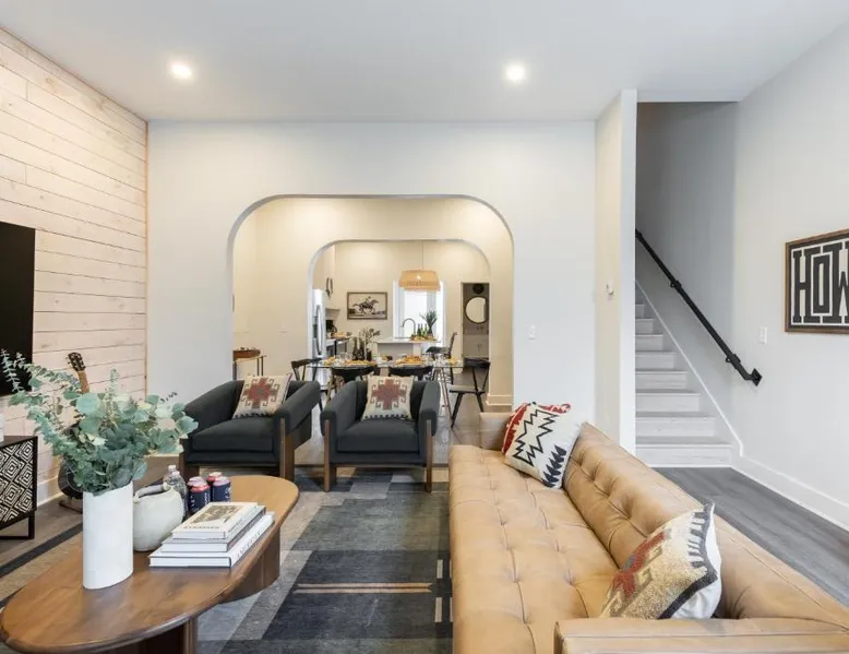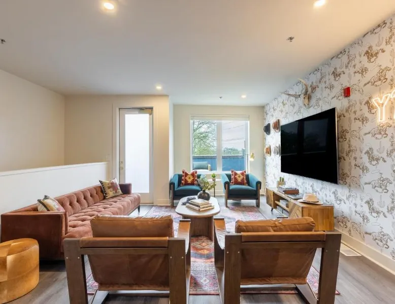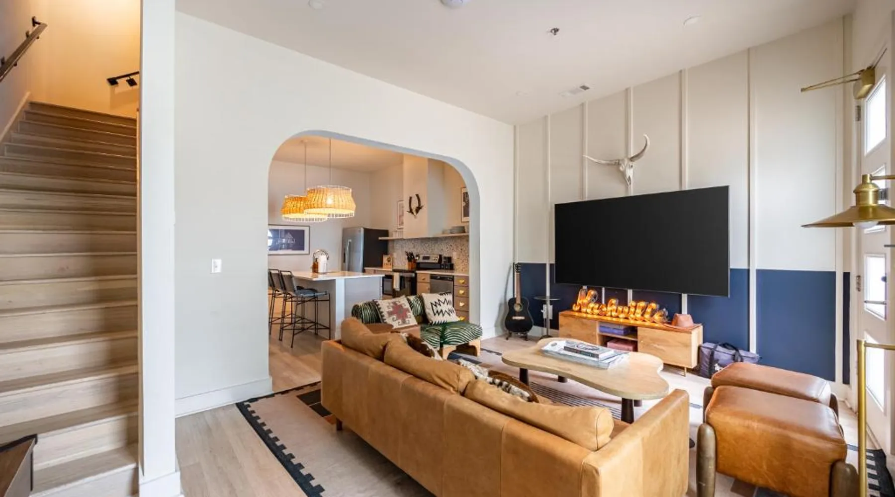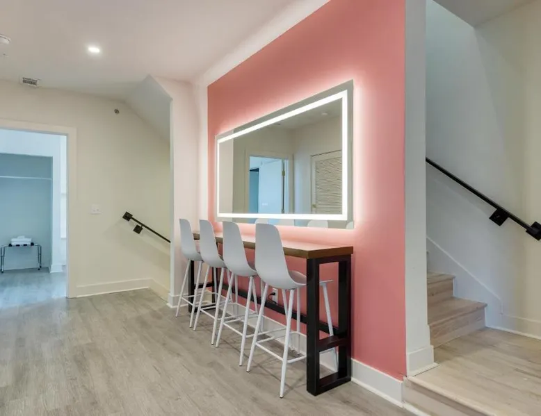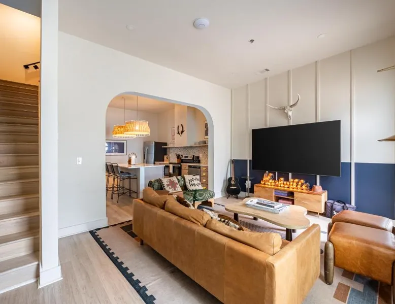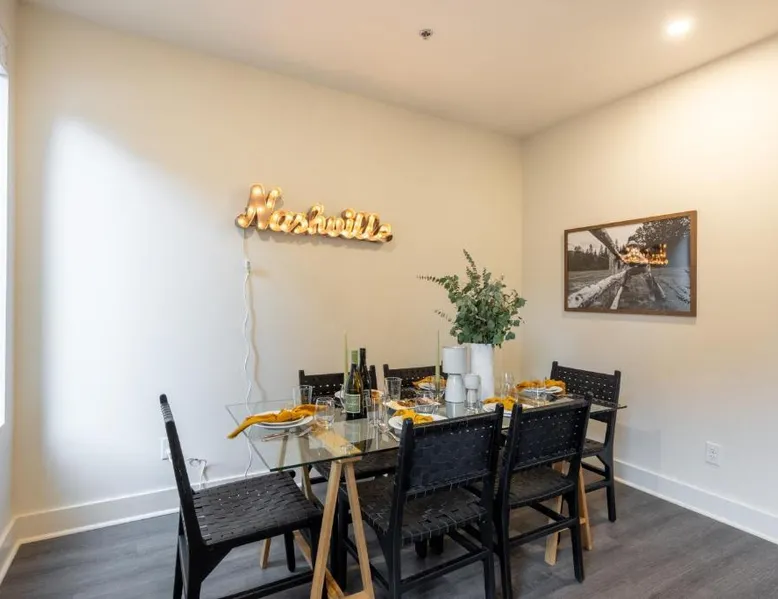 Comfortable Living: Outrider 1012 by AvantStay Close to Broadway Downtown w Balcony in Nashville offers a holiday home with a private bathroom, kitchen, and balcony. Guests enjoy free WiFi, air-conditioning, and a terrace. Modern Amenities: The property includes a tea and coffee maker, hairdryer, refrigerator, free toiletries, shower, kitchenware, oven, toaster, washing machine, microwave, dishwasher, TV, and work desk. Additional features include a dining area, outdoor furniture, and streaming services. Prime Location: Located 6.8 mi from Nashville International Airport, the holiday home is near Nissan Stadium (1.9 mi), Johnny Cash Museum (2.3 mi), and Ryman Auditorium (2.4 mi). Other attractions include Bridgestone Arena (2.5 mi) and Vanderbilt University (3.7 mi). Highly rated by guests. The spacious holiday home has 4 bedrooms and 3 bathrooms with a shower and free toiletries. Guests can make meals in the kitchen that features a stovetop, a refrigerator, a dishwasher and kitchenware. The air-conditioned holiday home features a flat-screen TV, a washing machine, a tea and coffee maker, a wardrobe as well as city views. The unit has 5 beds.