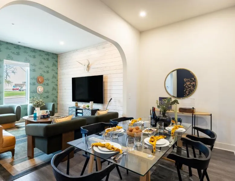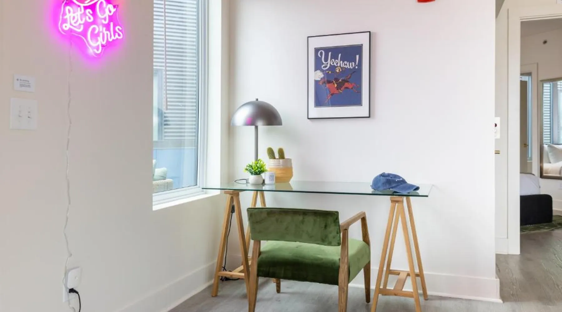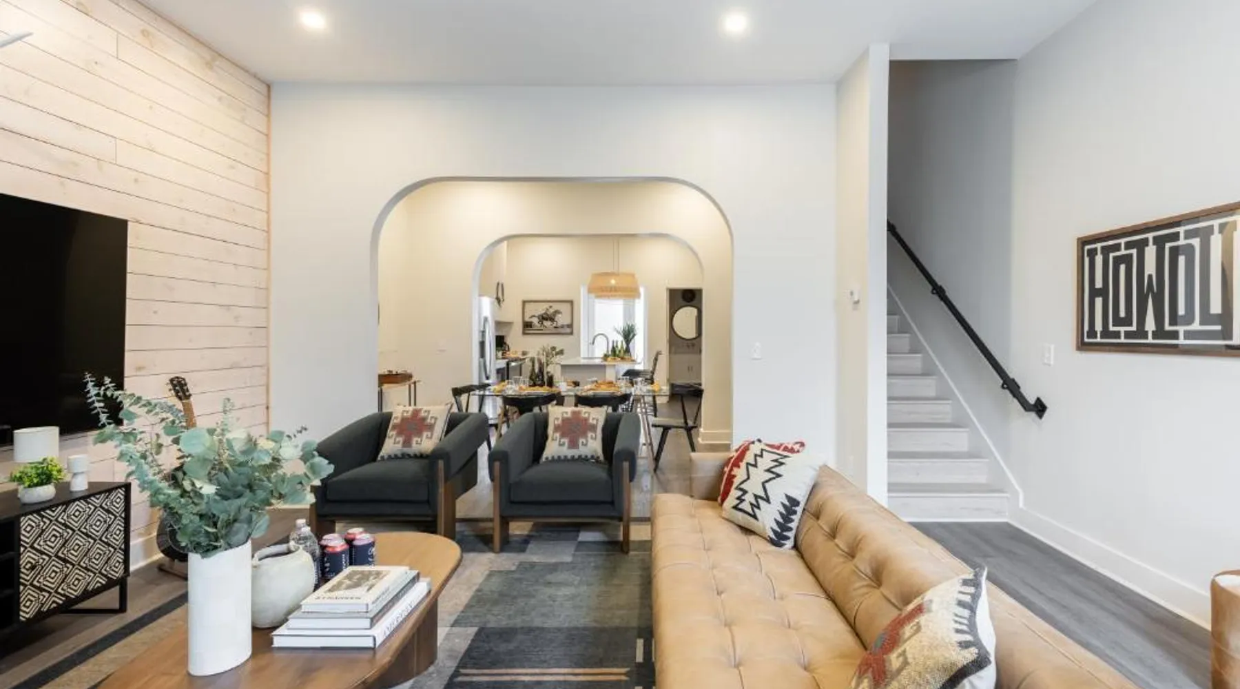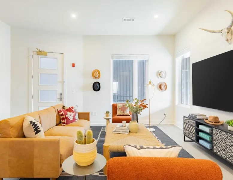 Comfortable Living: Outrider 1012 by AvantStay Close to Broadway Downtown w Balcony in Nashville offers a holiday home with a private bathroom, kitchen, and balcony. Guests enjoy free WiFi, air-conditioning, and a terrace. Modern Amenities: The property includes a tea and coffee maker, hairdryer, refrigerator, free toiletries, shower, kitchenware, oven, toaster, washing machine, microwave, dishwasher, TV, and work desk. Additional features include a dining area, outdoor furniture, and streaming services. Prime Location: Located 6.8 mi from Nashville International Airport, the holiday home is near Nissan Stadium (1.9 mi), Johnny Cash Museum (2.3 mi), and Ryman Auditorium (2.4 mi). Other attractions include Bridgestone Arena (2.5 mi) and Vanderbilt University (3.7 mi). Highly rated by guests. The spacious holiday home has 4 bedrooms and 3 bathrooms with a shower and free toiletries. Guests can make meals in the kitchen that features a stovetop, a refrigerator, a dishwasher and kitchenware. The air-conditioned holiday home features a flat-screen TV, a washing machine, a tea and coffee maker, a wardrobe as well as city views. The unit has 5 beds.