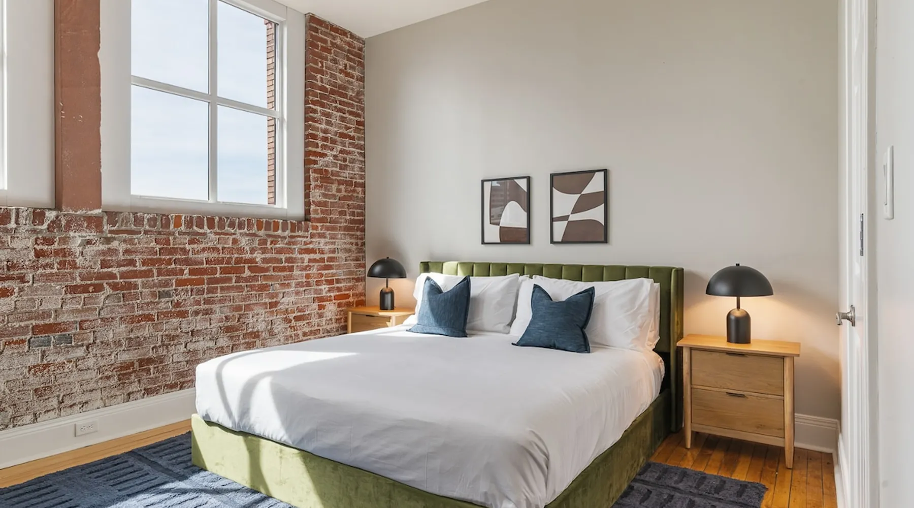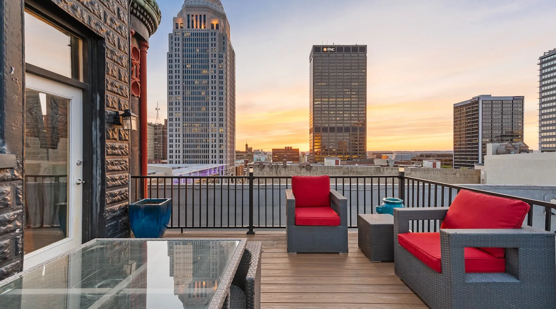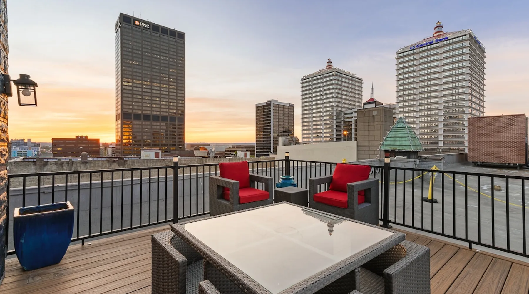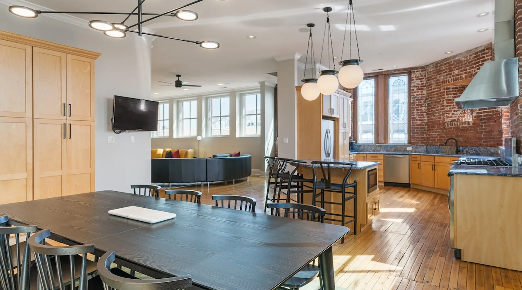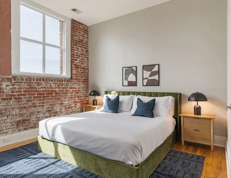 Stay at this stunning 5-bedroom, 4-bathroom penthouse atop the iconic Levy Building in downtown Louisville. Perfect for groups up to 12—featuring a rooftop turret turned private bourbon tasting room with skyline views from a private deck. Enjoy a fully equipped kitchen, spacious living areas, and elegant details throughout. Walk to top restaurants, bars, museums, the convention center, and the riverfront—then unwind with a nightcap under the stars. The space The unit has 5 full bedrooms and sleeps up to 12 guests (3 king beds, 1 queen, 2 twins, and 1 pull out couch with queen sized bed located in the primary suite), with 4 full bathrooms. The Levy Building is centrally located to many of Louisville's popular attractions and amenities: - Kentucky Int'l Convention Center: 100 feet - Yum! Center: 500 feet - Derby City Gaming: 500 feet - Whiskey Row: .2 miles - Actor's Theater: 500 feet - Churchill Downs: 4.1 miles - Kentucky Expo/Fairgrounds: 4 miles - Louisville Slugger Field: .9 miles - Louisville Int'l Airport: 5.8 miles - Lynn Family Stadium: 1.6 miles - Waterfront Park: 1 mile - Angels' Envy Distillery: .6 miles - Old Forrester Distillery: .3 miles - Michter's Fort Nelson Distillery: .4 miles - Kentucky Peerless Distillery: 1 mile Guest access Guests that have access to the entire unit plus common spaces within the Levy building. Common spaces include a well equipped gym. Two (2) parking passes are included with the stay. Other things to note - The maximum number of occupants for this short term rental may not exceed 12 guests. - Guests are prohibited from allowing more individuals than the maximum occupancy allows. - Guests are prohibited from having parties or other events. - Quiet time hours (10:00 PM - 8:00 AM) are strictly enforced. Registration Details LIC-STL-24-01088