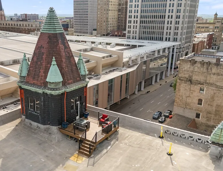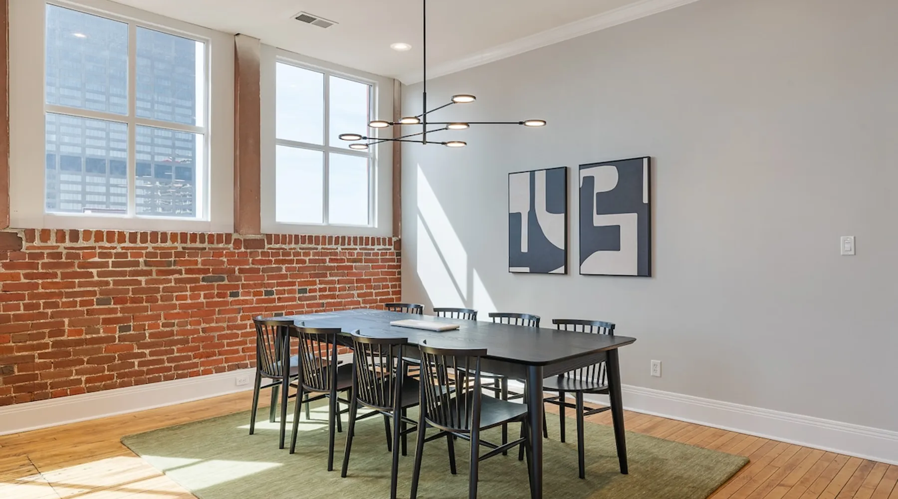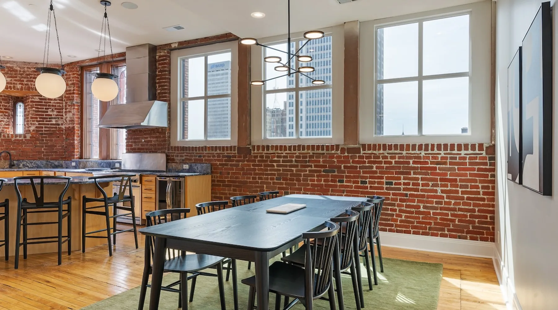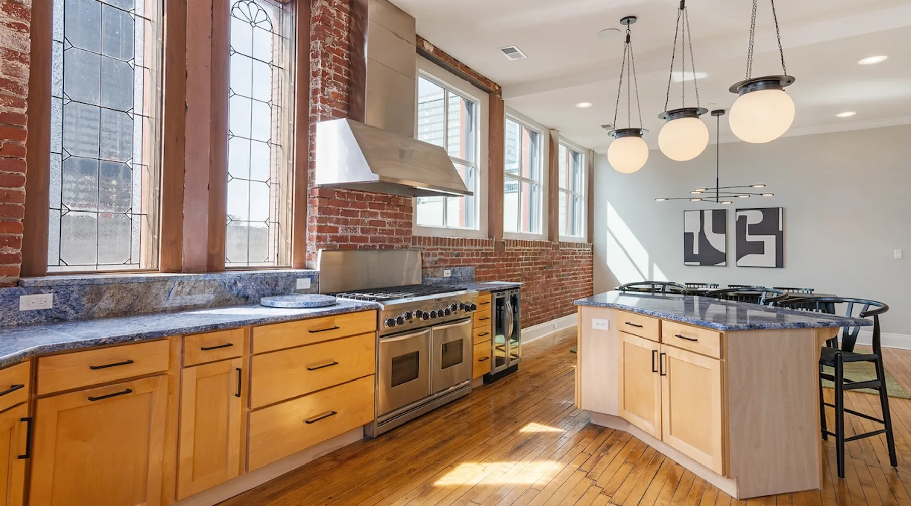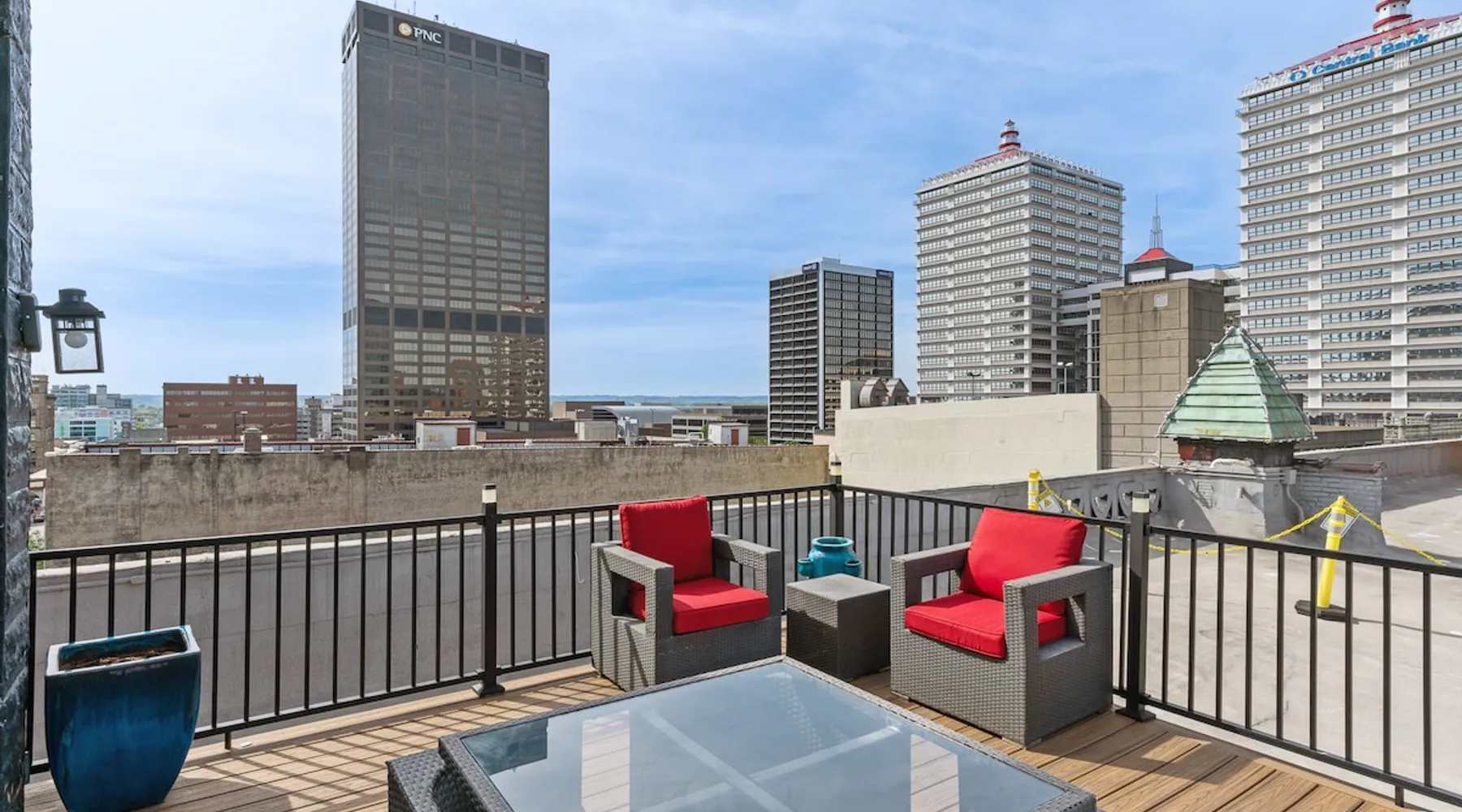 Stay at this stunning 5-bedroom, 4-bathroom penthouse atop the iconic Levy Building in downtown Louisville. Perfect for groups up to 12—featuring a rooftop turret turned private bourbon tasting room with skyline views from a private deck. Enjoy a fully equipped kitchen, spacious living areas, and elegant details throughout. Walk to top restaurants, bars, museums, the convention center, and the riverfront—then unwind with a nightcap under the stars. The space The unit has 5 full bedrooms and sleeps up to 12 guests (3 king beds, 1 queen, 2 twins, and 1 pull out couch with queen sized bed located in the primary suite), with 4 full bathrooms. The Levy Building is centrally located to many of Louisville's popular attractions and amenities: - Kentucky Int'l Convention Center: 100 feet - Yum! Center: 500 feet - Derby City Gaming: 500 feet - Whiskey Row: .2 miles - Actor's Theater: 500 feet - Churchill Downs: 4.1 miles - Kentucky Expo/Fairgrounds: 4 miles - Louisville Slugger Field: .9 miles - Louisville Int'l Airport: 5.8 miles - Lynn Family Stadium: 1.6 miles - Waterfront Park: 1 mile - Angels' Envy Distillery: .6 miles - Old Forrester Distillery: .3 miles - Michter's Fort Nelson Distillery: .4 miles - Kentucky Peerless Distillery: 1 mile Guest access Guests that have access to the entire unit plus common spaces within the Levy building. Common spaces include a well equipped gym. Two (2) parking passes are included with the stay. Other things to note - The maximum number of occupants for this short term rental may not exceed 12 guests. - Guests are prohibited from allowing more individuals than the maximum occupancy allows. - Guests are prohibited from having parties or other events. - Quiet time hours (10:00 PM - 8:00 AM) are strictly enforced. Registration Details LIC-STL-24-01088