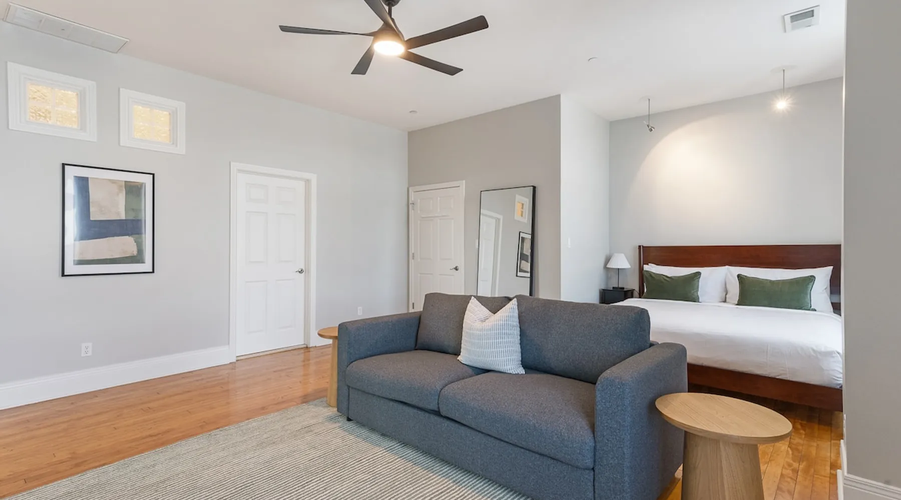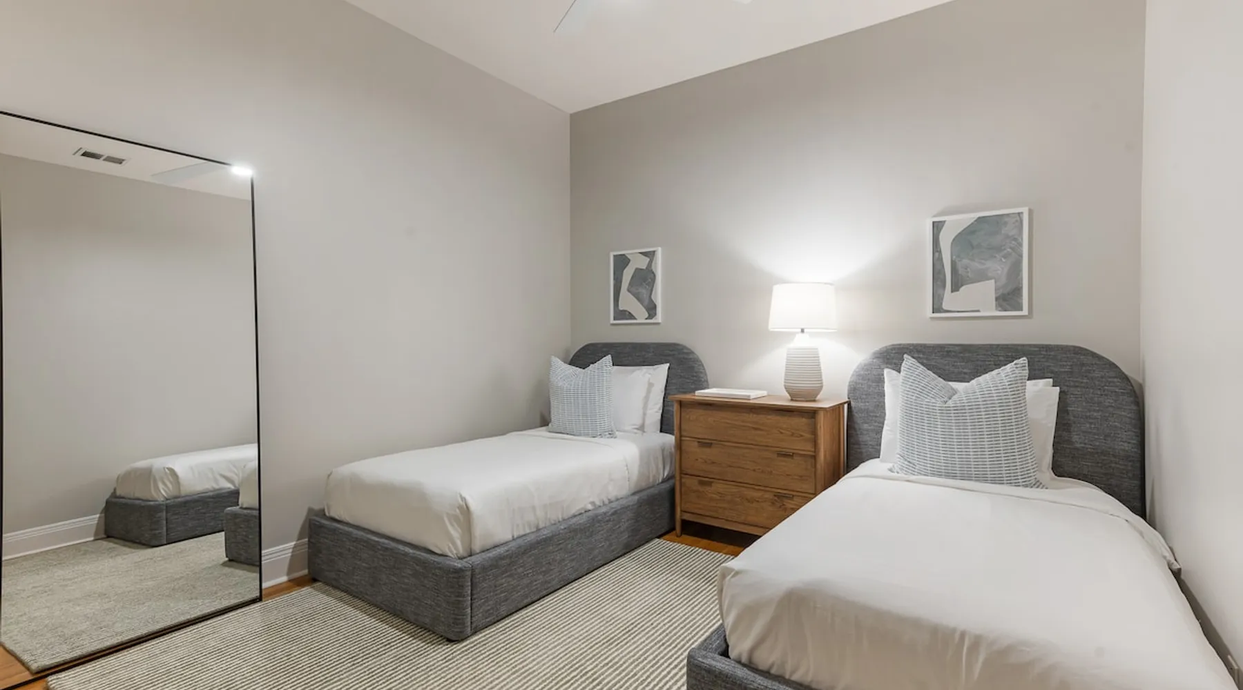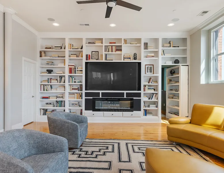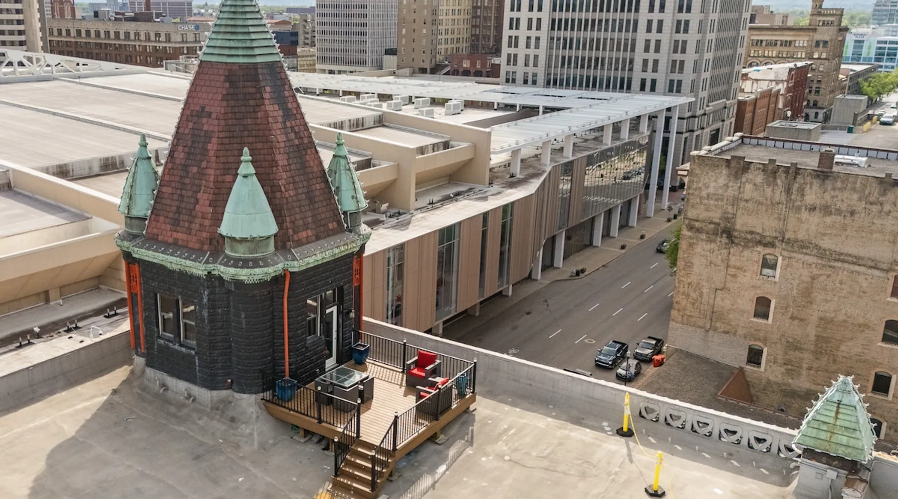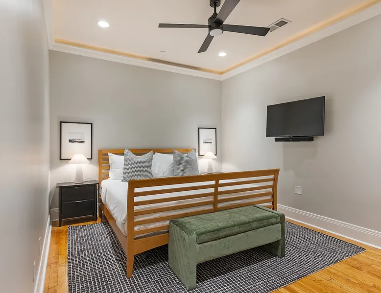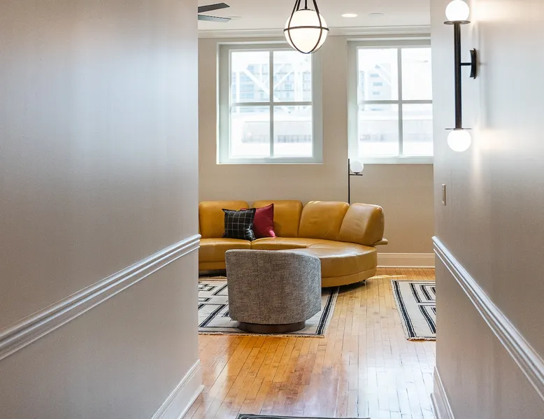 Stay at this stunning 5-bedroom, 4-bathroom penthouse atop the iconic Levy Building in downtown Louisville. Perfect for groups up to 12—featuring a rooftop turret turned private bourbon tasting room with skyline views from a private deck. Enjoy a fully equipped kitchen, spacious living areas, and elegant details throughout. Walk to top restaurants, bars, museums, the convention center, and the riverfront—then unwind with a nightcap under the stars. The space The unit has 5 full bedrooms and sleeps up to 12 guests (3 king beds, 1 queen, 2 twins, and 1 pull out couch with queen sized bed located in the primary suite), with 4 full bathrooms. The Levy Building is centrally located to many of Louisville's popular attractions and amenities: - Kentucky Int'l Convention Center: 100 feet - Yum! Center: 500 feet - Derby City Gaming: 500 feet - Whiskey Row: .2 miles - Actor's Theater: 500 feet - Churchill Downs: 4.1 miles - Kentucky Expo/Fairgrounds: 4 miles - Louisville Slugger Field: .9 miles - Louisville Int'l Airport: 5.8 miles - Lynn Family Stadium: 1.6 miles - Waterfront Park: 1 mile - Angels' Envy Distillery: .6 miles - Old Forrester Distillery: .3 miles - Michter's Fort Nelson Distillery: .4 miles - Kentucky Peerless Distillery: 1 mile Guest access Guests that have access to the entire unit plus common spaces within the Levy building. Common spaces include a well equipped gym. Two (2) parking passes are included with the stay. Other things to note - The maximum number of occupants for this short term rental may not exceed 12 guests. - Guests are prohibited from allowing more individuals than the maximum occupancy allows. - Guests are prohibited from having parties or other events. - Quiet time hours (10:00 PM - 8:00 AM) are strictly enforced. Registration Details LIC-STL-24-01088