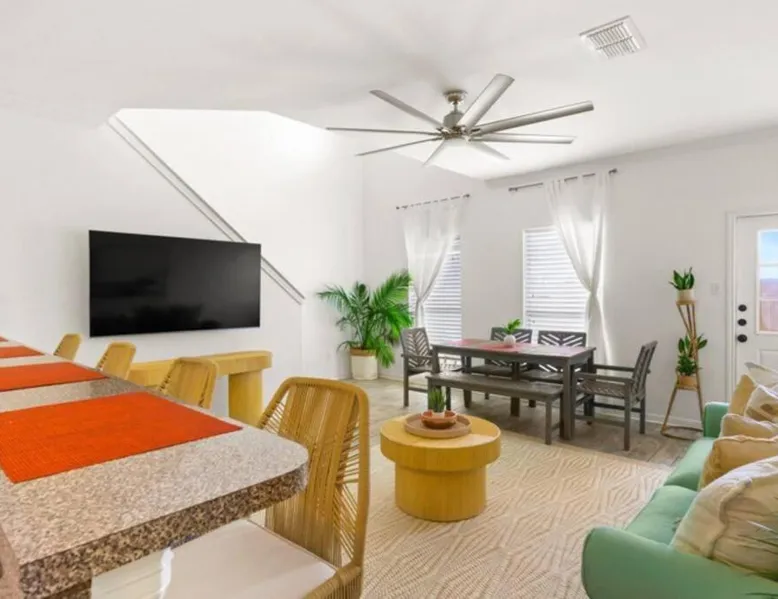 Spacious Accommodations: Padre Island Town home 5 min to the beach! pets ok in Corpus Christi offers a spacious apartment with three bedrooms and two bathrooms. The ground-floor unit features a living room, dining area, and balcony. Private Beach Area: Guests can enjoy a private beach area and free WiFi. The property includes a lounge, indoor play area, and outdoor seating area. Free on-site private parking is available. Convenient Amenities: The apartment provides air-conditioning, a fully equipped kitchen, washing machine, and dishwasher. Additional amenities include a balcony, patio, and barbecue. Local Attractions: Located 3.1 mi from Bob Hall Pier and 5.6 mi from Mustang Island State Park, the property is 20 mi from Corpus Christi International Airport. Nearby attractions include Port Aransas Marina and The University of Texas Marine Science Institute. Guest Satisfaction: Highly rated by guests for its spaciousness and excellent facilities. Boasting a private entrance, this air-conditioned holiday home comes with 1 living room, 3 separate bedrooms and 2 bathrooms with a bath and a shower. Guests will find a stovetop, a refrigerator, a dishwasher and kitchenware in the well-equipped kitchen. The holiday home also includes a barbecue. The spacious holiday home features a washing machine, a tea and coffee maker, a seating area, a dining area and a flat-screen TV with cable channels. The unit has 4 beds.