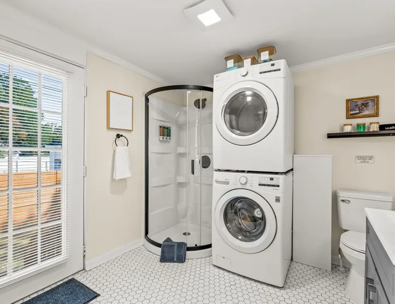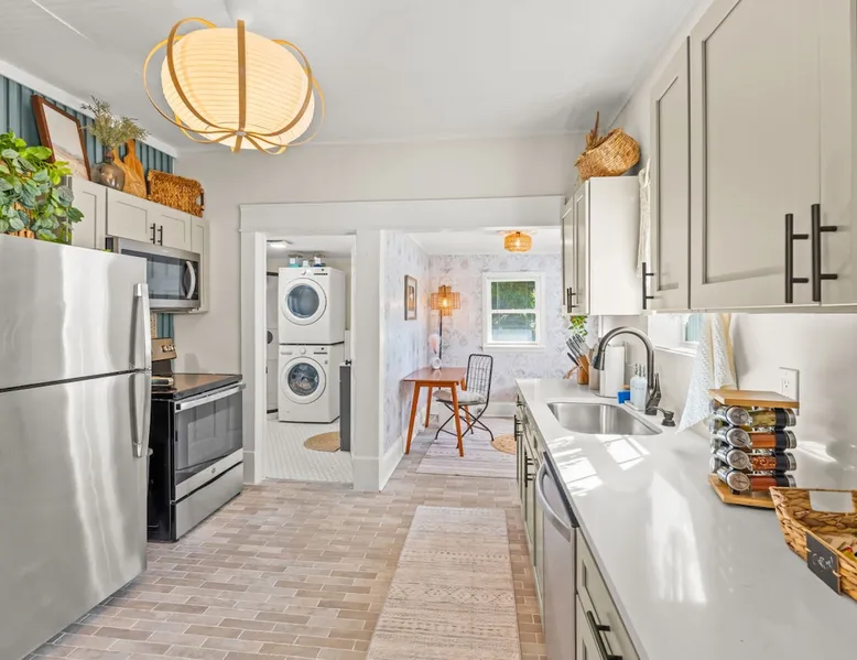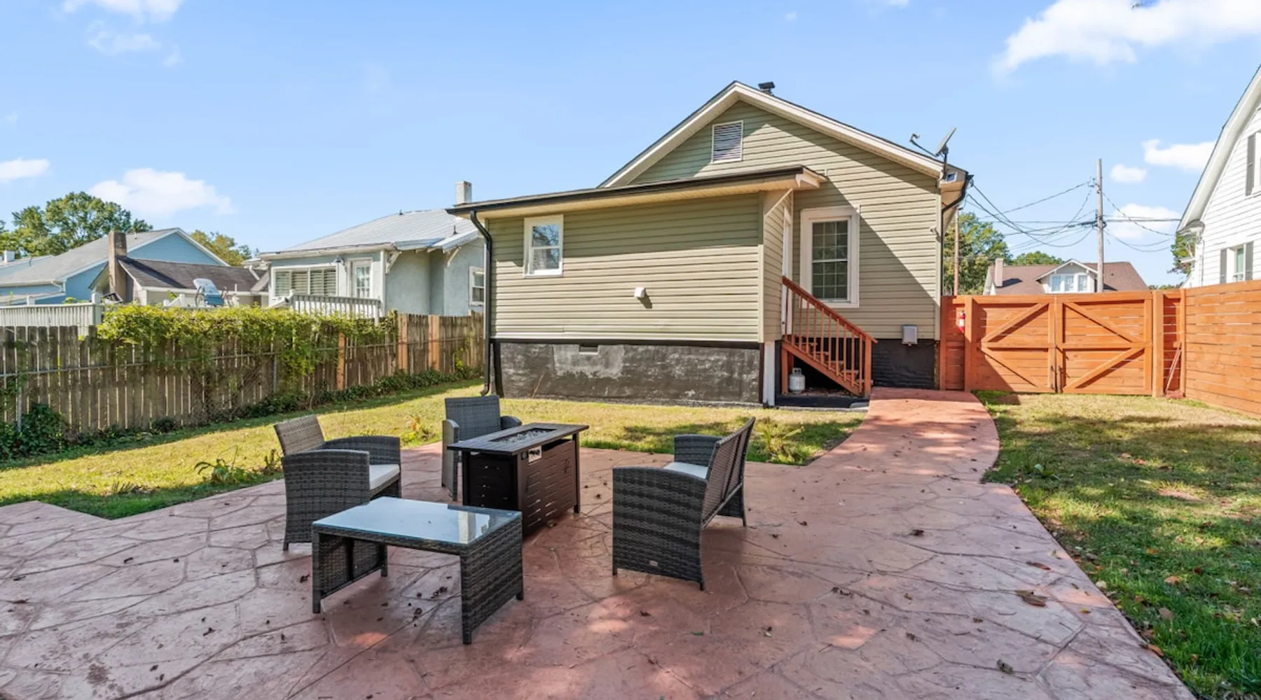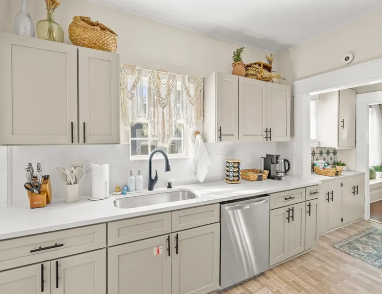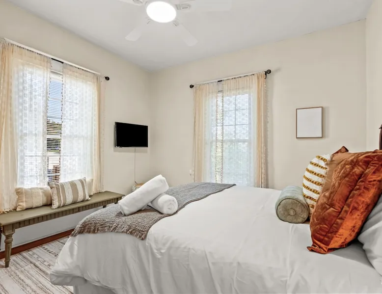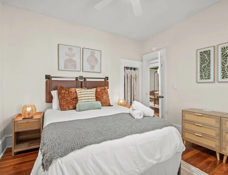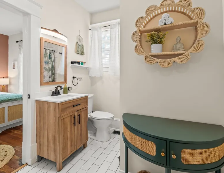 Step inside Hygge High Point, a beautifully updated 100-year-old historic home that blends old-world charm with modern comfort. Nestled in the heart of downtown, this retreat features preserved hardwood floors, curated boho décor, & thoughtful details throughout. Sleeps 5 with 2 full bathrooms, a modern kitchen, fenced yard with propane firepit, smart thermostat, fast Wi-Fi. Walkable to High Point University, cafés, boutiques, & local restaurants, or explore nearby parks & furniture showrooms. The space As you enter, you’ll be greeted by a bright and welcoming living area featuring: ☆ A 50” Smart TV for streaming your favorite shows ☆ A plush brown leather sofa and two cozy accent chairs ☆ A charming (decorative) fireplace framed by built-in bookshelves stocked with books and board games Across from the living room is a flexible drop zone, perfect for unpacking or organizing your things after check-in. Continue into the dining room, where a long wooden table seats six — ideal for family dinners, game nights, or casual morning coffee chats. The newly remodeled kitchen is equipped with everything you need to cook and gather, including: ☆ Stainless steel appliances (full-size fridge/freezer, oven, stove, dishwasher) ☆ Coffee maker, tea kettle, toaster, and blender ☆ Pots, pans, knives, chopping boards, dishes, cups, and kids’ utensils A cozy office nook just off the kitchen features a desk and chair — perfect for remote work, journaling, or planning your next adventure. Bedrooms & Bathrooms ☆ 2 Bedrooms — both featuring queen beds, soft linens, and stylish décor. ☆ A fold-out twin mattress (with sheets, blanket, and pillow) is stored in the master bedroom closet for extra sleeping flexibility. 2 Bathrooms: ☆ The main bath connects to the master suite via a Jack-and-Jill door, also accessible from the hallway. ☆ The second bath doubles as a laundry room (with washer/dryer) and offers direct backyard access — perfect for post-adventure cleanups. Outdoor Living ☆ Step through the back door into your fully fenced backyard — a private spot to unwind after a day exploring the city. Enjoy evenings gathered around the propane fire pit surrounded by comfy chairs, the perfect setup for s’mores and stories under the stars. Comfort & Convenience ☆ Smart thermostat with central heating & air conditioning for year-round comfort ☆ Keyless entry for easy self check-in ☆ Fast Wi-Fi throughout the home ☆ Washer & dryer with complimentary detergent Please note: Due to its central downtown location, occasional city sounds (traffic or sirens) and neighborhood dogs may be heard. The home’s new windows and modern insulation minimize noise inside. Location: Heart of High Point ☆ Hygge High Point is perfectly positioned to experience the best of the city — from design culture and charming cafés to beautiful parks and historic landmarks. Nearby Highlights ☆ 1.5 miles to High Point University (HPU): Ideal for campus visits, tours, or catching a game at the Qubein Center. ☆ 2 miles to High Point Museum & Historical Park: Step back in time with restored homes and fascinating local exhibits. ☆ 5.5 miles to High Point City Lake Park: Enjoy 340 acres of walking trails, lake views, playgrounds, and picnic areas. ☆ Less than 1 mile to Nido & Mariana Qubein Children’s Museum: A family favorite with interactive exhibits and creative play zones. ☆ World’s Largest Chest of Drawers: A must-see photo stop celebrating High Point’s rich furniture heritage. ☆ Downtown Dining & Shopping: Explore boutiques, antique stores, and some of the area’s best Southern cuisine—all within easy reach. ☆ Furniture Capital of the World: Visit local showrooms or plan your stay around the world-famous High Point Market. Easy Day Trips ☆ Piedmont Triad (15 min): Endless day-trip options for hiking, vineyards, and scenic drives through North Carolina’s heartland. ☆ Greensboro (25 min): Visit the Science Center, local breweries, or cultural arts district. ☆ Winston-Salem (35 min): Explore historic Old Salem and its charming downtown. Guest access ☆ Guest Access: As a guest at Hygge High Point, you’ll have private access to the entire home and all amenities, ensuring a comfortable and seamless experience. ☆ Contactless Check-In & Access Code: For your convenience and peace of mind, we offer a fully contactless check-in process. A unique front door access code will be sent to you two days before arrival, so you can check in securely at any time—day or night. ☆ Digital Guest Book: To help you make the most of your stay, we’ll share a digital guest book packed with useful info about the property, how-tos for appliances and features, and curated local recommendations for dining, shopping, and activities. Other things to note ☆ Pet-Friendly Accommodations: We welcome one dog only (up to 60 lbs) for a fee of $150 per stay. This fee helps cover the additional cleaning required for pet hair. If any waste beyond hair (such as urine or feces) is found, an additional $200 cleaning fee will be charged. Guests are responsible for cleaning up after their pet, and dogs should not be left unattended in the home, as barking may disturb neighbors. Please let us know if you are traveling with a dog
