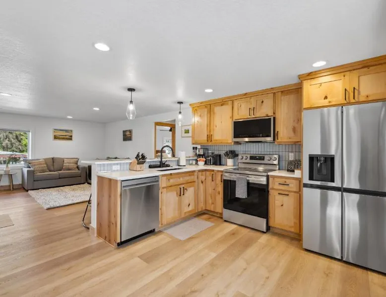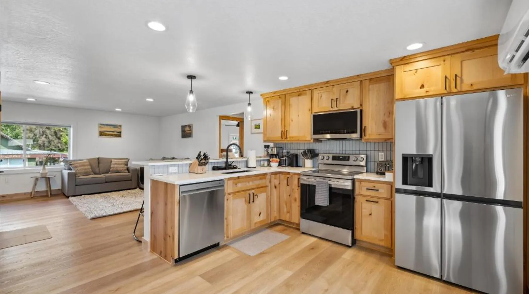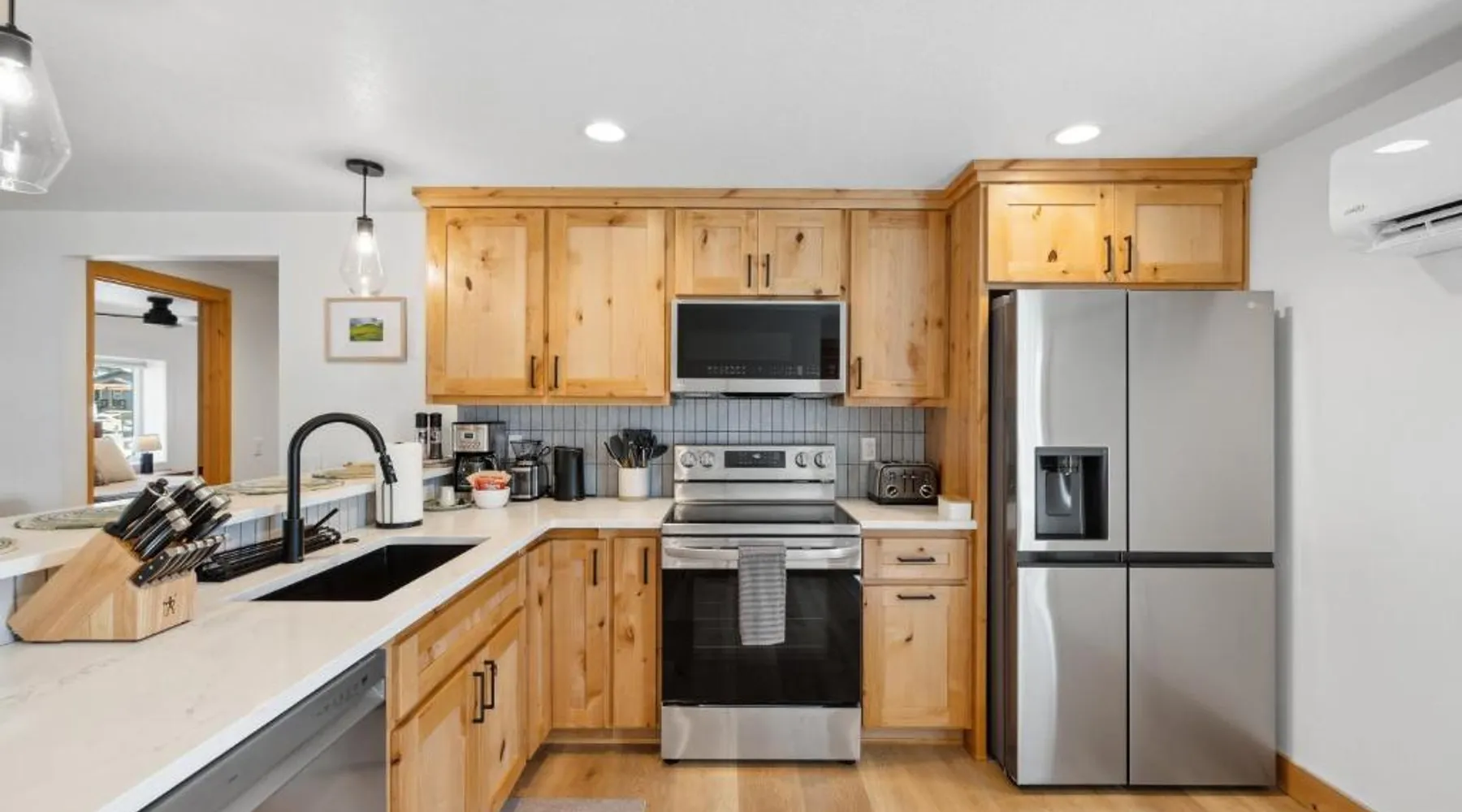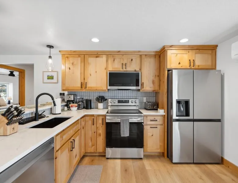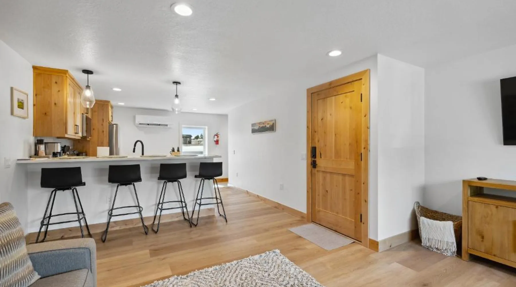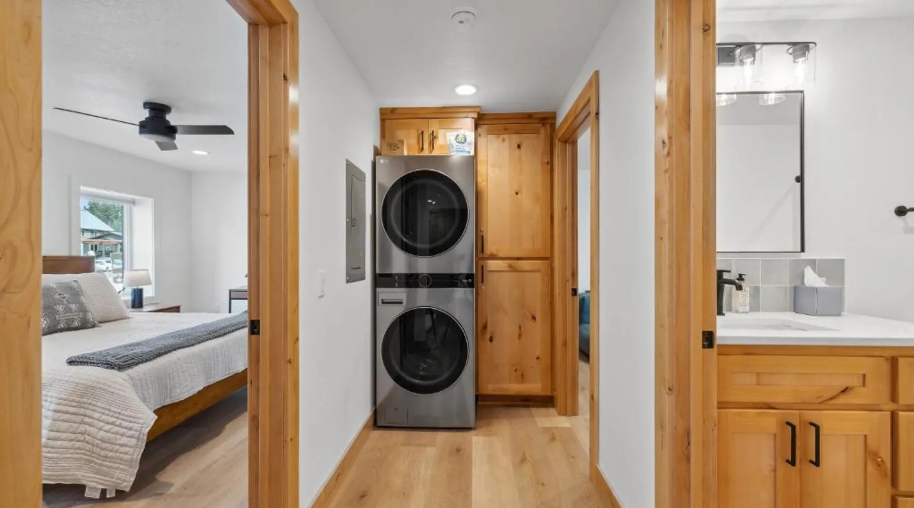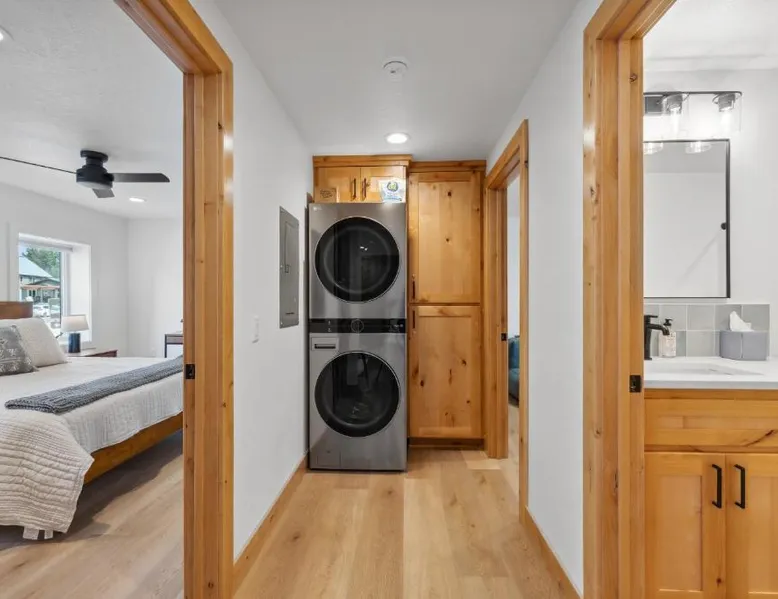 Comfortable Accommodations: New! Brand new Downtown Loft 203 in McCall offers three bedrooms and a living room. Guests enjoy lake and mountain views, a fully equipped kitchen, and a dining area. Wellness and Leisure: The property features a spa and wellness center, perfect for relaxation. Additional amenities include air-conditioning, a washing machine, and a children's playground. Convenient Location: Located half a block from the lake, the holiday home is close to restaurants and shopping. Skiing and an ice-skating rink are available in the surroundings. In the well-equipped kitchen, guests will find a stovetop, a refrigerator, a dishwasher and kitchenware. The air-conditioned holiday home offers a TV, a washing machine, a tea and coffee maker, a dining area as well as lake views. The unit has 5 beds.