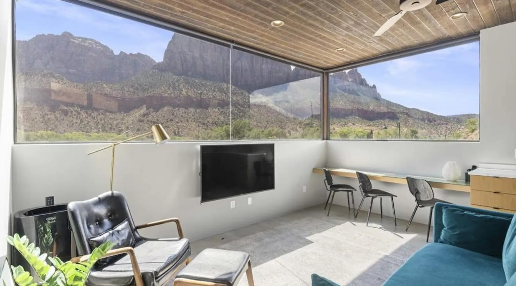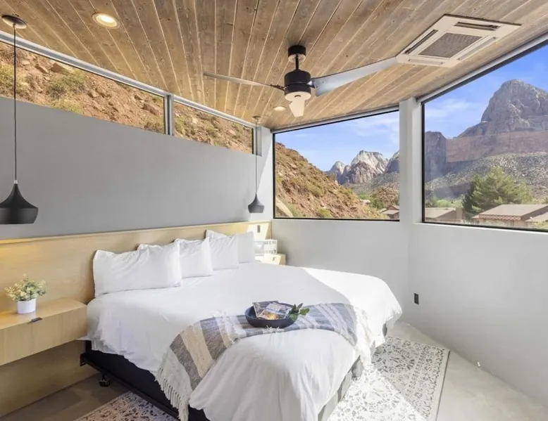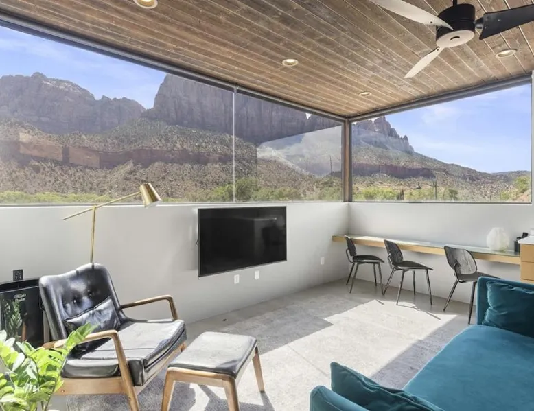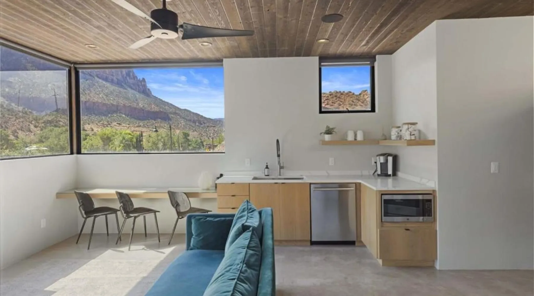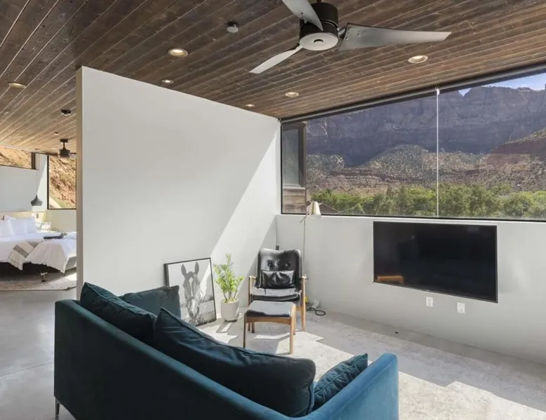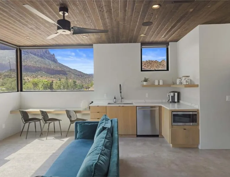 Comfortable Living: The Loft at Zion in Springdale offers a spacious apartment with free WiFi and air-conditioning. Guests can enjoy a fully equipped kitchen with a tea and coffee maker, washing machine, and TV. Convenient Amenities: The apartment includes a private entrance, hairdryer, and kitchenware. Free on-site parking is available, ensuring easy access for all visitors. Prime Location: Located 46 mi from St. George Regional Airport, The Loft at Zion provides easy access to local attractions. Springdale offers a variety of activities and scenic views, making it a perfect destination for a relaxing stay. The studio's kitchen, which has kitchenware, is available for cooking and storing food. The studio features air conditioning, a washing machine, a private entrance, a tea and coffee maker and a TV. The unit has 1 bed.