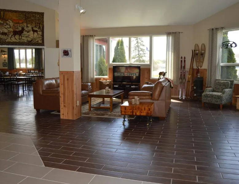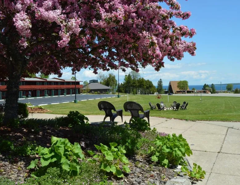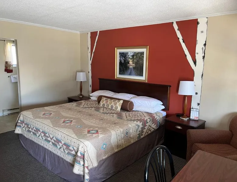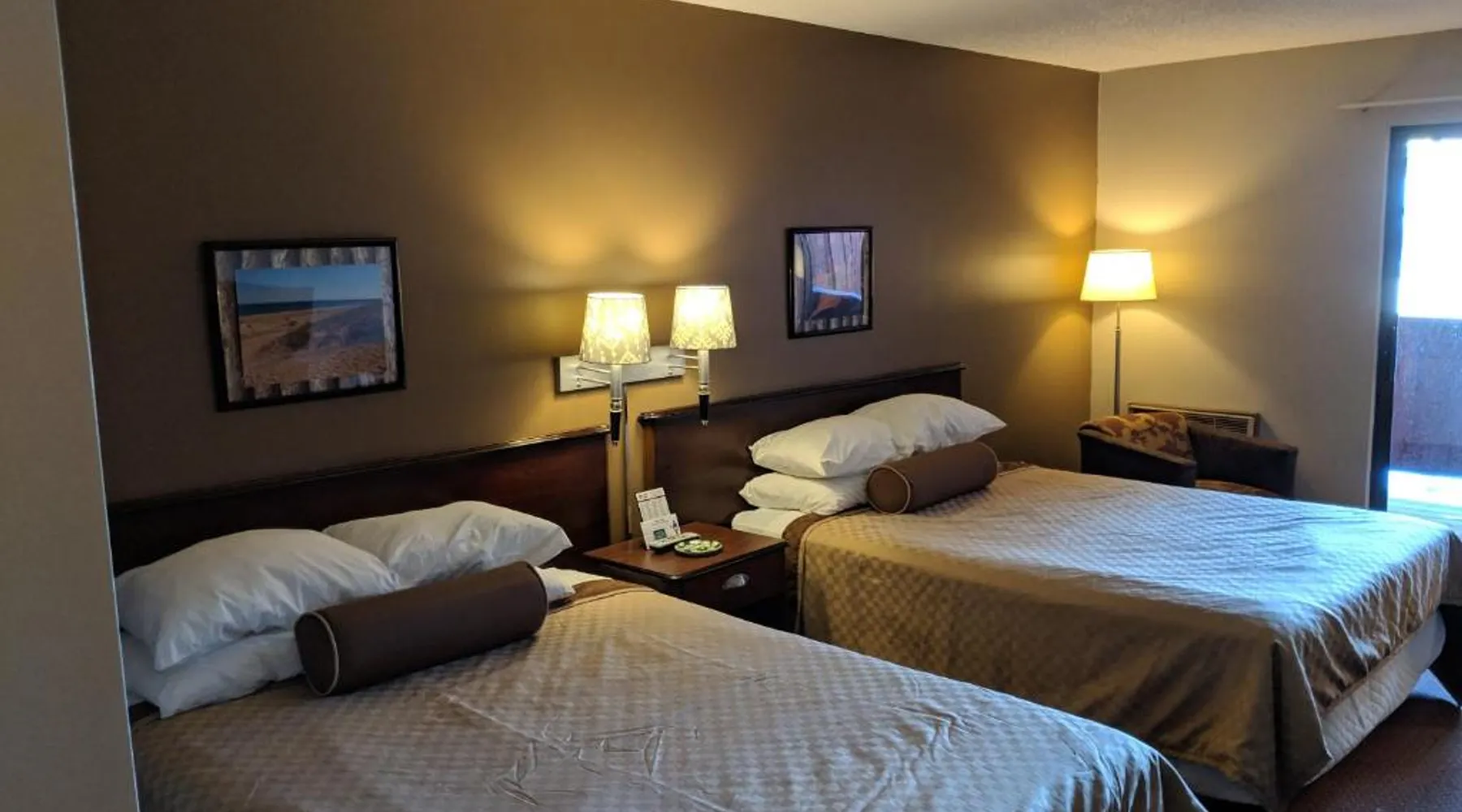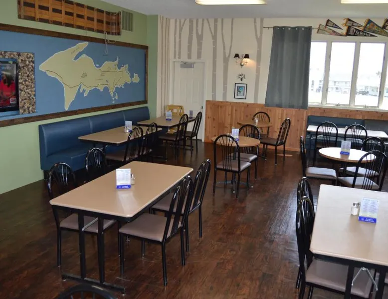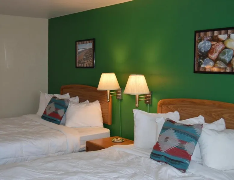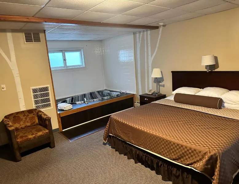 Comfortable Accommodations: Cedar Hill Lodge in Saint Ignace offers family rooms with private bathrooms, air-conditioning, and free WiFi. Each room includes a work desk, TV, and carpeted floors. Leisure Facilities: Guests can enjoy an indoor swimming pool, hot tub, and outdoor fireplace. Additional amenities include a barbecue area, meeting rooms, and free on-site parking. Breakfast and Services: A continental buffet breakfast is served with fresh pastries and fruits. The property provides a 24-hour front desk, housekeeping, and paid airport shuttle service. Nearby Attractions: The Mackinac Bridge is less than 0.6 mi away, while Kiwanis Beach is 1.4 mi from the lodge. Pellston Regional Airport is 22 mi distant. The quadruple room features air conditioning, a private entrance, as well as a private bathroom boasting a bath and a shower. The unit has 2 beds.