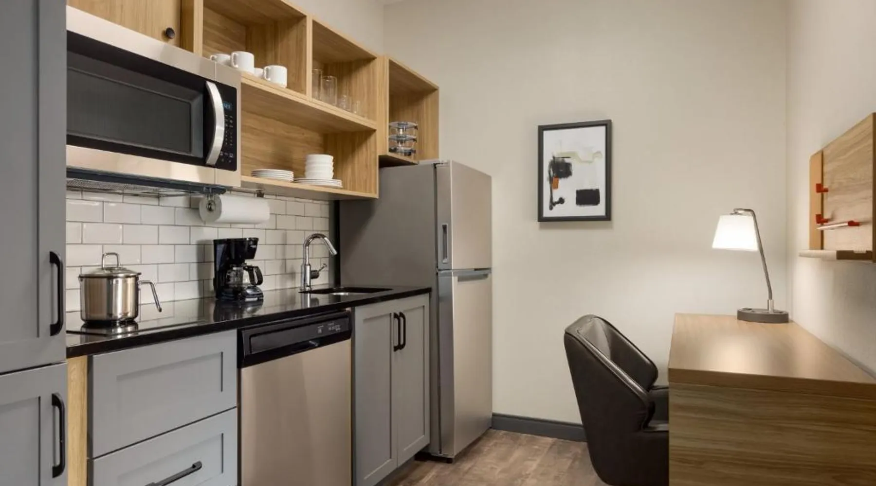 Comfortable Accommodations: Candlewood Suites Lawrenceville - Princeton by IHG in Lawrenceville offers comfortable rooms with private bathrooms, tea and coffee makers, hairdryers, refrigerators, work desks, carpeted floors, and TVs. Essential Facilities: Guests enjoy free WiFi, a 24-hour front desk, and a picnic area. Free on-site private parking is available. Convenient Location: Located 8.1 mi from Trenton-Mercer Airport, the hotel is near Princeton University (6.8 mi), Princeton Battlefield State Park (5 mi), and other attractions. The suite provides a tea and coffee maker and a carpeted floor, as well as a private bathroom featuring a hairdryer.