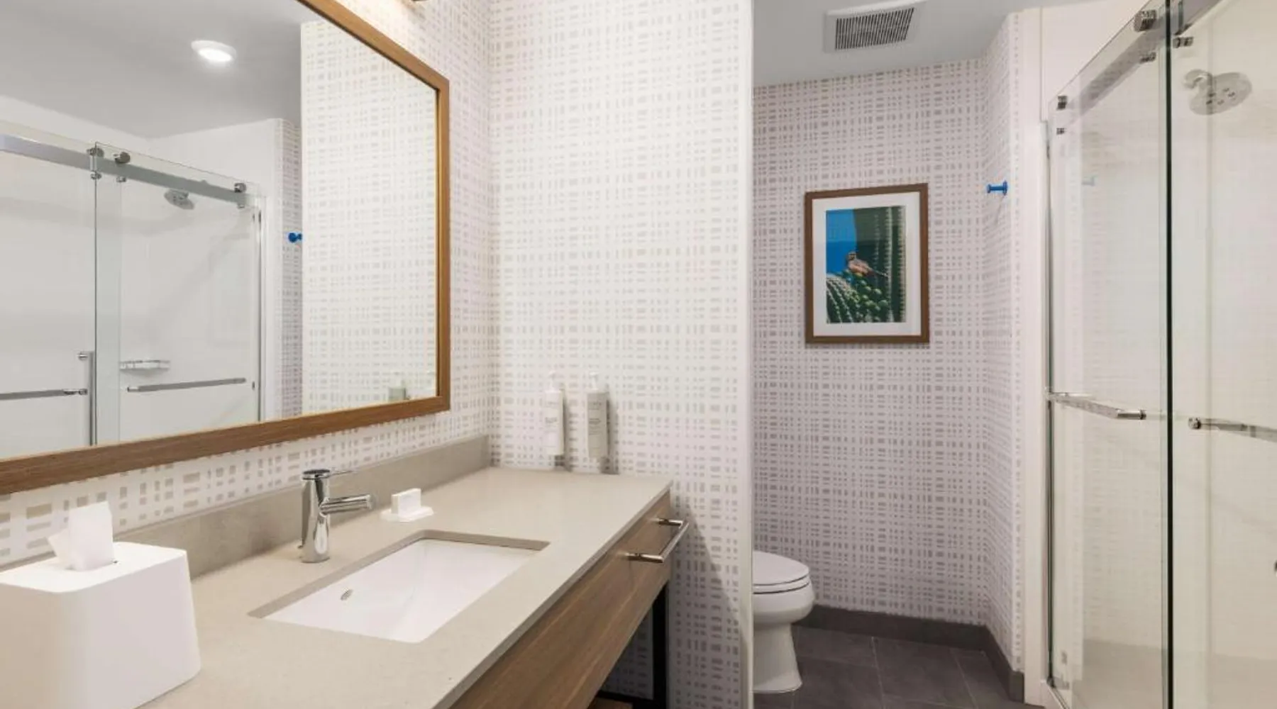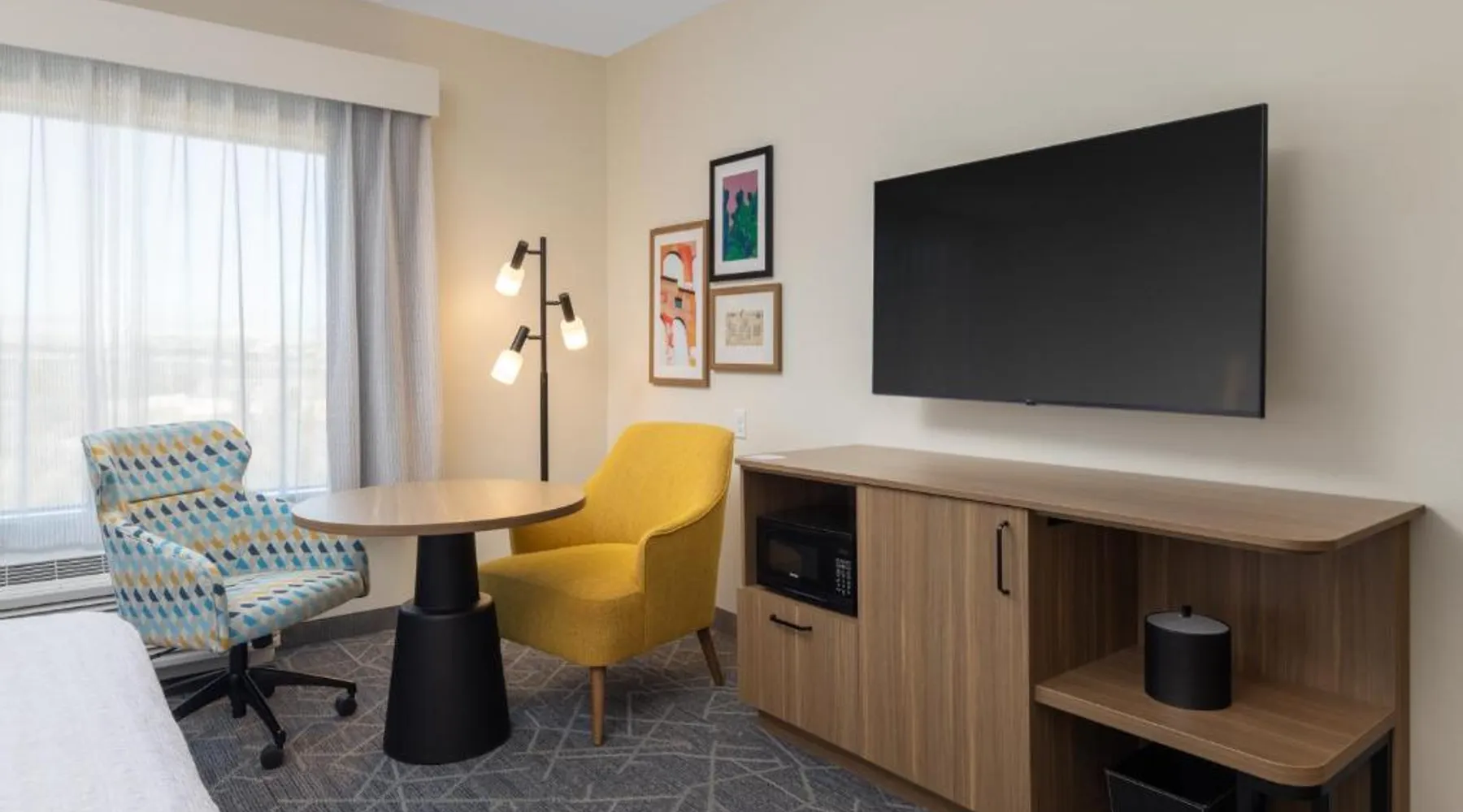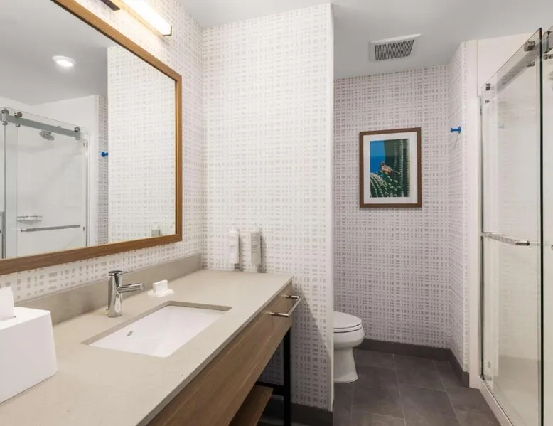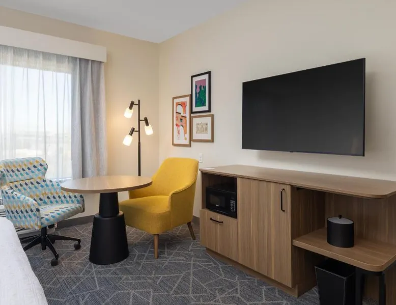 Comfortable Accommodations: Hampton Inn & Suites Cottonwood, Az in Cottonwood offers air-conditioned rooms with private bathrooms, tea and coffee makers, and free WiFi. Each room includes a work desk, dining area, and soundproofing for a pleasant stay. Exceptional Facilities: Guests can enjoy a year-round outdoor swimming pool, fitness room, and outdoor seating area. Additional amenities include a lounge, minimarket, and bicycle parking. Private check-in and check-out, a 24-hour front desk, and daily housekeeping ensure convenience. Convenient Location: Located 37 mi from Ernest A Love Field Airport, the hotel is near attractions such as Cliff Castle Casino (18 mi), Montezuma Castle National Monument (20 mi), and Chapel of the Holy Cross (25 mi). The double room features a dining area, a wardrobe, as well as a private bathroom featuring a shower. The spacious double room offers air conditioning, soundproof walls, a tea and coffee maker, a seating area and a flat-screen TV with cable channels. The unit offers 1 bed.