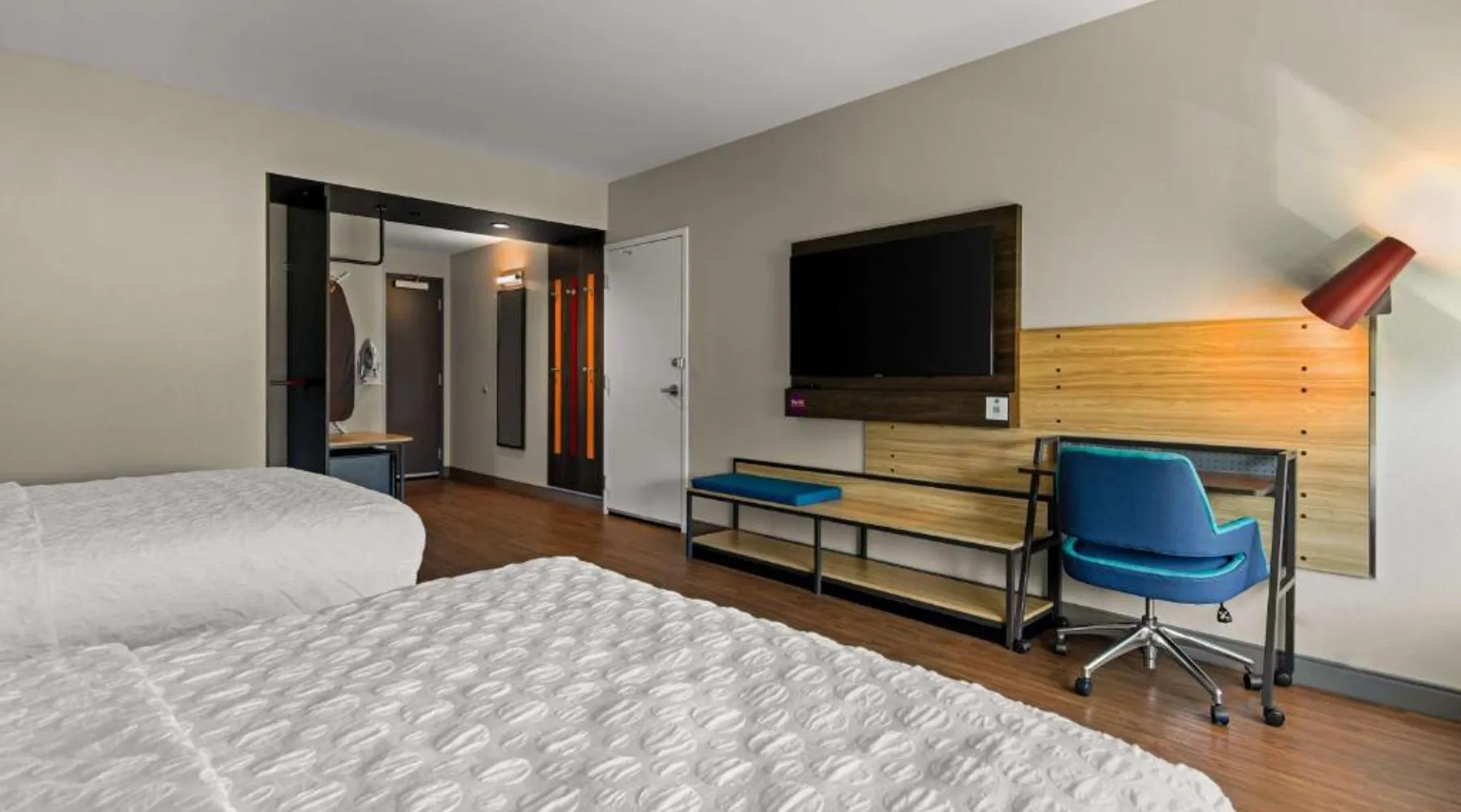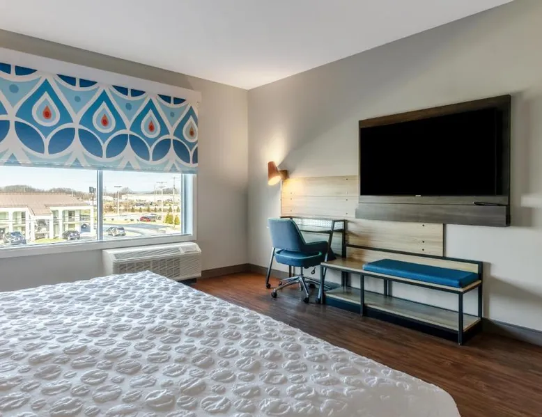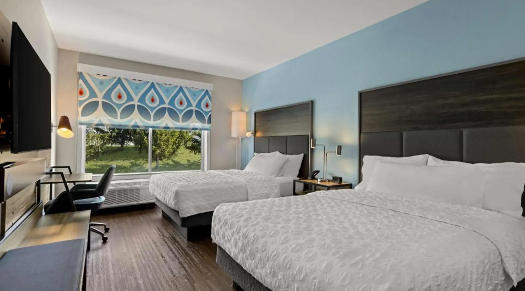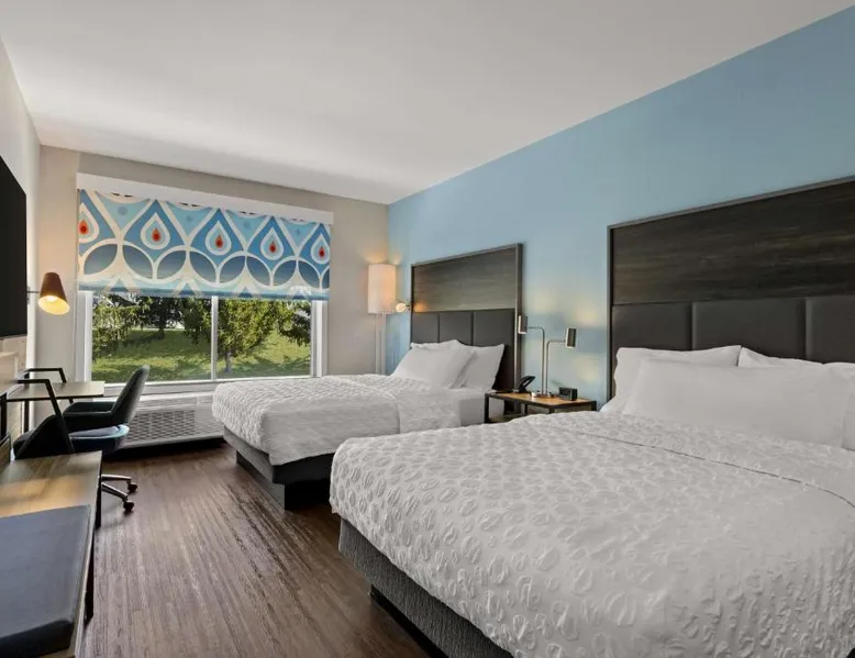 Comfortable Accommodations: Tru By Hilton Christiansburg in Christiansburg offers rooms with air-conditioning, free WiFi, and modern amenities including a work desk, refrigerator, and TV. Guests appreciate the room cleanliness and comfort. Convenient Facilities: The hotel features a fitness room, elevator, 24-hour front desk, minimarket, daily housekeeping, indoor play area, child-friendly buffet, games room, and car hire. Free on-site private parking is available. Dining Options: A continental and American buffet breakfast is served with warm dishes, juice, fresh pastries, pancakes, and fruits. Nearby Attractions: Located 27 mi from Roanoke Airport, the hotel is close to Lane Stadium (9.9 mi), English Field (9.9 mi), and Virginia Tech (11 mi). This quadruple room provides air conditioning and a flat-screen TV. The unit offers 2 beds.