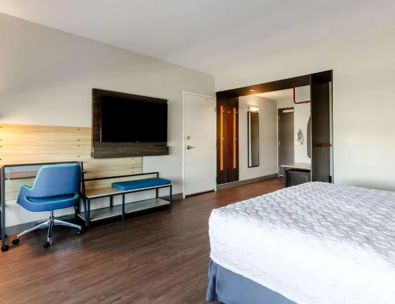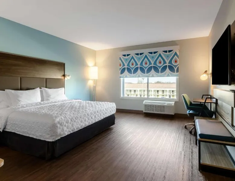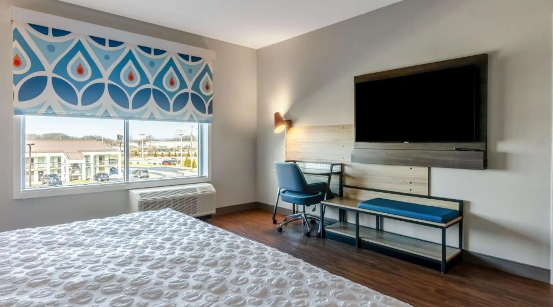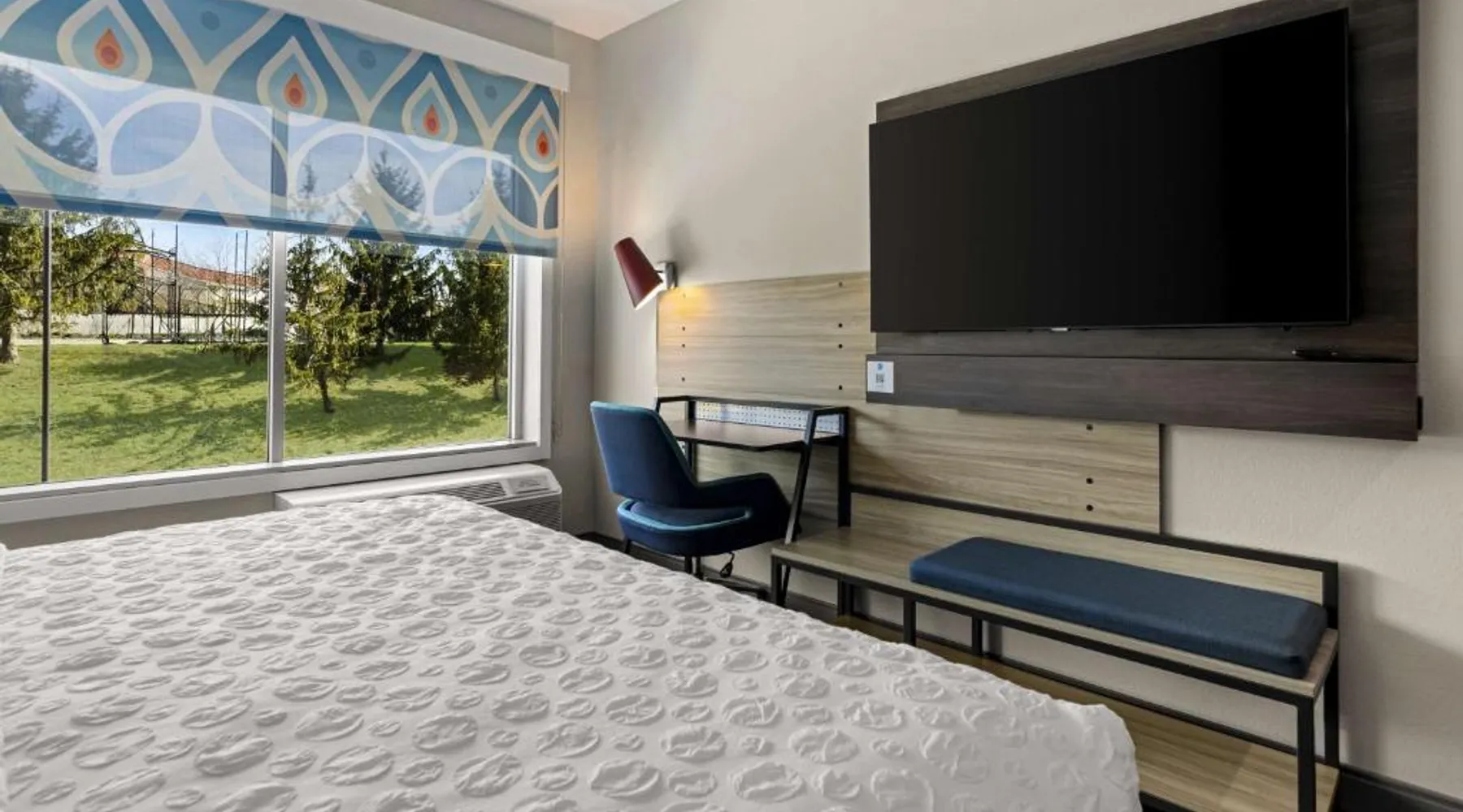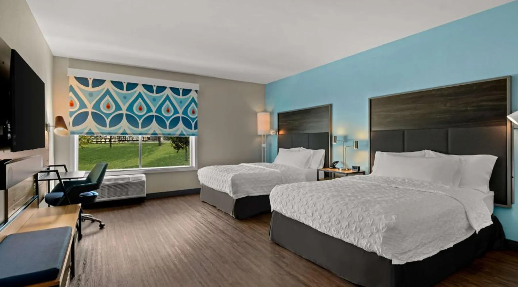 Comfortable Accommodations: Tru By Hilton Christiansburg in Christiansburg offers rooms with air-conditioning, free WiFi, and modern amenities including a work desk, refrigerator, and TV. Guests appreciate the room cleanliness and comfort. Convenient Facilities: The hotel features a fitness room, elevator, 24-hour front desk, minimarket, daily housekeeping, indoor play area, child-friendly buffet, games room, and car hire. Free on-site private parking is available. Dining Options: A continental and American buffet breakfast is served with warm dishes, juice, fresh pastries, pancakes, and fruits. Nearby Attractions: Located 27 mi from Roanoke Airport, the hotel is close to Lane Stadium (9.9 mi), English Field (9.9 mi), and Virginia Tech (11 mi). This quadruple room provides air conditioning and a flat-screen TV. The unit offers 2 beds.