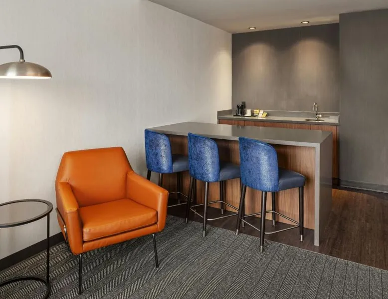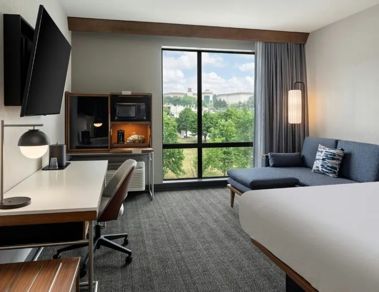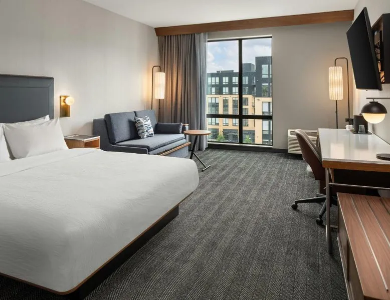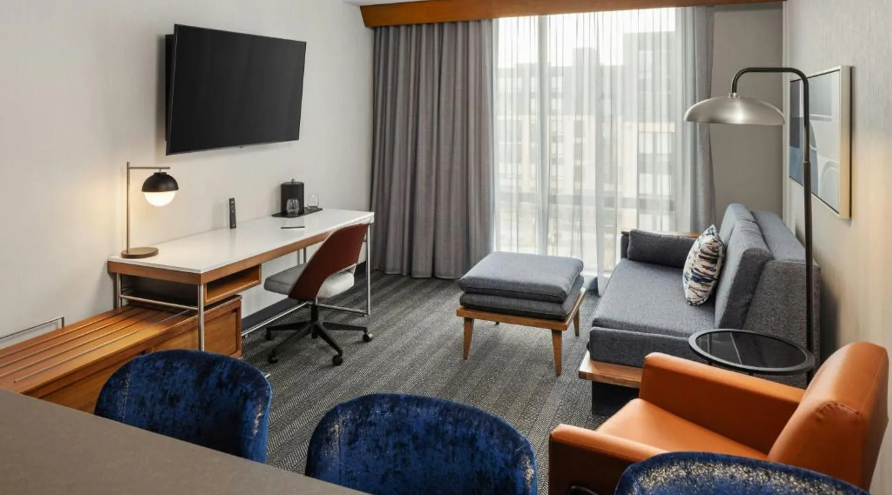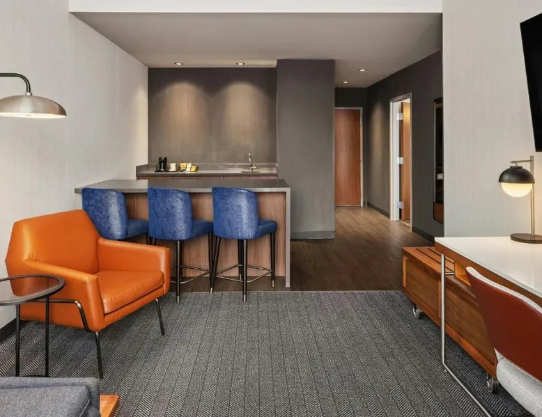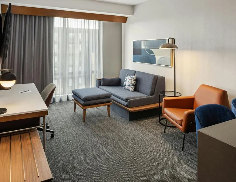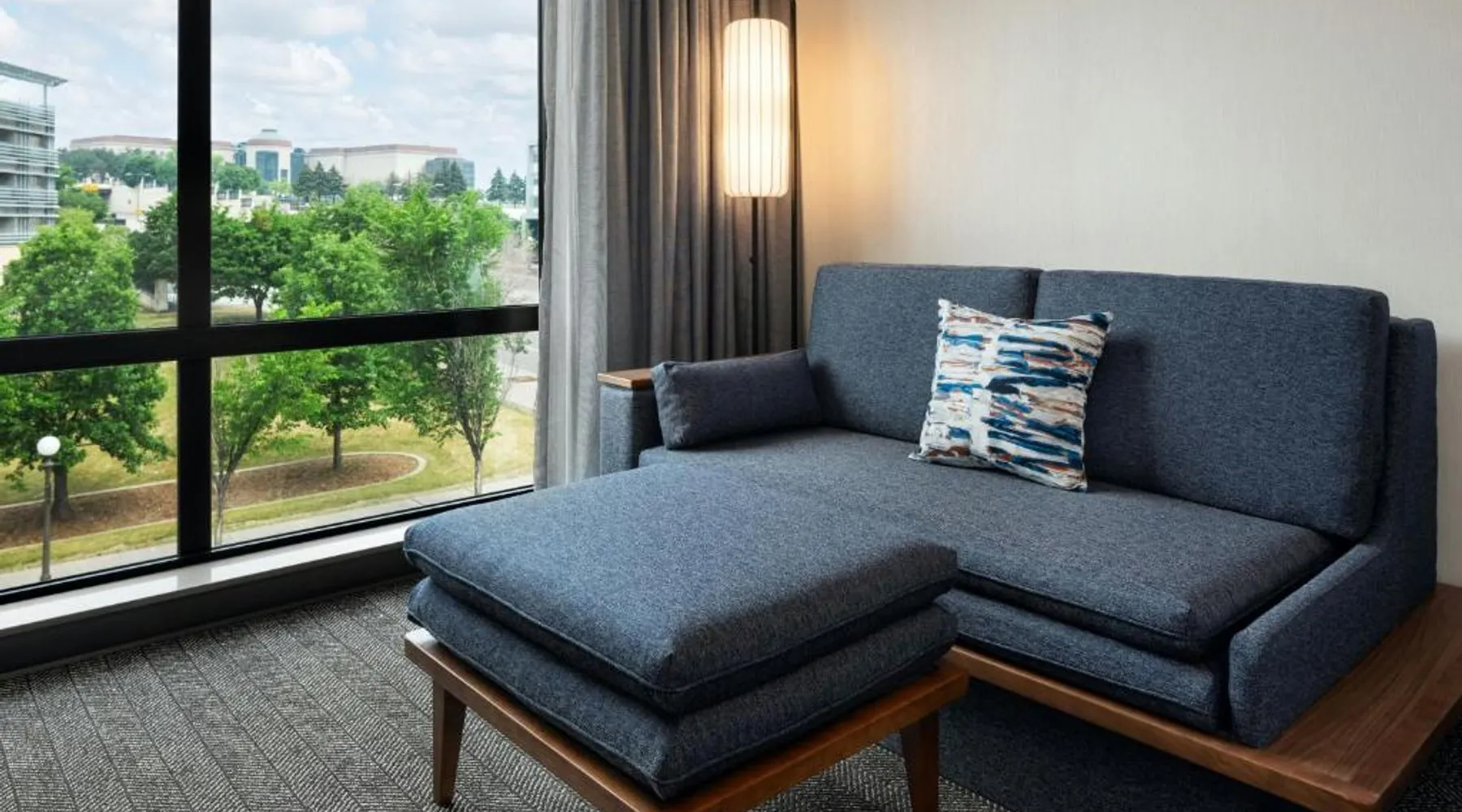Comfortable Accommodations: Courtyard by Marriott St Paul Downtown in St Paul offers family rooms with air-conditioning, private bathrooms, and modern amenities. Each room includes a work desk, free toiletries, and a flat-screen TV. Exceptional Facilities: Guests enjoy a fitness center, indoor swimming pool, and free WiFi. Additional facilities include a lounge, games room, and business area. The hotel provides a 24-hour front desk, housekeeping, and laundry services. Dining Options: The family-friendly restaurant serves American breakfast and offers traditional and modern ambiance. A bar provides a relaxing space for evening drinks. Prime Location: Located 6.8 mi from Minneapolis-Saint Paul International Airport, the hotel is a 3-minute walk from Xcel Energy Center. Nearby attractions include the University of Minnesota and an ice-skating rink. Highly rated for its convenient location and excellent service. This air-conditioned suite includes a flat-screen TV with streaming services and a private bathroom.