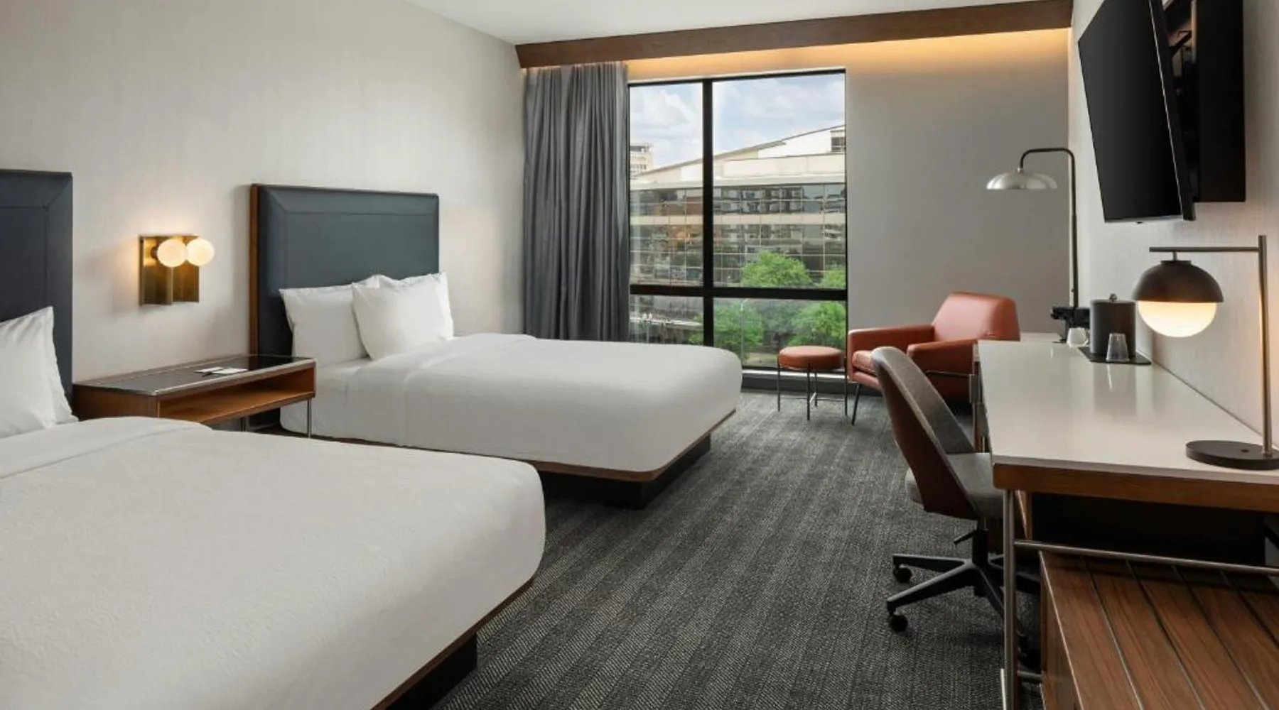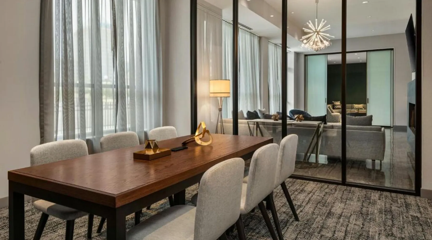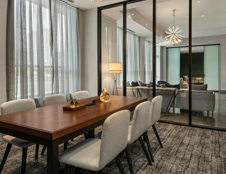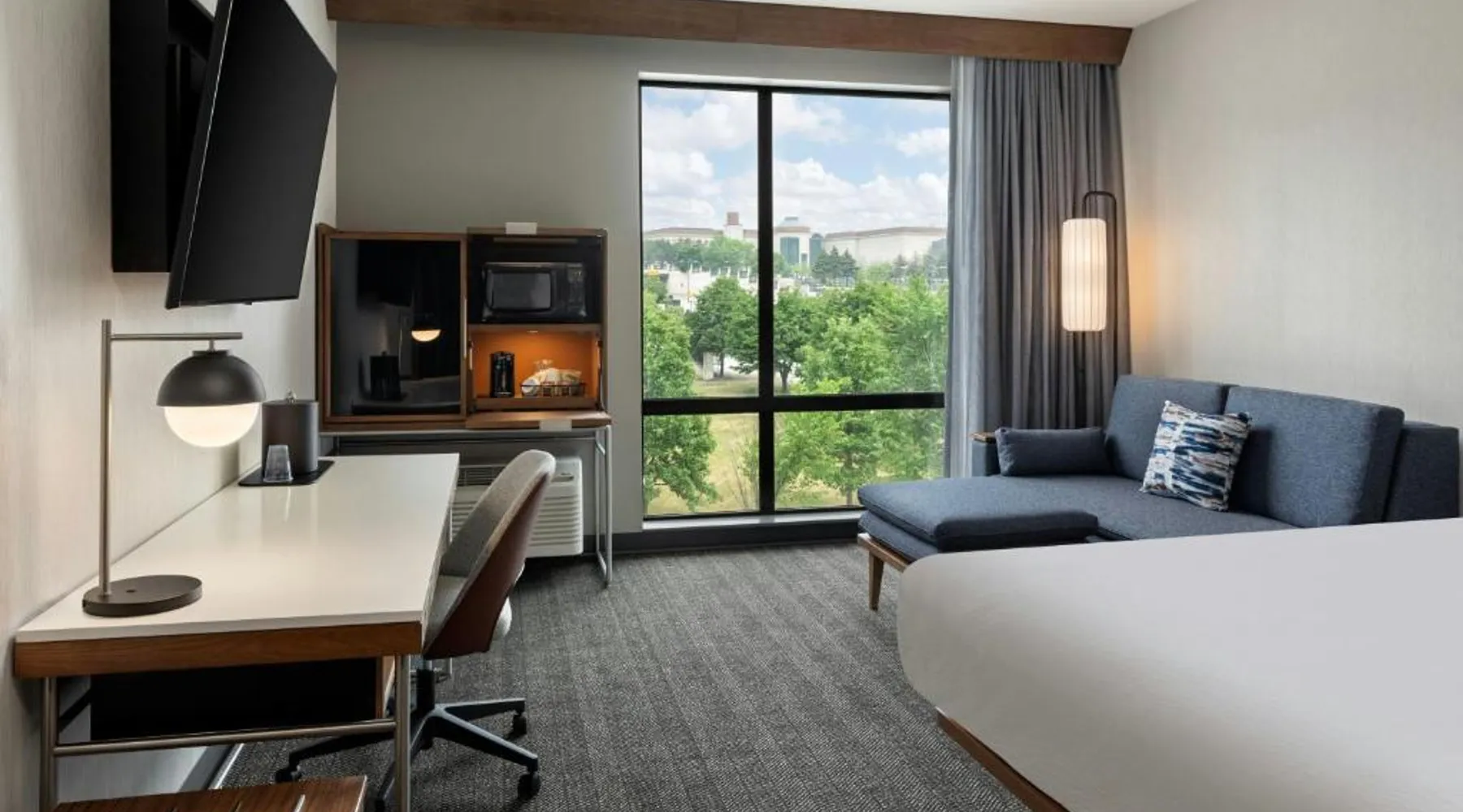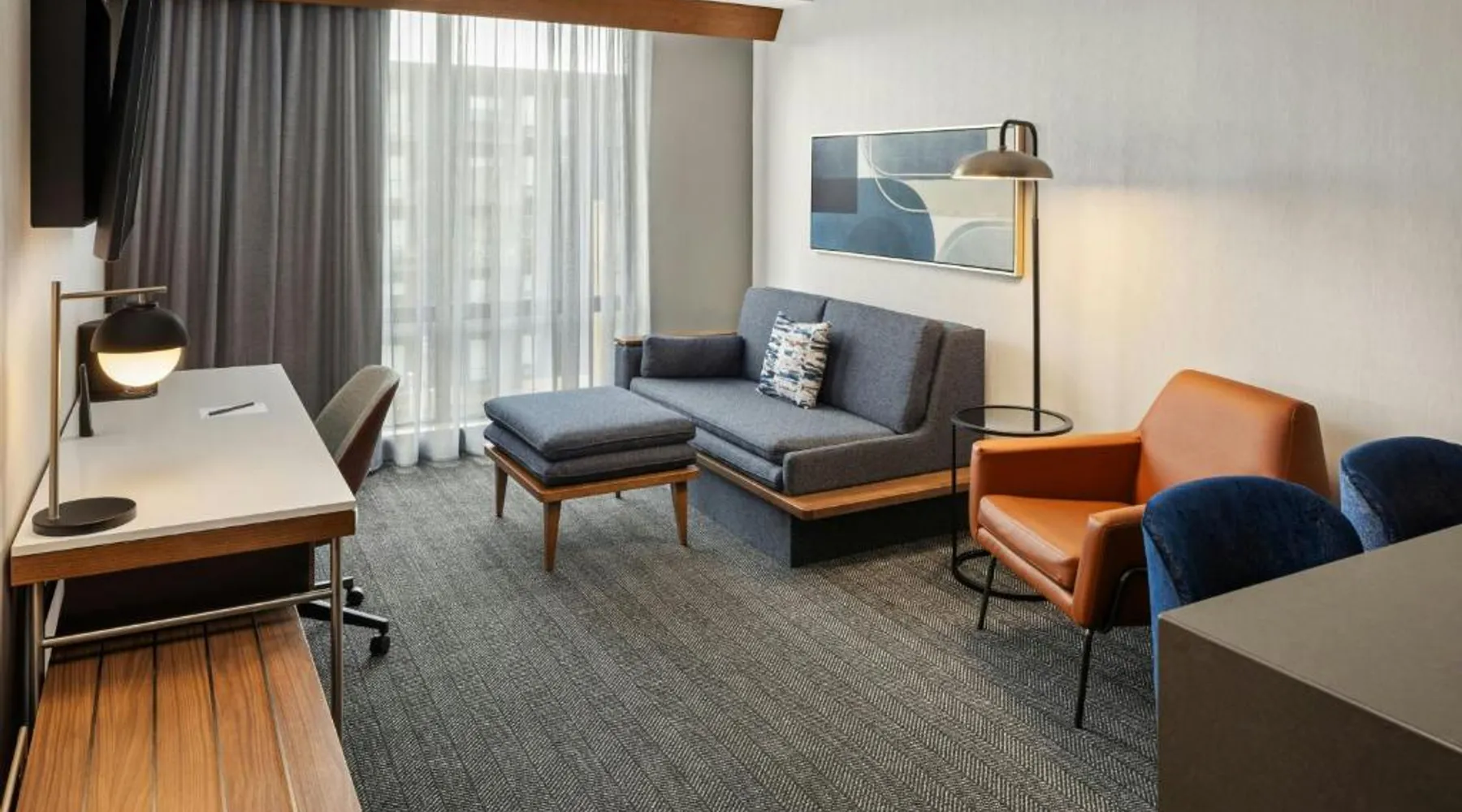 Comfortable Accommodations: Courtyard by Marriott St Paul Downtown in St Paul offers family rooms with air-conditioning, private bathrooms, and modern amenities. Each room includes a work desk, free toiletries, and a flat-screen TV. Exceptional Facilities: Guests enjoy a fitness center, indoor swimming pool, and free WiFi. Additional facilities include a lounge, games room, and business area. The hotel provides a 24-hour front desk, housekeeping, and laundry services. Dining Options: The family-friendly restaurant serves American breakfast and offers traditional and modern ambiance. A bar provides a relaxing space for evening drinks. Prime Location: Located 6.8 mi from Minneapolis-Saint Paul International Airport, the hotel is a 3-minute walk from Xcel Energy Center. Nearby attractions include the University of Minnesota and an ice-skating rink. Highly rated for its convenient location and excellent service. This air-conditioned suite includes a flat-screen TV with streaming services and a private bathroom.