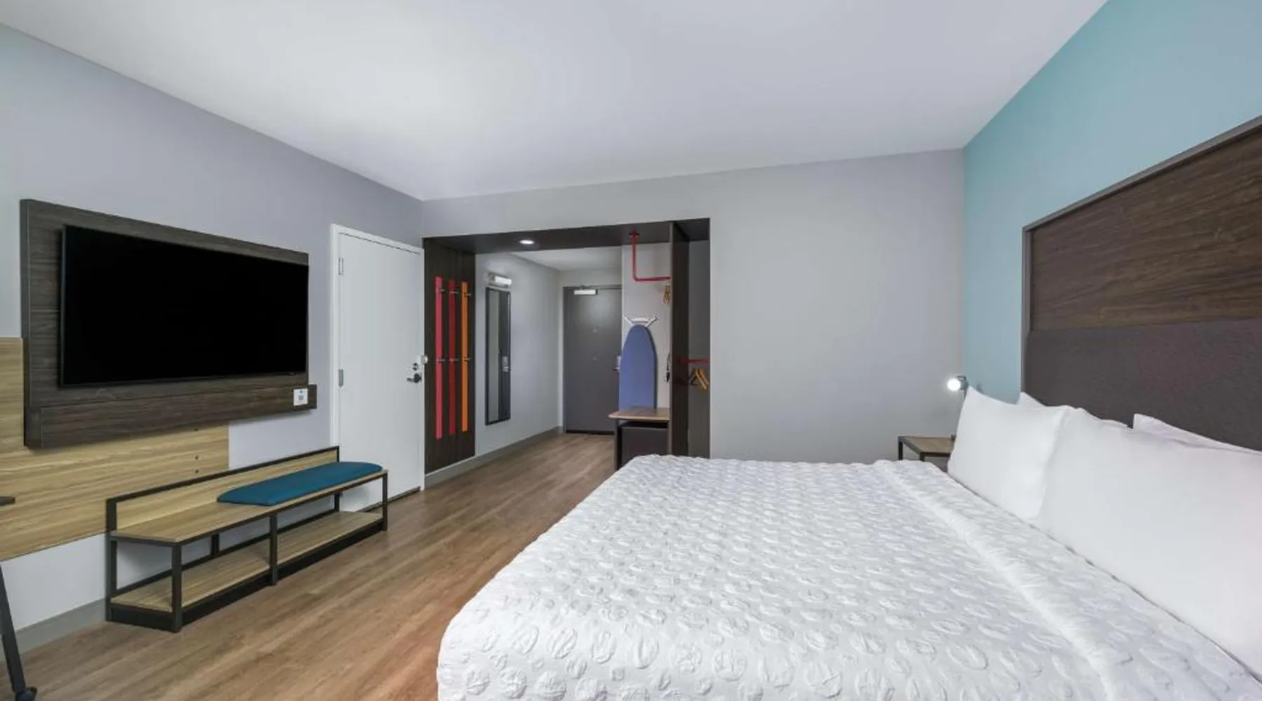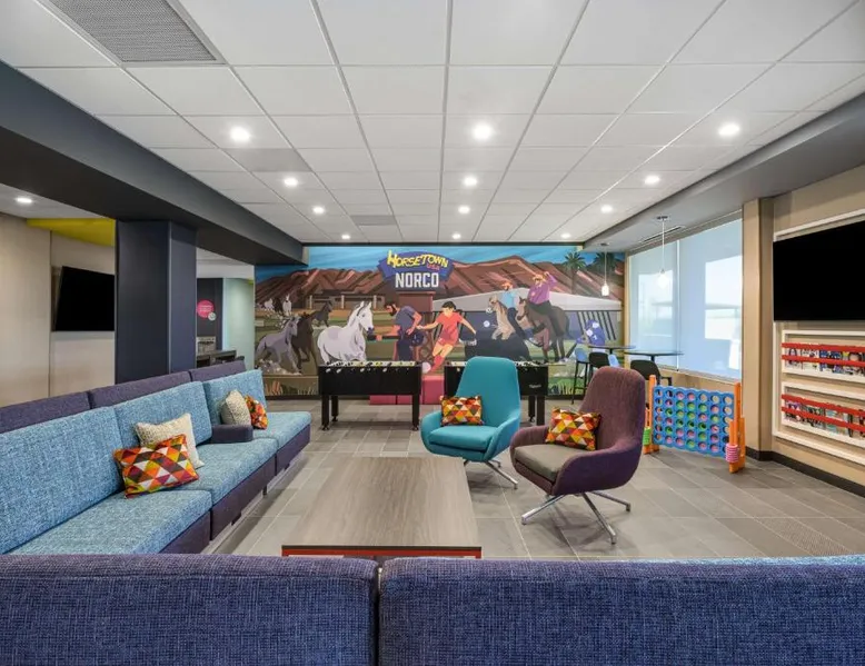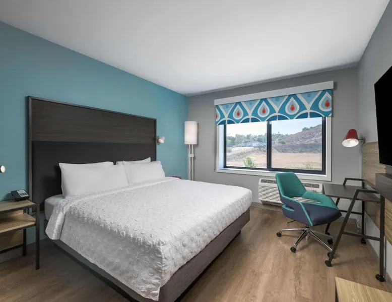 Comfortable Accommodations: Tru by Hilton Norco Eastvale in Norco offers family rooms with air-conditioning, private bathrooms, and free toiletries. Each room includes a refrigerator, hairdryer, and free toiletries. Leisure Facilities: Guests can enjoy a sun terrace and a year-round outdoor swimming pool. The property features a fitness room, lounge, and outdoor seating area. Free on-site parking is available. Convenient Location: Located 11 mi from LA/Ontario International Airport, the hotel is near attractions such as Disneyland (29 mi), Disney California Adventure (29 mi), and Auto Club Speedway (16 mi). Guest Satisfaction: Highly rated for room cleanliness and excellent staff service support. The spacious double room features air conditioning, heating, as well as a private bathroom boasting a hairdryer. The unit has 1 bed.