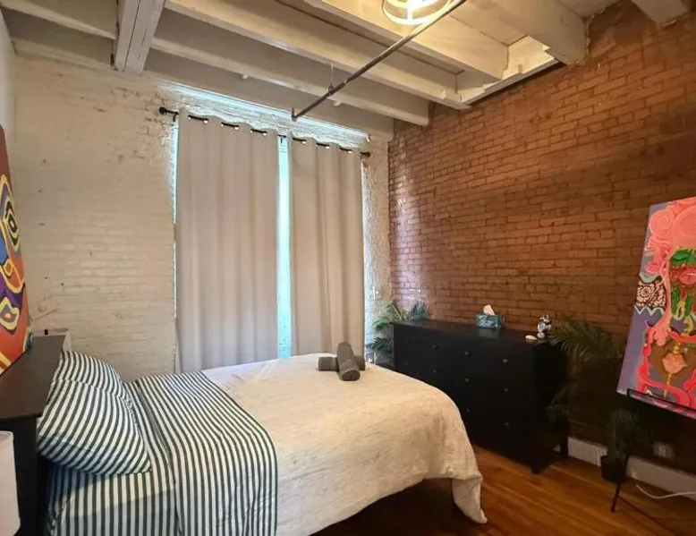Comfortable Accommodations: ROOM IN WILLIAMBURG IN A 2BEDROOMS APt in Brooklyn offers a homestay with two bedrooms. Guests enjoy free WiFi and air-conditioning, ensuring a pleasant stay. Modern Amenities: The property features a private bathroom and free off-site parking. Reception staff speak English and Spanish, providing assistance as needed. Prime Location: Located 8.1 mi from LaGuardia Airport, the homestay is close to attractions such as Bloomingdale's, Brooklyn Bridge, and Barclays Center, each 3.1 mi away. An ice-skating rink is also nearby. This double room is air-conditioned and has a private bathroom and heating. The unit has 1 bed.