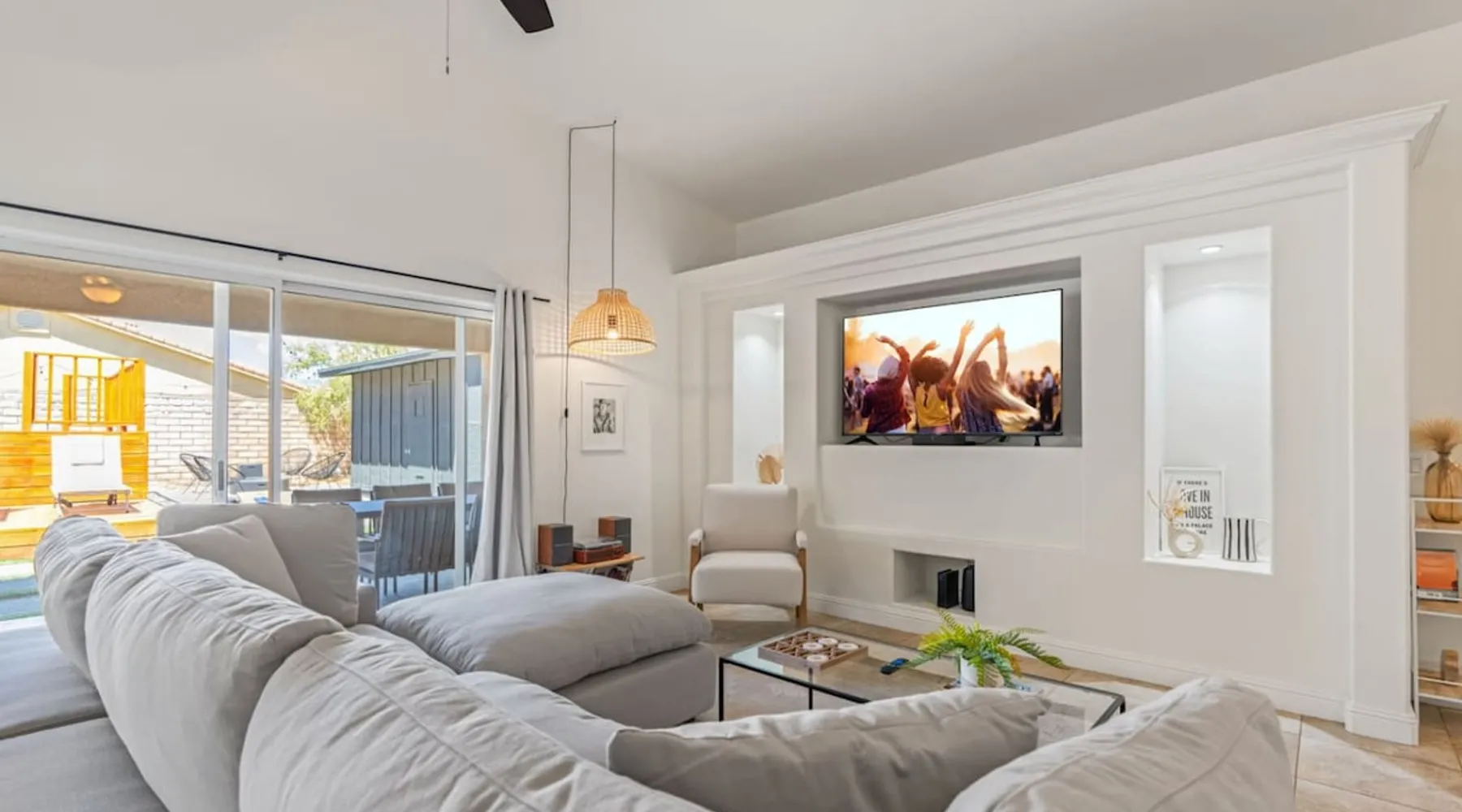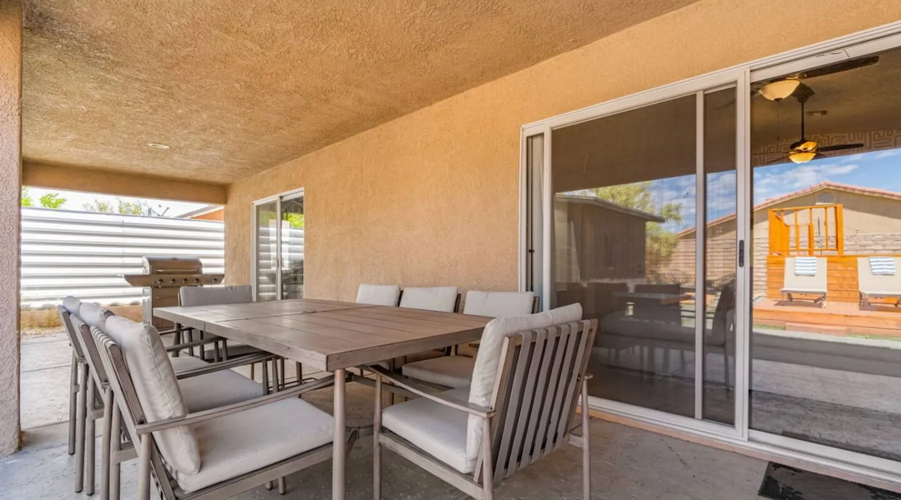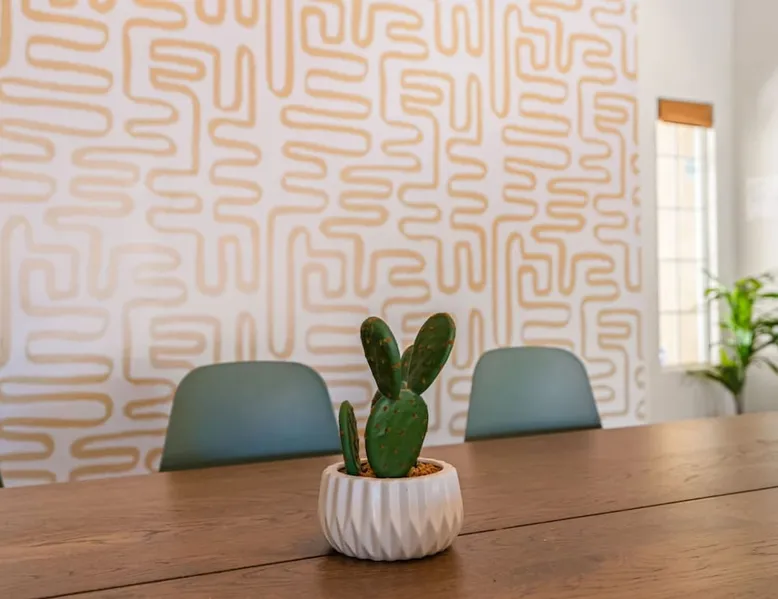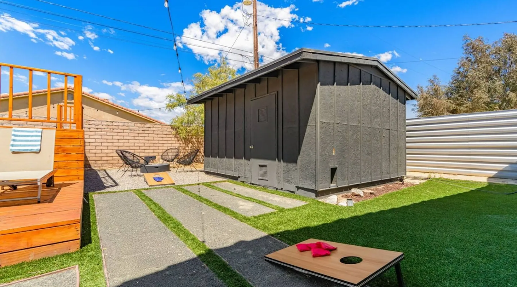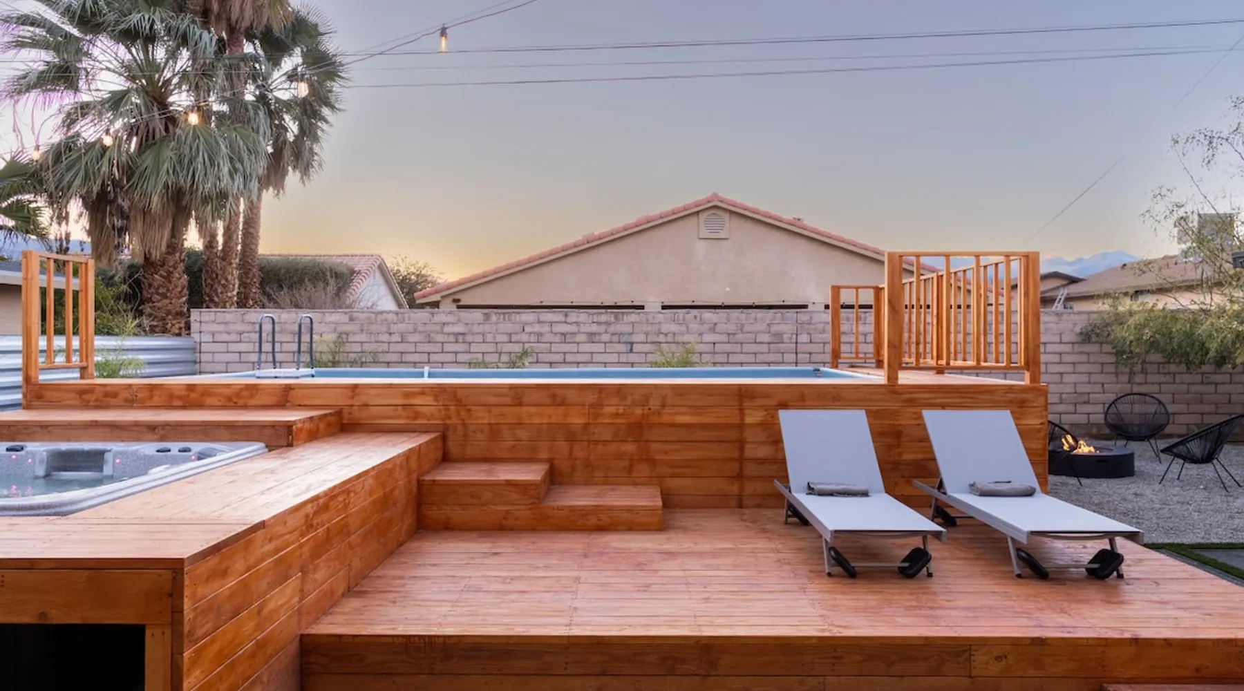 Welcome to Boho Bungalow—your private desert escape in Desert Hot Springs! Just 15 minutes from Palm Springs and 30 minutes from Joshua Tree, this modern 4-bedroom home is perfect for families, groups, or remote work retreats. Enjoy the above-ground pool and hot tub with a wrap-around deck, spacious interiors, and a fully fenced yard designed for comfort, fun, and unforgettable memories. The space ☆ Outdoor Amenities for Year-Round Enjoyment. Unwind in your private backyard oasis: • Above-ground pool and separate hot tub with wrap-around deck • Fire pit for cozy evenings under the stars • Propane BBQ grill • Corn hole & lawn games for group fun • Fully fenced yard – perfect for both play and pets ☆ Living Room • Stylish, spacious interior • Vaulted ceilings, leather sectional, accent chair • 65” Smart TV with sound bar • Article dining table seats 8 comfortably • Board games, puzzles & reading nook • Record player ☆Kitchen • Fully stocked with cookware, dinnerware for everyone • Perfect for group meals or light snacks • Modern appliances & spacious layout ☆4 Bedrooms | Sleeps 8 Comfortably ~ Primary Suite: King bed, Smart TV, black out curtains, walk-in closet and ensuite bathroom ~ Bedroom 2: Queen bed ~ Bedroom 3: Queen bed ~ Bedroom 4: Daybed with twin trundle, desk and office chair All bedrooms have sound machines, clothing storage and mirrors. ☆Bathrooms: Stocked with shampoo, conditioner, body wash, and hair dryer ☆ Laundry: Washer and dryer located in the garage for guest use ☆ Parking: The home includes a 1-car garage and space for up to 3 additional vehicles in the driveway, providing a total of 4 dedicated parking spots for your group’s convenience. Guest access ☆ Full & Private Access: As our guest, you’ll enjoy full access to every corner of Boho Bungalow, including the vibrant living spaces, fully fenced backyard, and private outdoor amenities like the pool, hot tub, fire pit, and BBQ. ☆ Contactless, 24/7 Check-In: We value your convenience and safety, which is why we offer a completely contactless check-in process. Regardless of your arrival time, you'll be able to access the property at your leisure, day or night. ☆ Digital House Manual: To make your stay as seamless as possible, you will receive a digital house manual filled with useful information about the property and local recommendations. Other things to note ☆ Family-Friendly Comfort: As parents ourselves, we know how important it is to have a space that makes traveling with little ones easier. Boho Bungalow is thoughtfully equipped for young families with a Pack 'n Play (crib sheets, sound machine and baby monitor included) and a high chair for added convenience. You'll also find a variety of books, games, and puzzles to enjoy together, plus kid-friendly dishware—including plastic plates, bowls, cups, sippy cups, and utensils—to make mealtime stress-free. ☆ Pet-Friendly Accommodations: We welcome one dog only (up to 60 lbs) for a fee of $150 per stay. This fee helps cover the additional cleaning required for pet hair. If any waste beyond hair (such as urine or feces) is found, an additional $200 cleaning fee will be charged. Guests are responsible for cleaning up after their pet, and dogs should not be left unattended in the home, as barking may disturb neighbors. Please note: Dogs are not allowed in the pool. Please let us know if you are traveling with a dog ☆ Desert Living: Our home is nestled in the beautiful Coachella Valley desert, where wind can occasionally blow sand or leaves into the pool. While our pool cleaners visit only Monday and Thursday to keep the water sparkling, we’ve also provided skimmers for your convenience if you'd like to clear any debris in between. Our gardener visits weekly on Mondays to maintain the yard. STR Permit #003584