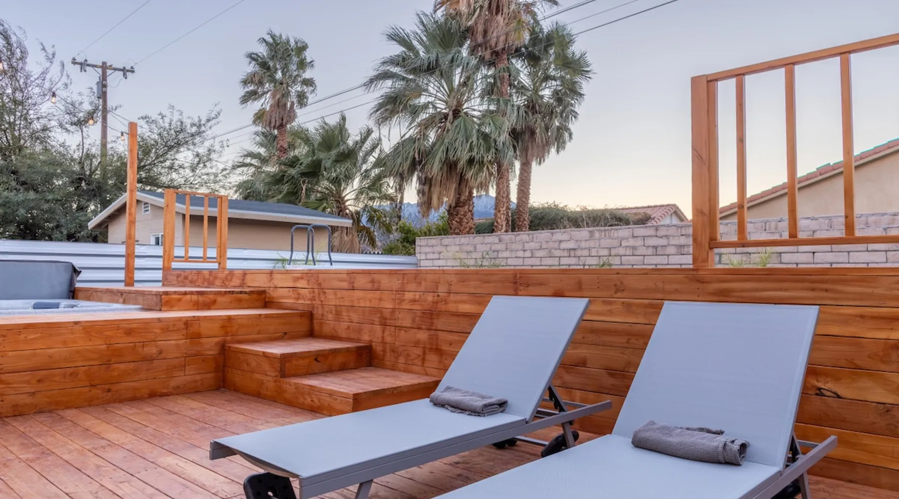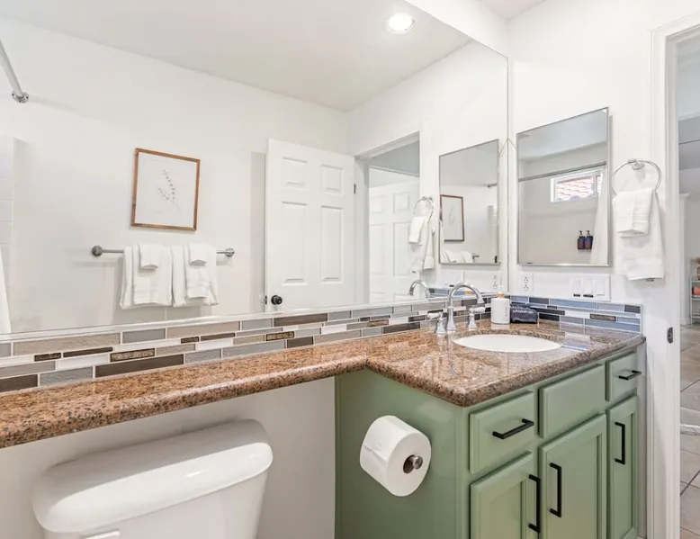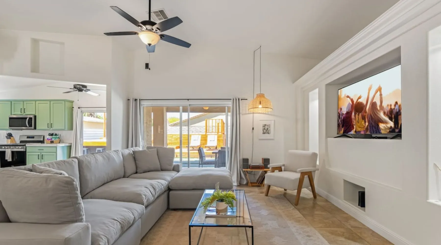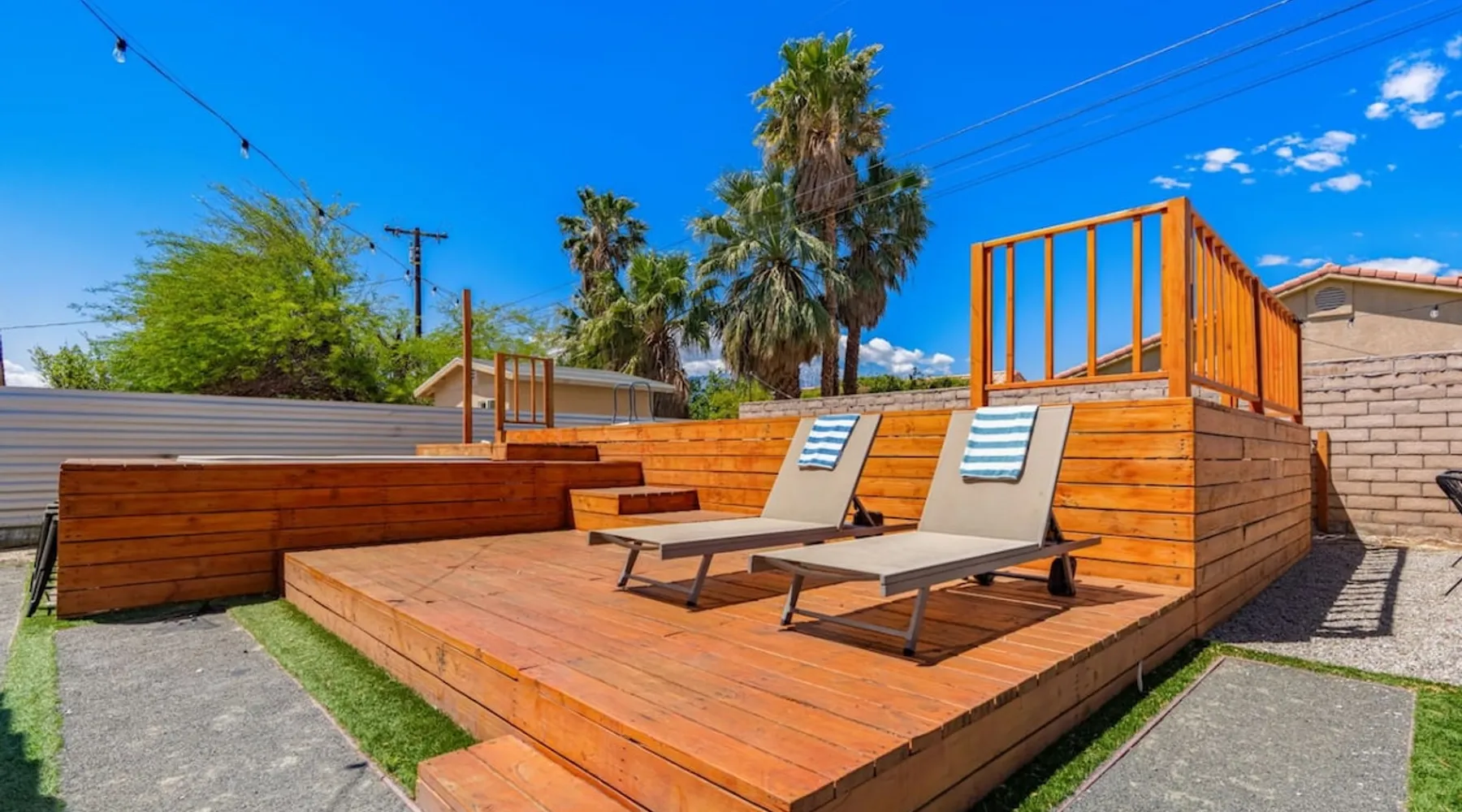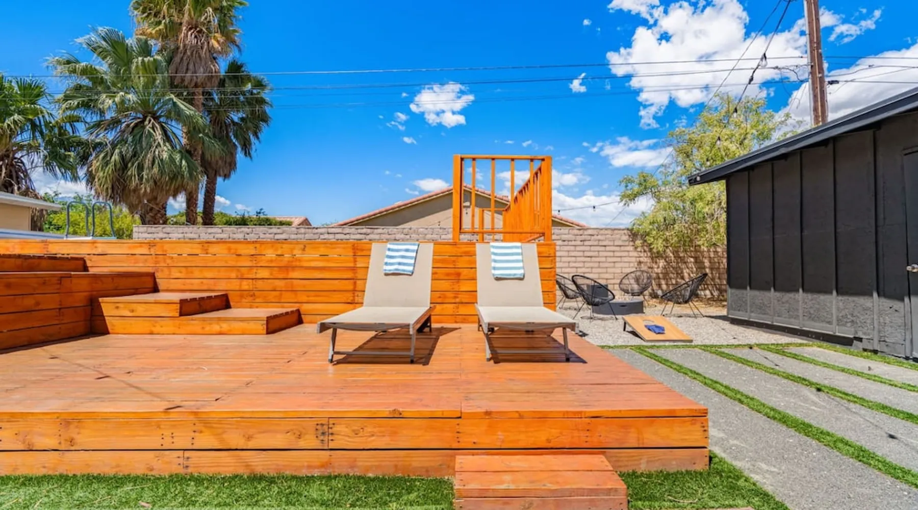 Welcome to Boho Bungalow—your private desert escape in Desert Hot Springs! Just 15 minutes from Palm Springs and 30 minutes from Joshua Tree, this modern 4-bedroom home is perfect for families, groups, or remote work retreats. Enjoy the above-ground pool and hot tub with a wrap-around deck, spacious interiors, and a fully fenced yard designed for comfort, fun, and unforgettable memories. The space ☆ Outdoor Amenities for Year-Round Enjoyment. Unwind in your private backyard oasis: • Above-ground pool and separate hot tub with wrap-around deck • Fire pit for cozy evenings under the stars • Propane BBQ grill • Corn hole & lawn games for group fun • Fully fenced yard – perfect for both play and pets ☆ Living Room • Stylish, spacious interior • Vaulted ceilings, leather sectional, accent chair • 65” Smart TV with sound bar • Article dining table seats 8 comfortably • Board games, puzzles & reading nook • Record player ☆Kitchen • Fully stocked with cookware, dinnerware for everyone • Perfect for group meals or light snacks • Modern appliances & spacious layout ☆4 Bedrooms | Sleeps 8 Comfortably ~ Primary Suite: King bed, Smart TV, black out curtains, walk-in closet and ensuite bathroom ~ Bedroom 2: Queen bed ~ Bedroom 3: Queen bed ~ Bedroom 4: Daybed with twin trundle, desk and office chair All bedrooms have sound machines, clothing storage and mirrors. ☆Bathrooms: Stocked with shampoo, conditioner, body wash, and hair dryer ☆ Laundry: Washer and dryer located in the garage for guest use ☆ Parking: The home includes a 1-car garage and space for up to 3 additional vehicles in the driveway, providing a total of 4 dedicated parking spots for your group’s convenience. Guest access ☆ Full & Private Access: As our guest, you’ll enjoy full access to every corner of Boho Bungalow, including the vibrant living spaces, fully fenced backyard, and private outdoor amenities like the pool, hot tub, fire pit, and BBQ. ☆ Contactless, 24/7 Check-In: We value your convenience and safety, which is why we offer a completely contactless check-in process. Regardless of your arrival time, you'll be able to access the property at your leisure, day or night. ☆ Digital House Manual: To make your stay as seamless as possible, you will receive a digital house manual filled with useful information about the property and local recommendations. Other things to note ☆ Family-Friendly Comfort: As parents ourselves, we know how important it is to have a space that makes traveling with little ones easier. Boho Bungalow is thoughtfully equipped for young families with a Pack 'n Play (crib sheets, sound machine and baby monitor included) and a high chair for added convenience. You'll also find a variety of books, games, and puzzles to enjoy together, plus kid-friendly dishware—including plastic plates, bowls, cups, sippy cups, and utensils—to make mealtime stress-free. ☆ Pet-Friendly Accommodations: We welcome one dog only (up to 60 lbs) for a fee of $150 per stay. This fee helps cover the additional cleaning required for pet hair. If any waste beyond hair (such as urine or feces) is found, an additional $200 cleaning fee will be charged. Guests are responsible for cleaning up after their pet, and dogs should not be left unattended in the home, as barking may disturb neighbors. Please note: Dogs are not allowed in the pool. Please let us know if you are traveling with a dog ☆ Desert Living: Our home is nestled in the beautiful Coachella Valley desert, where wind can occasionally blow sand or leaves into the pool. While our pool cleaners visit only Monday and Thursday to keep the water sparkling, we’ve also provided skimmers for your convenience if you'd like to clear any debris in between. Our gardener visits weekly on Mondays to maintain the yard. STR Permit #003584