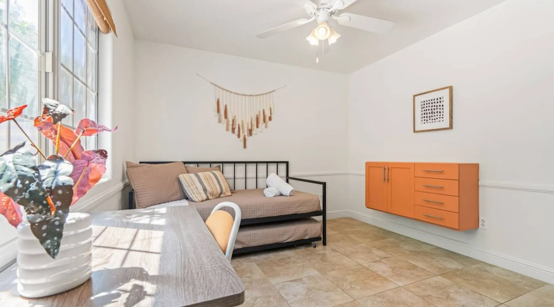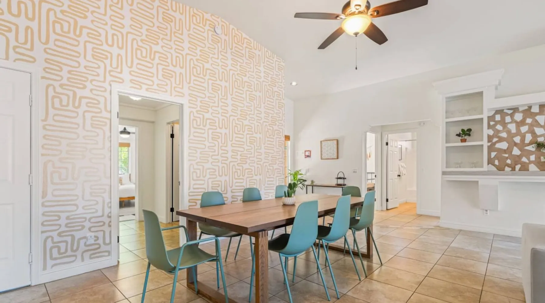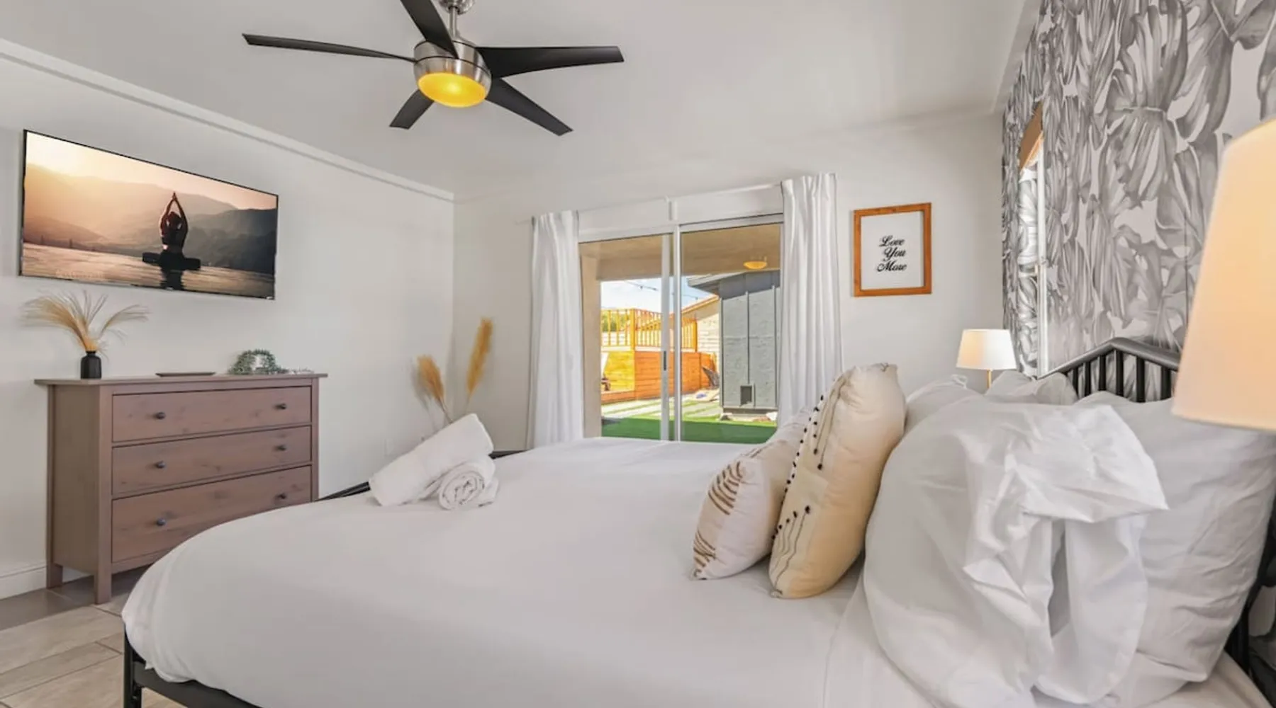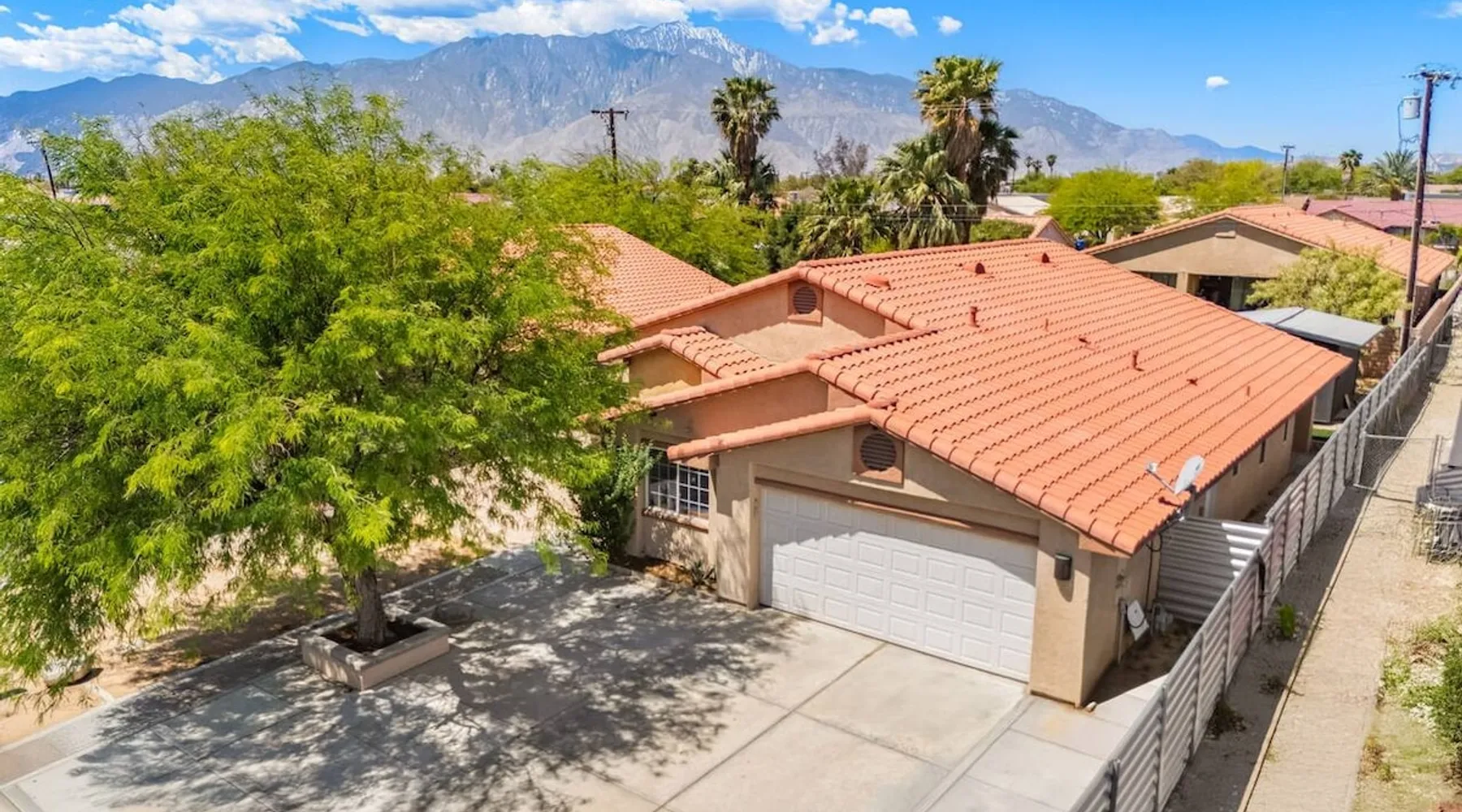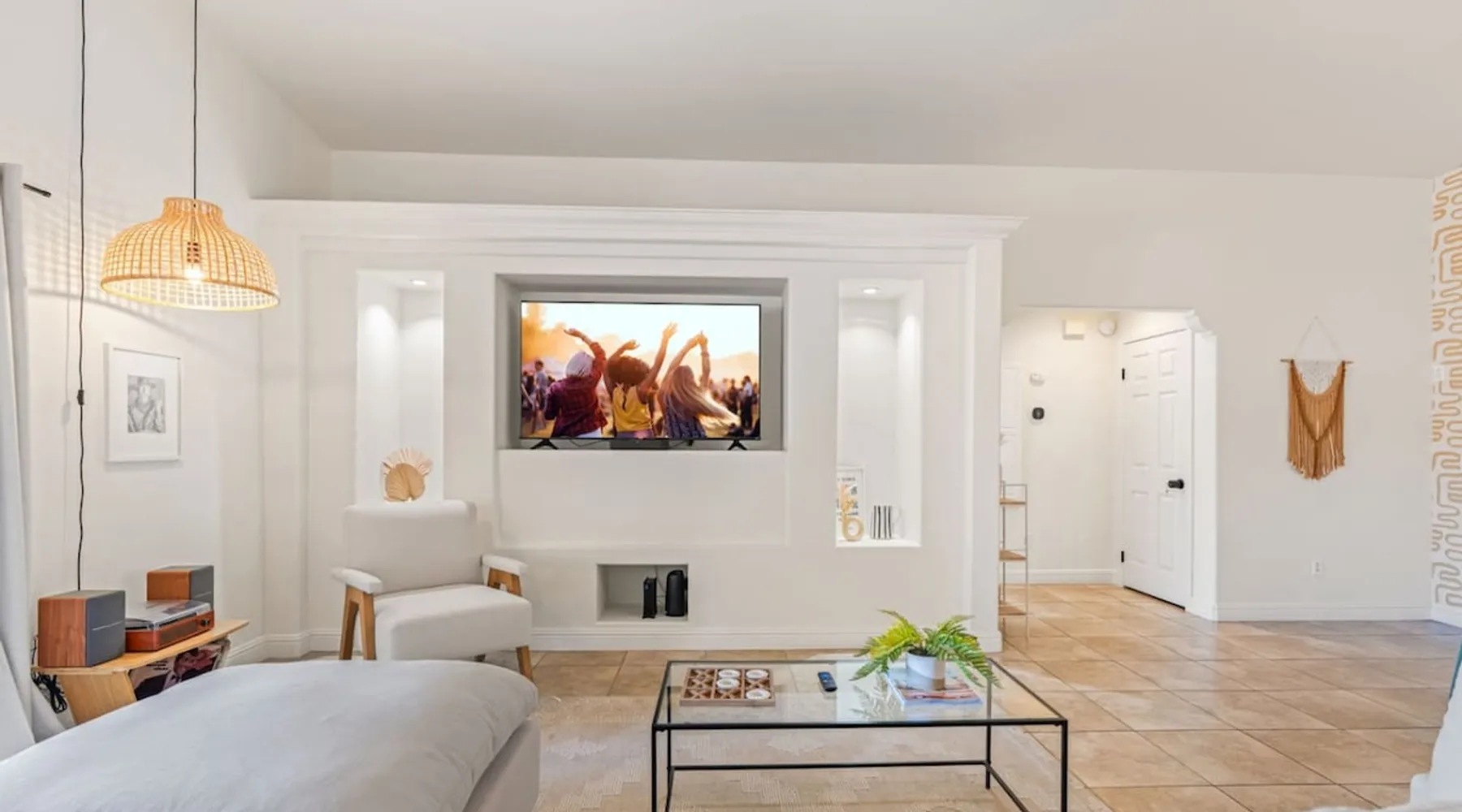 Welcome to Boho Bungalow—your private desert escape in Desert Hot Springs! Just 15 minutes from Palm Springs and 30 minutes from Joshua Tree, this modern 4-bedroom home is perfect for families, groups, or remote work retreats. Enjoy the above-ground pool and hot tub with a wrap-around deck, spacious interiors, and a fully fenced yard designed for comfort, fun, and unforgettable memories. The space ☆ Outdoor Amenities for Year-Round Enjoyment. Unwind in your private backyard oasis: • Above-ground pool and separate hot tub with wrap-around deck • Fire pit for cozy evenings under the stars • Propane BBQ grill • Corn hole & lawn games for group fun • Fully fenced yard – perfect for both play and pets ☆ Living Room • Stylish, spacious interior • Vaulted ceilings, leather sectional, accent chair • 65” Smart TV with sound bar • Article dining table seats 8 comfortably • Board games, puzzles & reading nook • Record player ☆Kitchen • Fully stocked with cookware, dinnerware for everyone • Perfect for group meals or light snacks • Modern appliances & spacious layout ☆4 Bedrooms | Sleeps 8 Comfortably ~ Primary Suite: King bed, Smart TV, black out curtains, walk-in closet and ensuite bathroom ~ Bedroom 2: Queen bed ~ Bedroom 3: Queen bed ~ Bedroom 4: Daybed with twin trundle, desk and office chair All bedrooms have sound machines, clothing storage and mirrors. ☆Bathrooms: Stocked with shampoo, conditioner, body wash, and hair dryer ☆ Laundry: Washer and dryer located in the garage for guest use ☆ Parking: The home includes a 1-car garage and space for up to 3 additional vehicles in the driveway, providing a total of 4 dedicated parking spots for your group’s convenience. Guest access ☆ Full & Private Access: As our guest, you’ll enjoy full access to every corner of Boho Bungalow, including the vibrant living spaces, fully fenced backyard, and private outdoor amenities like the pool, hot tub, fire pit, and BBQ. ☆ Contactless, 24/7 Check-In: We value your convenience and safety, which is why we offer a completely contactless check-in process. Regardless of your arrival time, you'll be able to access the property at your leisure, day or night. ☆ Digital House Manual: To make your stay as seamless as possible, you will receive a digital house manual filled with useful information about the property and local recommendations. Other things to note ☆ Family-Friendly Comfort: As parents ourselves, we know how important it is to have a space that makes traveling with little ones easier. Boho Bungalow is thoughtfully equipped for young families with a Pack 'n Play (crib sheets, sound machine and baby monitor included) and a high chair for added convenience. You'll also find a variety of books, games, and puzzles to enjoy together, plus kid-friendly dishware—including plastic plates, bowls, cups, sippy cups, and utensils—to make mealtime stress-free. ☆ Pet-Friendly Accommodations: We welcome one dog only (up to 60 lbs) for a fee of $150 per stay. This fee helps cover the additional cleaning required for pet hair. If any waste beyond hair (such as urine or feces) is found, an additional $200 cleaning fee will be charged. Guests are responsible for cleaning up after their pet, and dogs should not be left unattended in the home, as barking may disturb neighbors. Please note: Dogs are not allowed in the pool. Please let us know if you are traveling with a dog ☆ Desert Living: Our home is nestled in the beautiful Coachella Valley desert, where wind can occasionally blow sand or leaves into the pool. While our pool cleaners visit only Monday and Thursday to keep the water sparkling, we’ve also provided skimmers for your convenience if you'd like to clear any debris in between. Our gardener visits weekly on Mondays to maintain the yard. STR Permit #003584