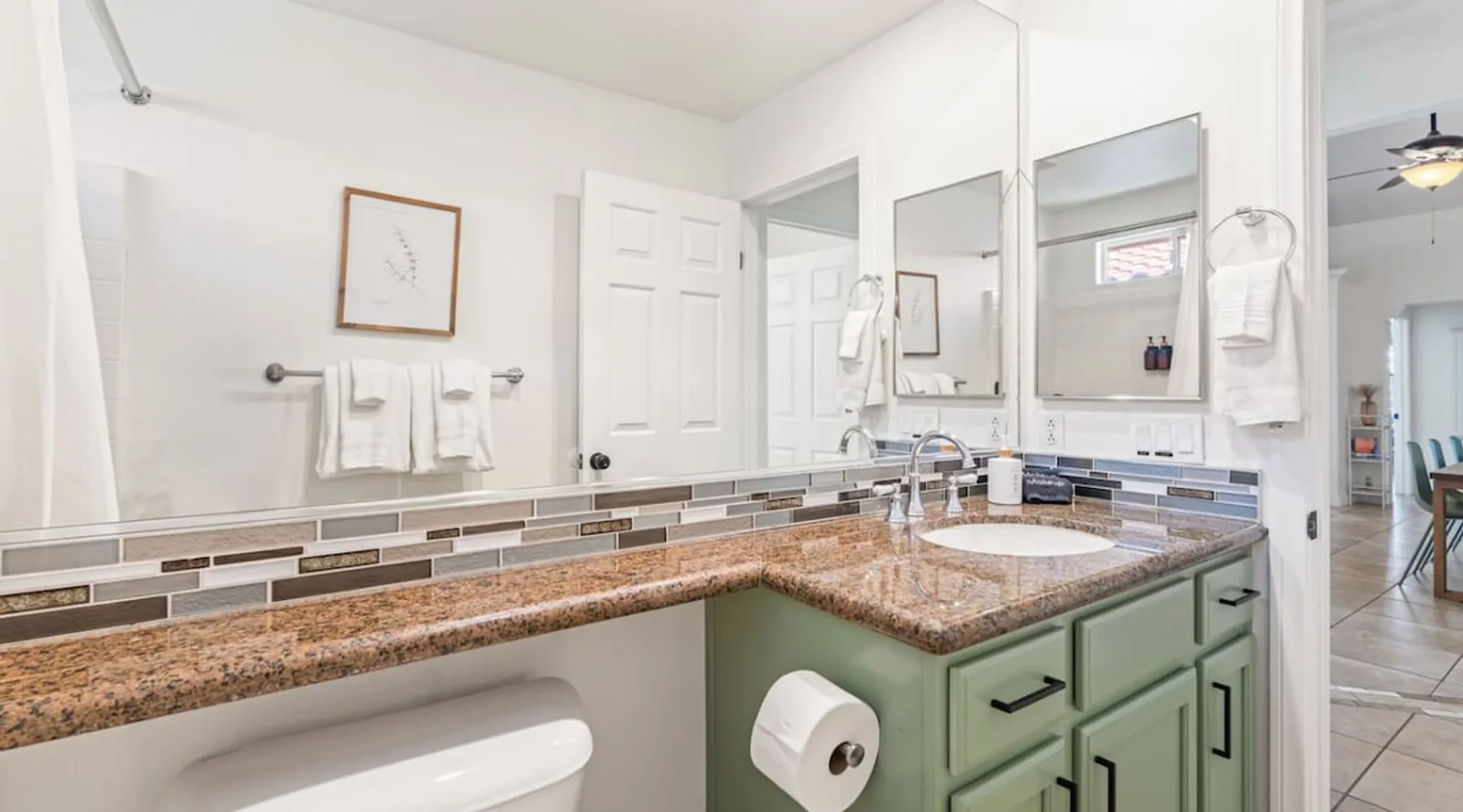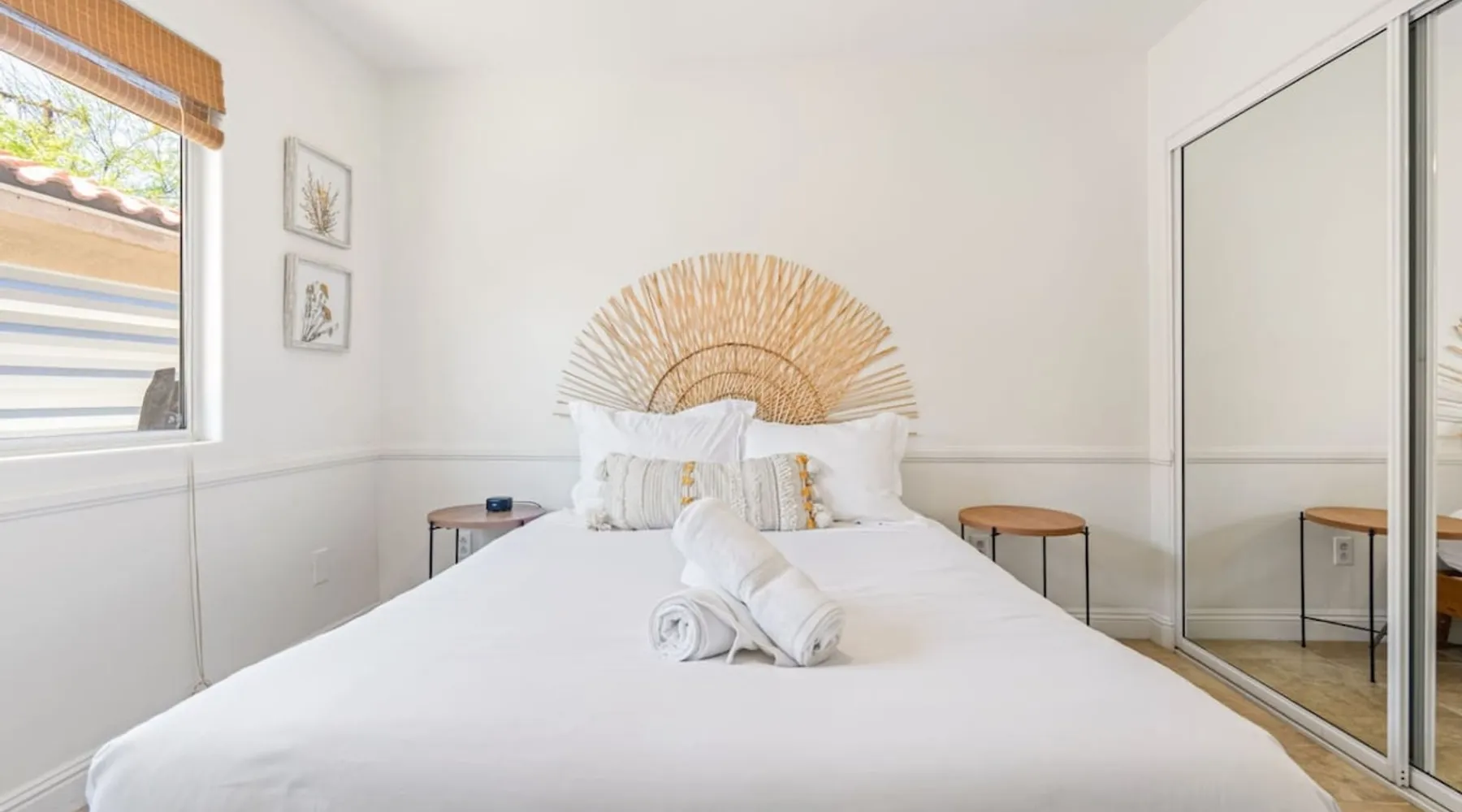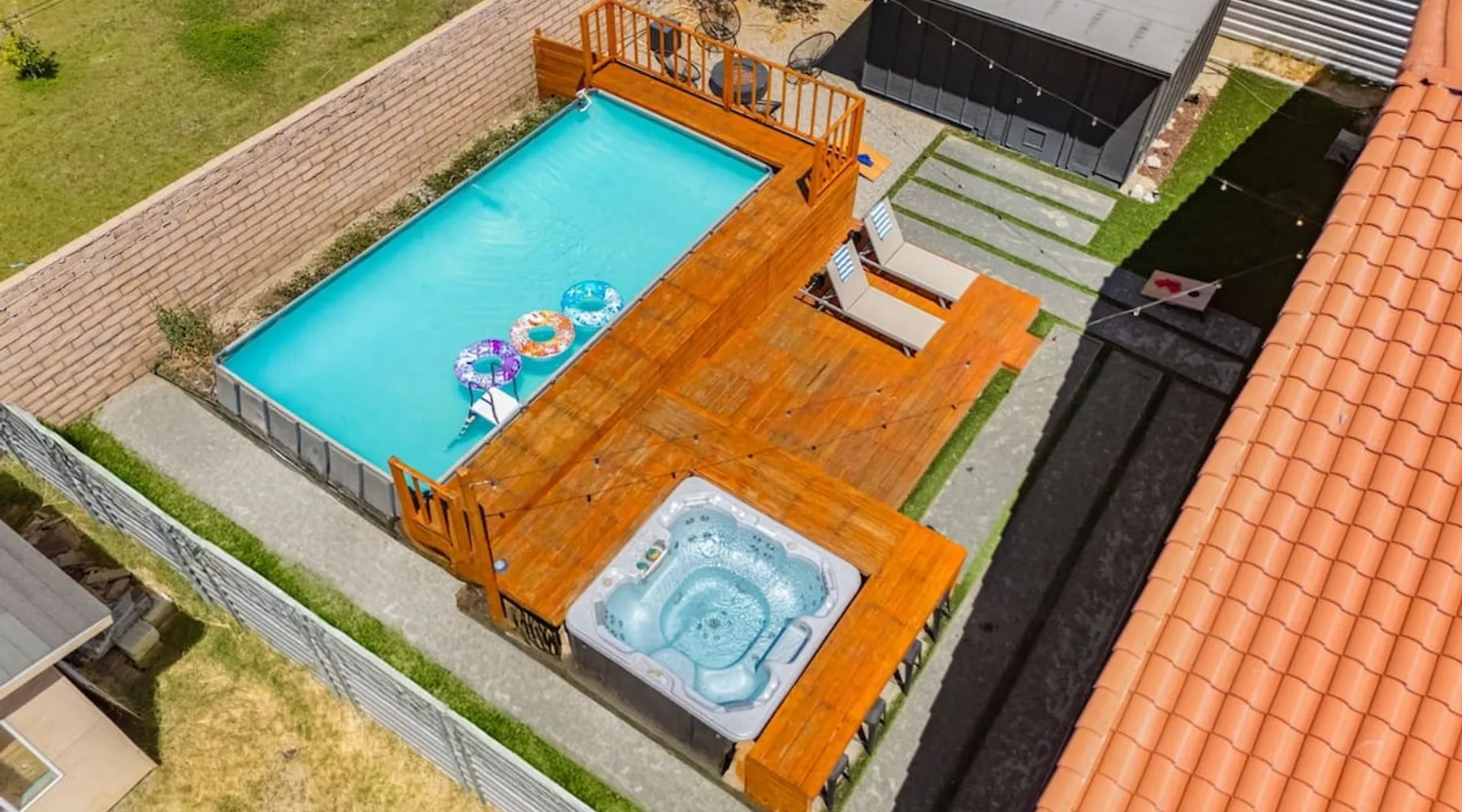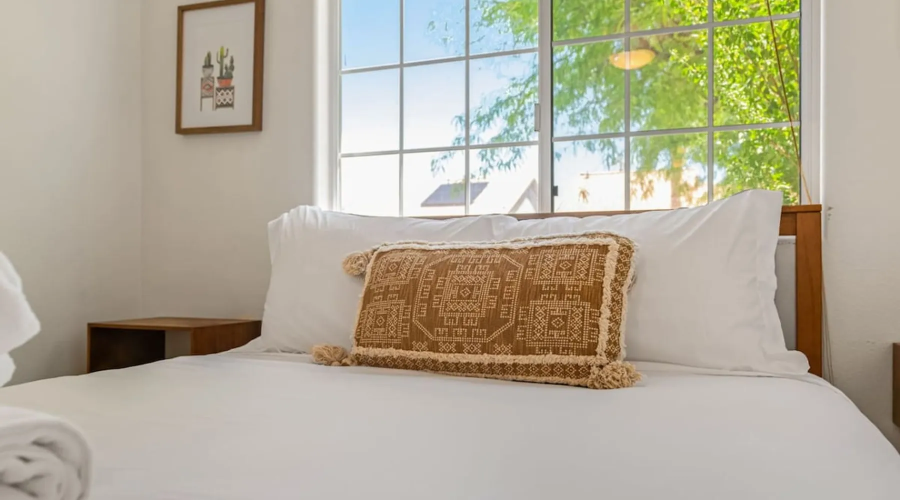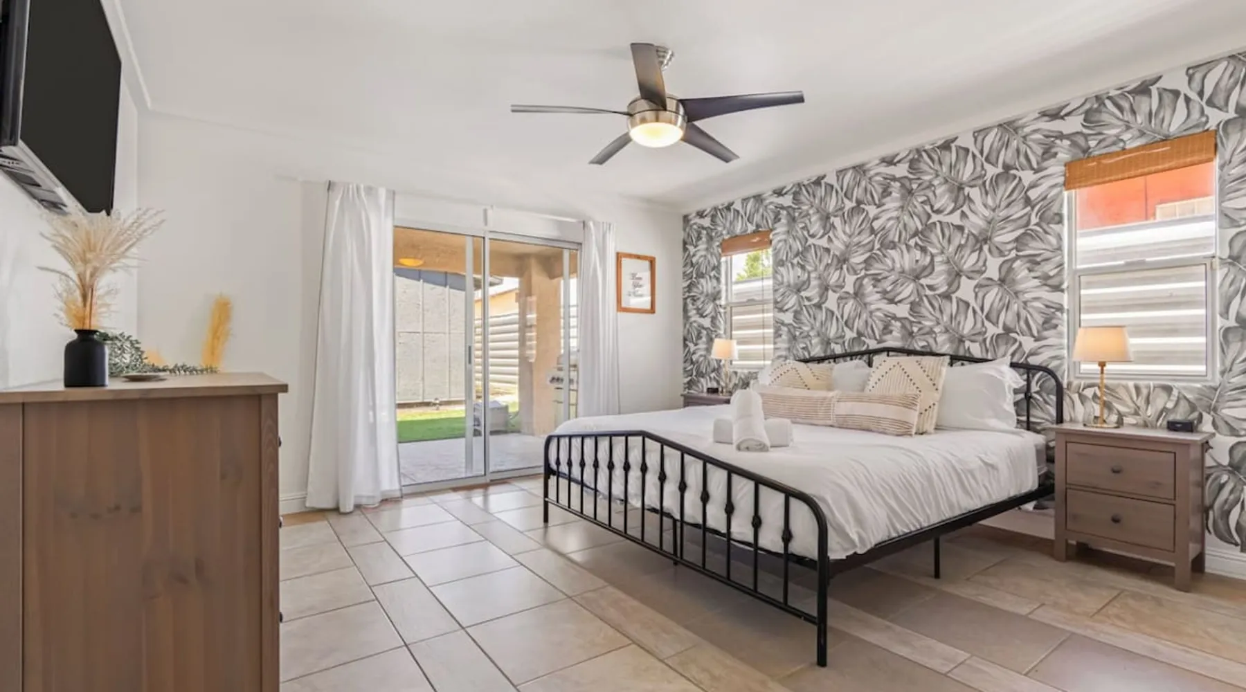 Welcome to Boho Bungalow—your private desert escape in Desert Hot Springs! Just 15 minutes from Palm Springs and 30 minutes from Joshua Tree, this modern 4-bedroom home is perfect for families, groups, or remote work retreats. Enjoy the above-ground pool and hot tub with a wrap-around deck, spacious interiors, and a fully fenced yard designed for comfort, fun, and unforgettable memories. The space ☆ Outdoor Amenities for Year-Round Enjoyment. Unwind in your private backyard oasis: • Above-ground pool and separate hot tub with wrap-around deck • Fire pit for cozy evenings under the stars • Propane BBQ grill • Corn hole & lawn games for group fun • Fully fenced yard – perfect for both play and pets ☆ Living Room • Stylish, spacious interior • Vaulted ceilings, leather sectional, accent chair • 65” Smart TV with sound bar • Article dining table seats 8 comfortably • Board games, puzzles & reading nook • Record player ☆Kitchen • Fully stocked with cookware, dinnerware for everyone • Perfect for group meals or light snacks • Modern appliances & spacious layout ☆4 Bedrooms | Sleeps 8 Comfortably ~ Primary Suite: King bed, Smart TV, black out curtains, walk-in closet and ensuite bathroom ~ Bedroom 2: Queen bed ~ Bedroom 3: Queen bed ~ Bedroom 4: Daybed with twin trundle, desk and office chair All bedrooms have sound machines, clothing storage and mirrors. ☆Bathrooms: Stocked with shampoo, conditioner, body wash, and hair dryer ☆ Laundry: Washer and dryer located in the garage for guest use ☆ Parking: The home includes a 1-car garage and space for up to 3 additional vehicles in the driveway, providing a total of 4 dedicated parking spots for your group’s convenience. Guest access ☆ Full & Private Access: As our guest, you’ll enjoy full access to every corner of Boho Bungalow, including the vibrant living spaces, fully fenced backyard, and private outdoor amenities like the pool, hot tub, fire pit, and BBQ. ☆ Contactless, 24/7 Check-In: We value your convenience and safety, which is why we offer a completely contactless check-in process. Regardless of your arrival time, you'll be able to access the property at your leisure, day or night. ☆ Digital House Manual: To make your stay as seamless as possible, you will receive a digital house manual filled with useful information about the property and local recommendations. Other things to note ☆ Family-Friendly Comfort: As parents ourselves, we know how important it is to have a space that makes traveling with little ones easier. Boho Bungalow is thoughtfully equipped for young families with a Pack 'n Play (crib sheets, sound machine and baby monitor included) and a high chair for added convenience. You'll also find a variety of books, games, and puzzles to enjoy together, plus kid-friendly dishware—including plastic plates, bowls, cups, sippy cups, and utensils—to make mealtime stress-free. ☆ Pet-Friendly Accommodations: We welcome one dog only (up to 60 lbs) for a fee of $150 per stay. This fee helps cover the additional cleaning required for pet hair. If any waste beyond hair (such as urine or feces) is found, an additional $200 cleaning fee will be charged. Guests are responsible for cleaning up after their pet, and dogs should not be left unattended in the home, as barking may disturb neighbors. Please note: Dogs are not allowed in the pool. Please let us know if you are traveling with a dog ☆ Desert Living: Our home is nestled in the beautiful Coachella Valley desert, where wind can occasionally blow sand or leaves into the pool. While our pool cleaners visit only Monday and Thursday to keep the water sparkling, we’ve also provided skimmers for your convenience if you'd like to clear any debris in between. Our gardener visits weekly on Mondays to maintain the yard. STR Permit #003584