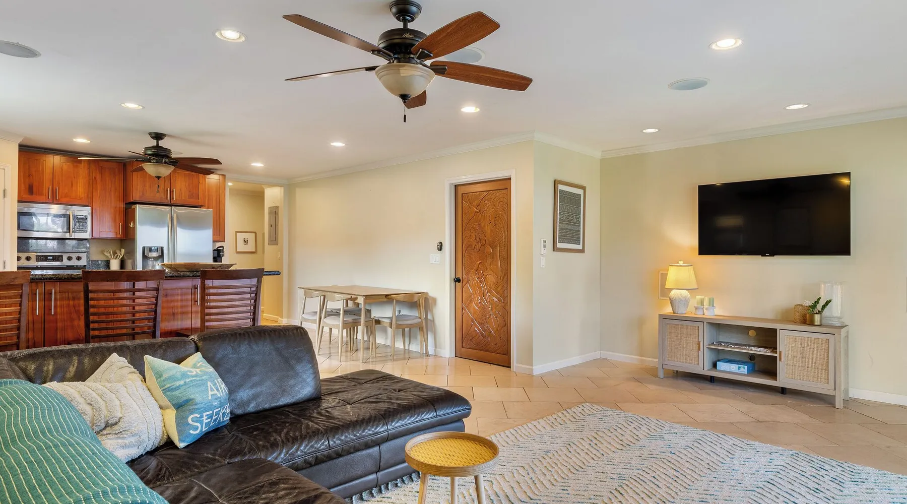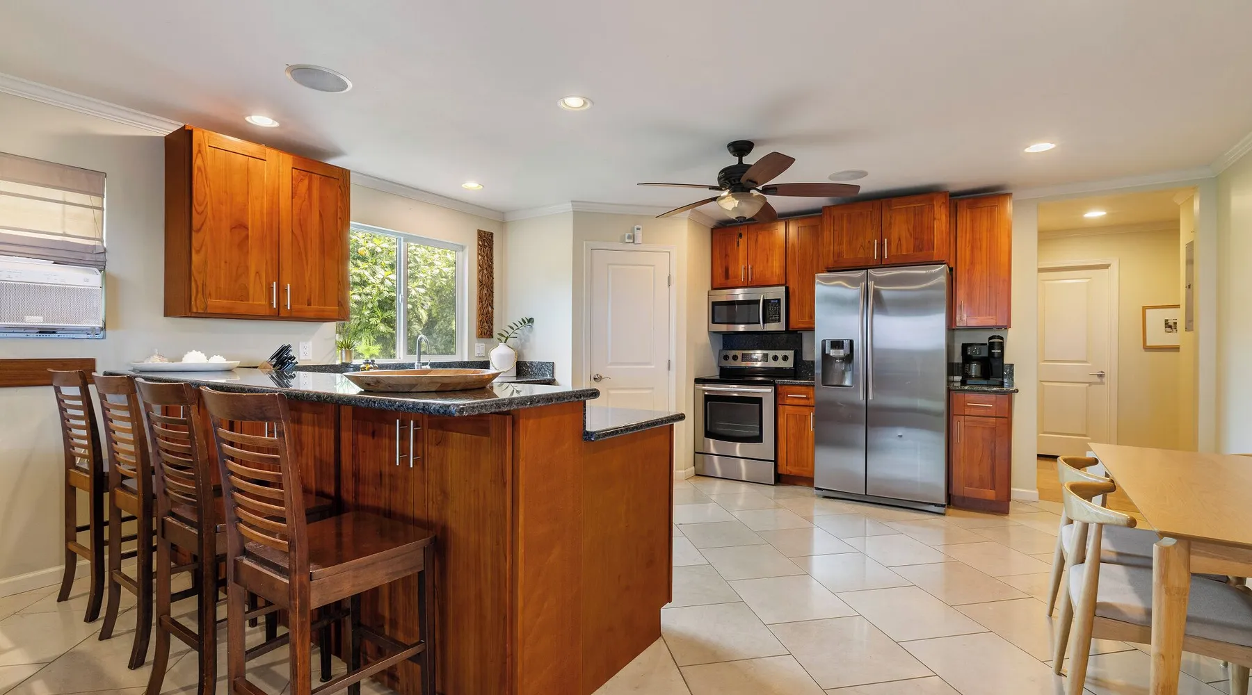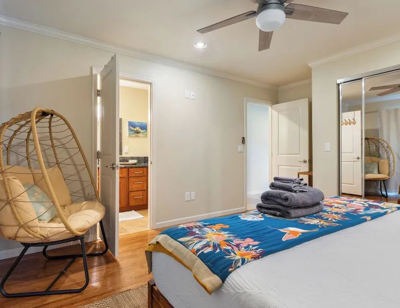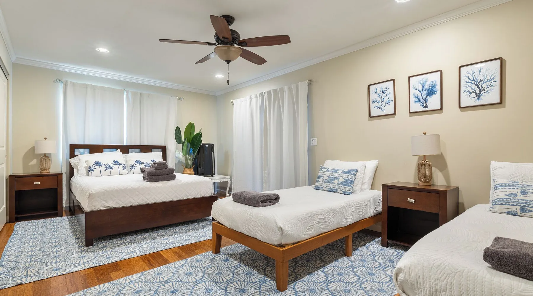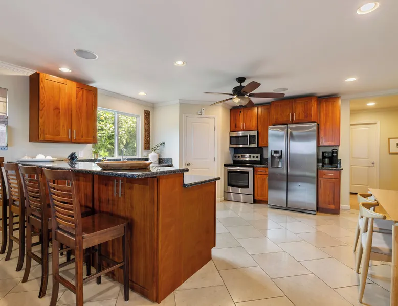Vrbo Premiere Host new rental: Experience the ultimate Hawaiian getaway in this spacious oceanfront estate just steps from the beach. This unique property combines upper and lower units connected by external stairs for maximum space, privacy, and breathtaking ocean views. UPSTAIRS King Master Suite + Ensuite Full bathroom Queen Bedroom Queen Bedroom Full Kitchen Living Room DOWNSTAIRS King Bedroom Queen + 2 Twin Beds Queen Murphy Bed in a separate Studio Kitchen Half Bathroom Another Half Bathroom Full Bathroom (shower/tub) Outdoor Shower Noteworthy: • The map pin gives a general idea but not the exact location. • Two parking spots within the fenced property. Streetside parking is free, but not guaranteed. • We keep the home clean and use regular pest control, but this is the tropics and occasional visits from insects, reptiles, birds, and small mammals may occur. Wild chickens and roosters also have free rein on the island and may wander into the yard uninvited. • This home cannot be used as a venue for group gatherings such as birthdays,