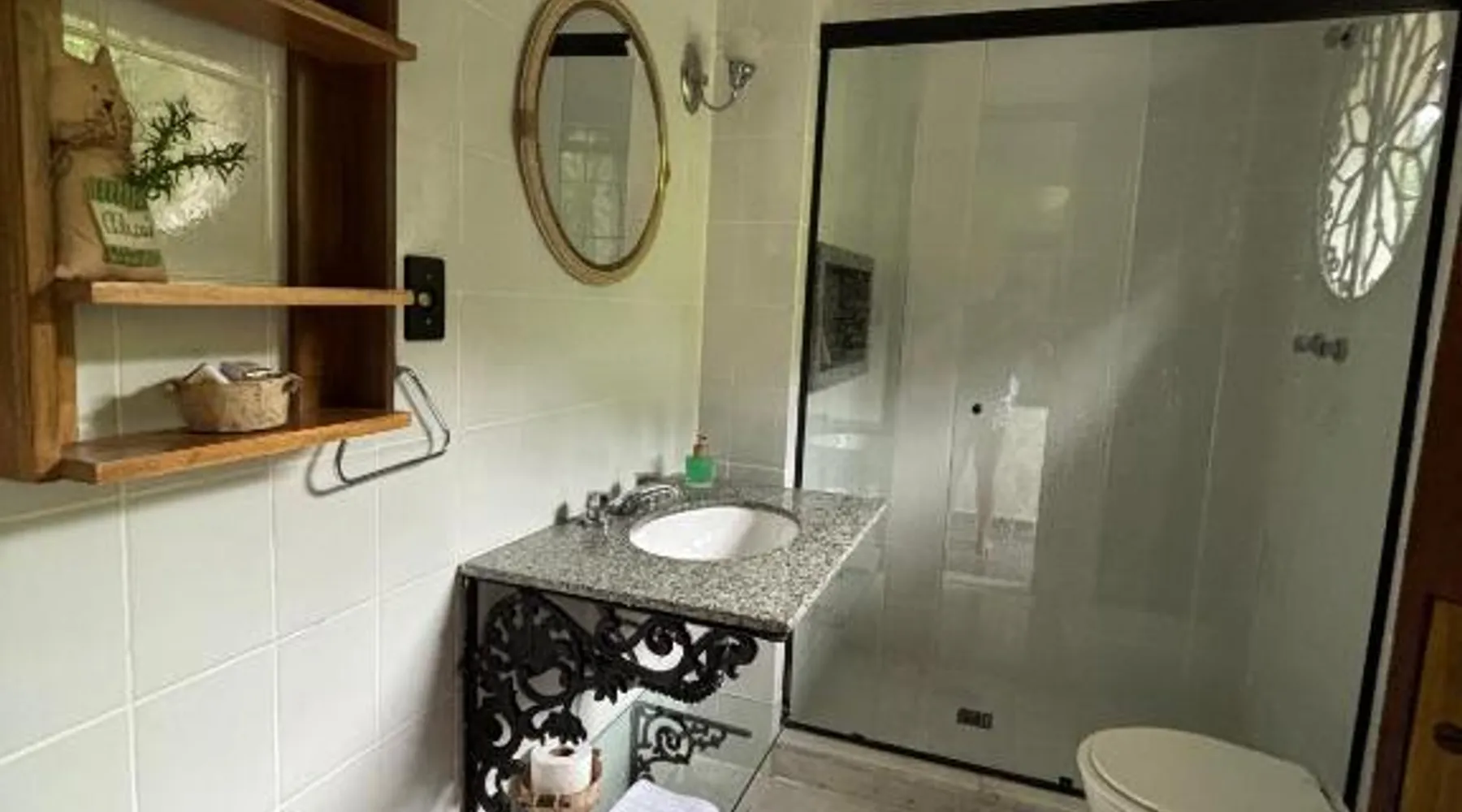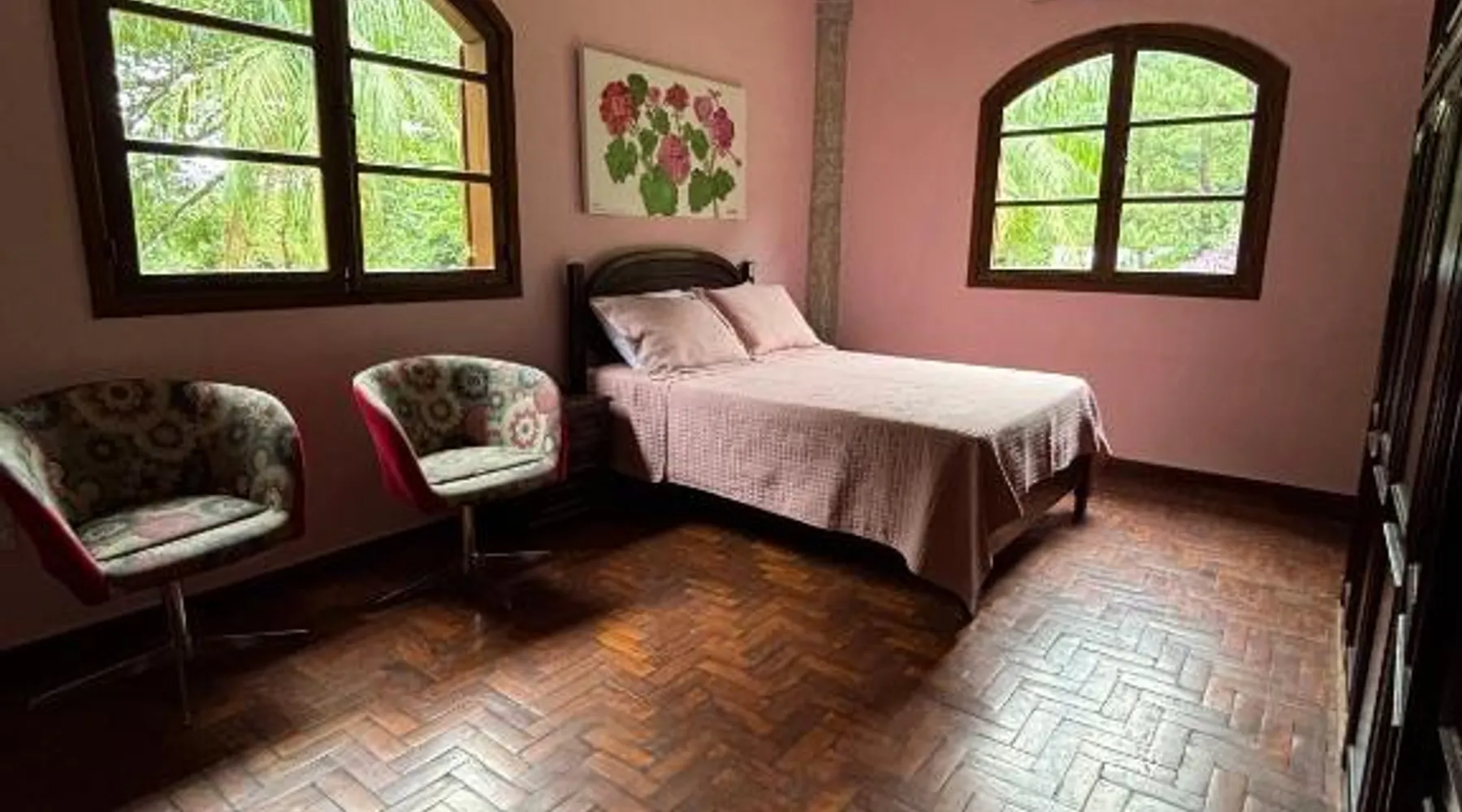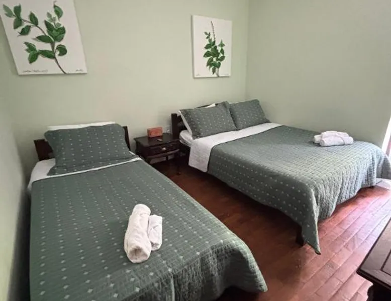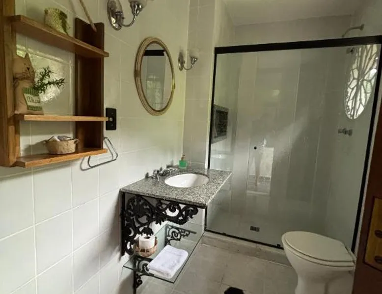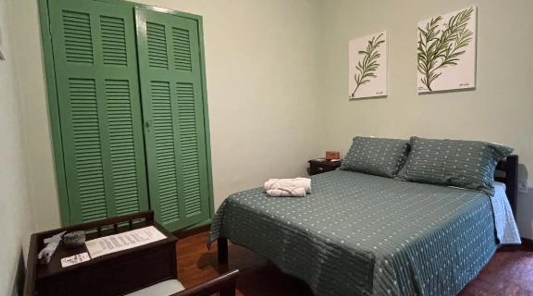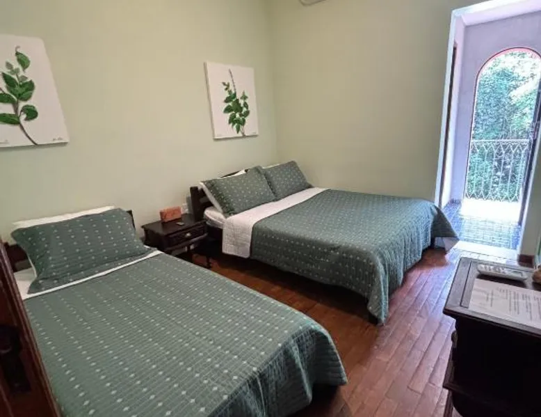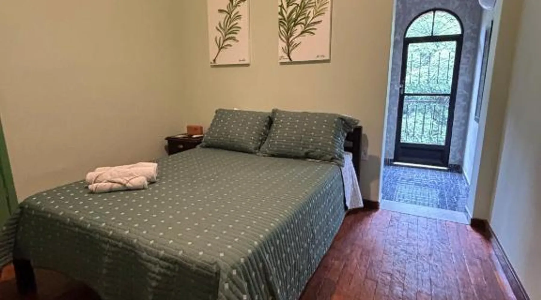 Elegant Accommodations: Fazenda Colomi in Guapimirim offers a homestay experience with an infinity swimming pool, lush garden, and a family-friendly restaurant. Guests enjoy free on-site private parking, air-conditioning, and balconies with garden or mountain views. Comfortable Amenities: The property features a games room, culture classes, and a child-friendly buffet. Additional amenities include a mini-bar, parquet floors, and interconnected rooms, ensuring a comfortable stay for all visitors. Dining Experience: A buffet breakfast is served daily, featuring local specialties, juice, cheese, and fruits. The restaurant offers Brazilian cuisine with vegetarian and vegan options, providing a delightful dining experience for all guests. Local Attractions: Located 50 mi from Rio de Janeiro/Galeão International Airport, Fazenda Colomi is near Soberbo Belvedere (13 mi) and the House of Portugal Club (17 mi). Guests can enjoy walking tours and hiking in the surrounding area. The pool with a view is the standout feature of this double room. The double room features air conditioning, a mini-bar, a balcony with garden views as well as a private bathroom boasting a shower. The unit has 1 bed.