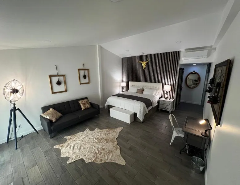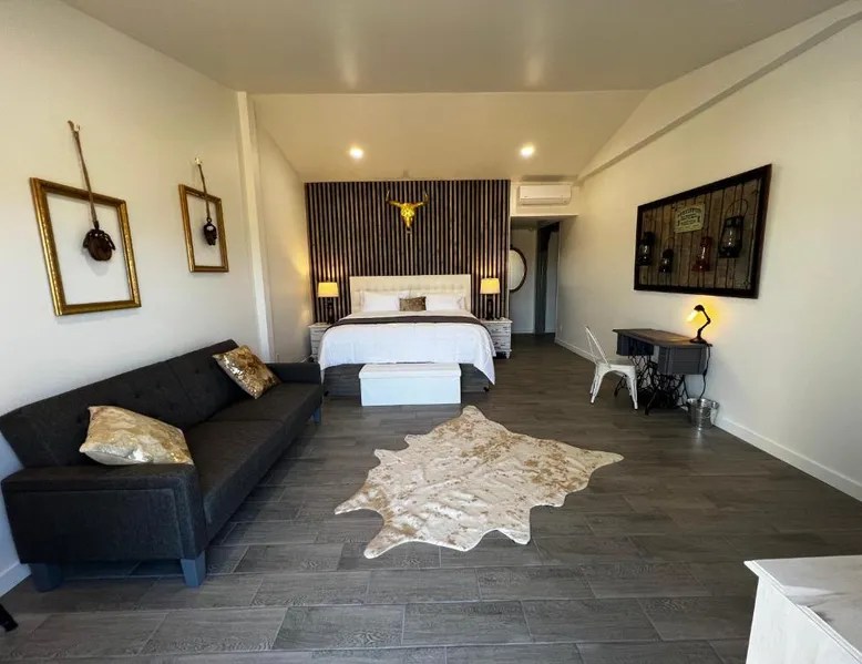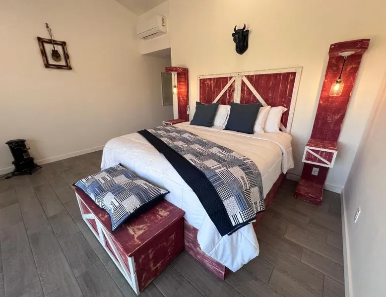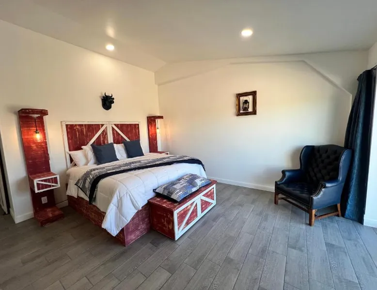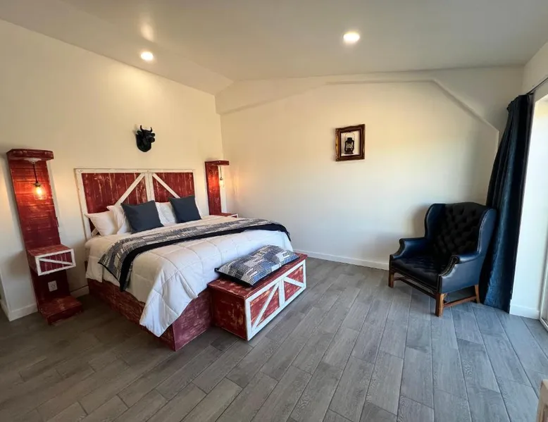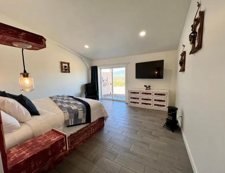 Elegant Accommodations: Blue Cow Guest Farm in Cornville offers an adults-only guest house experience. The property features a beautiful garden and a spacious terrace, complemented by free WiFi. Comfortable Amenities: Each room includes air-conditioning, a private bathroom with a walk-in shower, and a work desk. Additional amenities include streaming services, a sofa, and a tea and coffee maker. Convenient Location: Located 42 mi from Flagstaff Pulliam Airport, the guest house is near attractions such as Chapel of the Holy Cross (19 mi), Cliff Castle Casino (22 mi), and Montezuma Castle National Monument (24 mi). This air-conditioned double room is consisted of of a flat-screen TV with streaming services, a private bathroom as well as a terrace with mountain views. The unit has 1 bed.