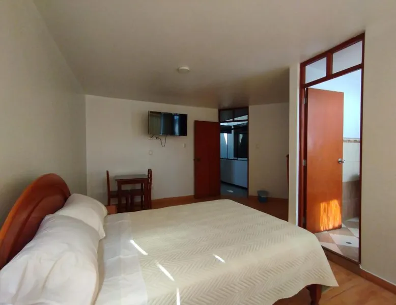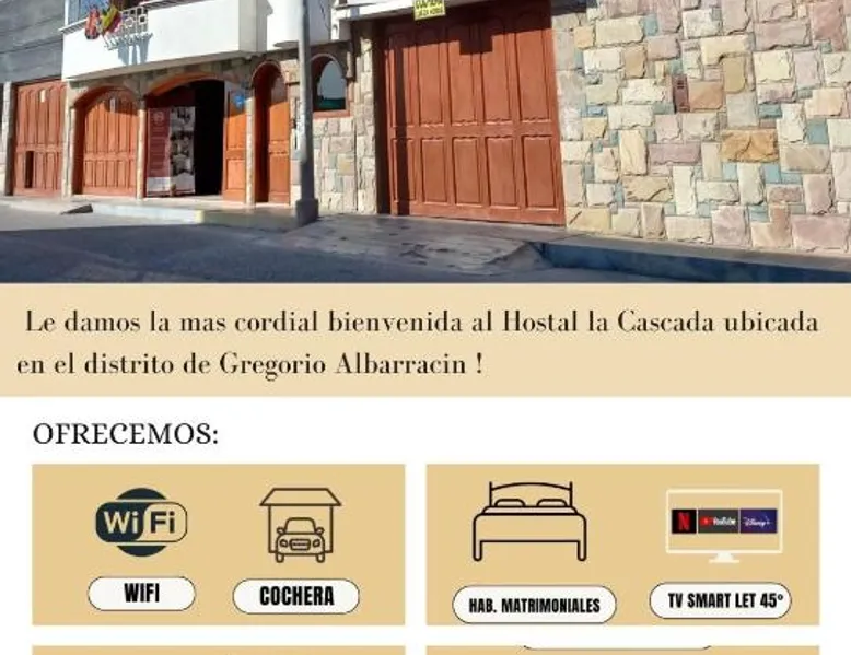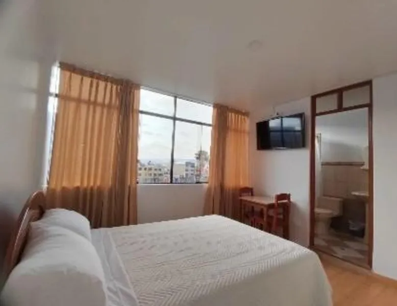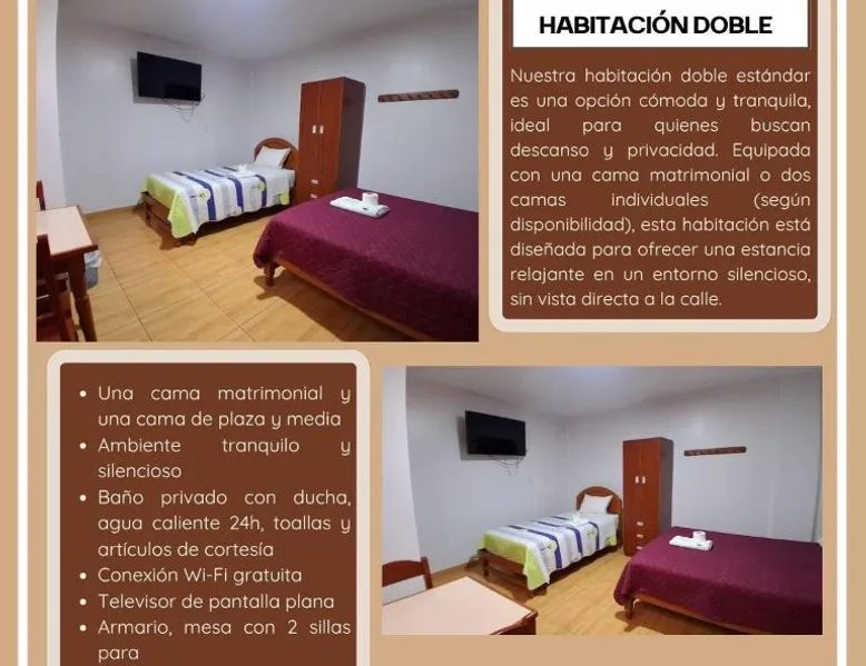 Comfortable Accommodations: Hospedaje La Cascada in Tacna offers family rooms with private bathrooms. Each room includes a work desk, free toiletries, shower, and TV. Balconies provide relaxing outdoor spaces. Essential Facilities: Guests enjoy free WiFi, private check-in and check-out, a lounge, and a 24-hour front desk. Additional amenities include an outdoor seating area, room service, tour desk, and luggage storage. Convenient Location: Located 1.9 mi from Coronel FAP Carlos Ciriani Santa Rosa International Airport, the hotel is 3.7 mi from Jorge Basadre Stadium and 23 mi from Paso Chacalluta. Offering free toiletries, this double room includes a private bathroom with a shower. This double room offers a flat-screen TV. The unit offers 1 bed.