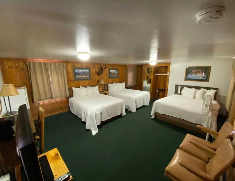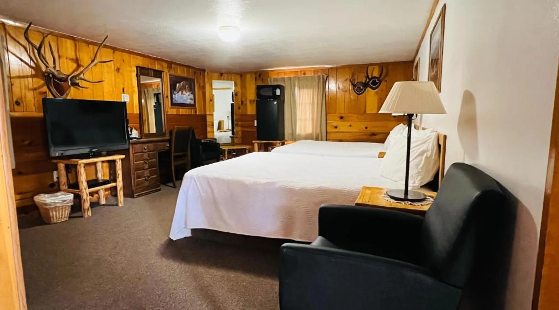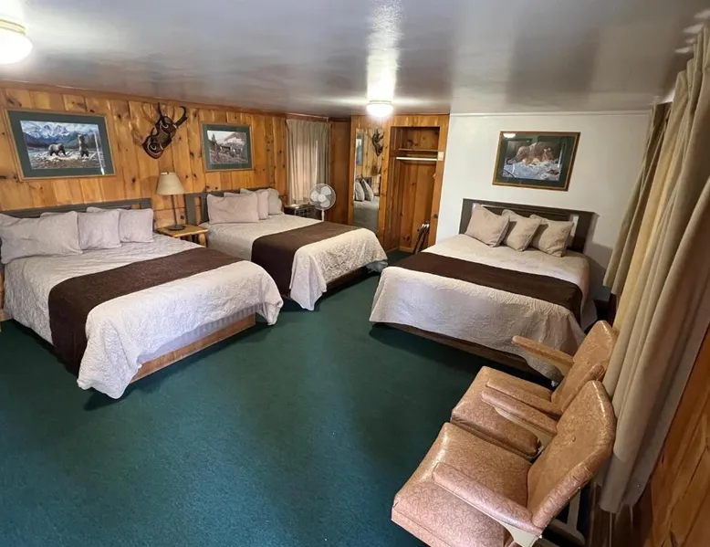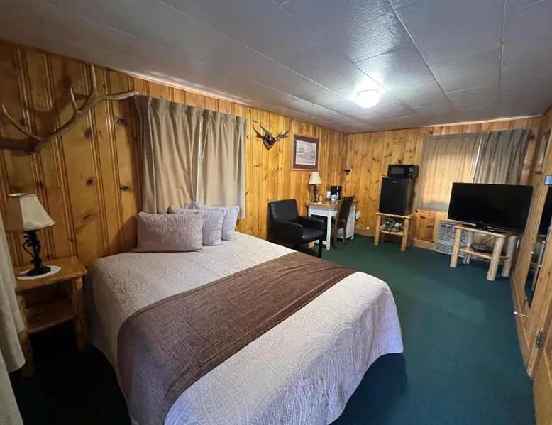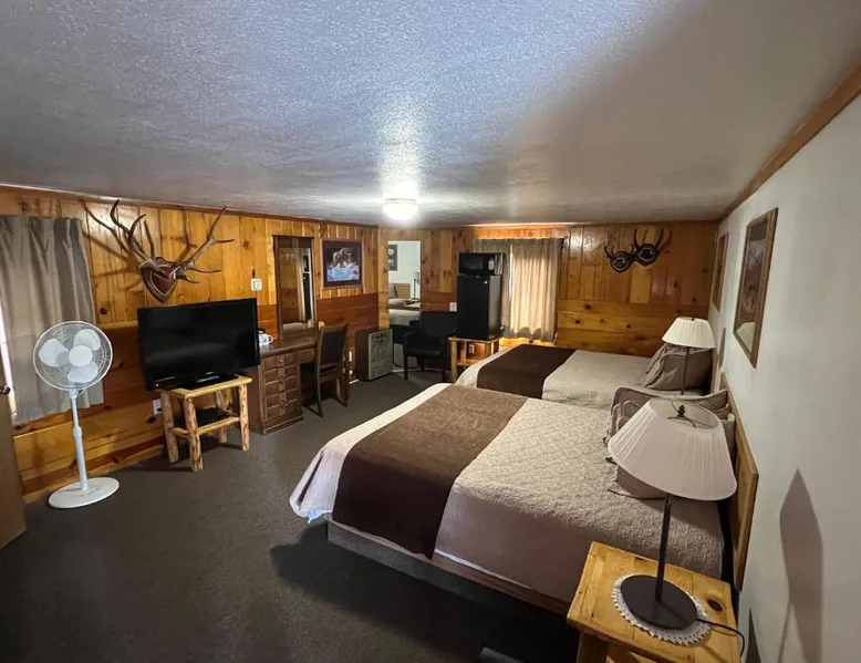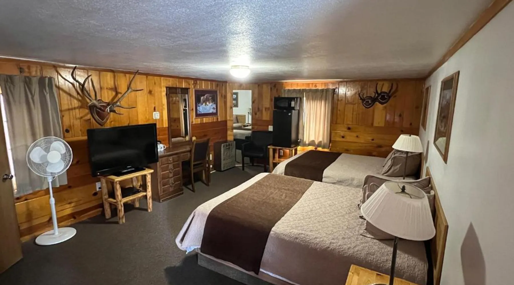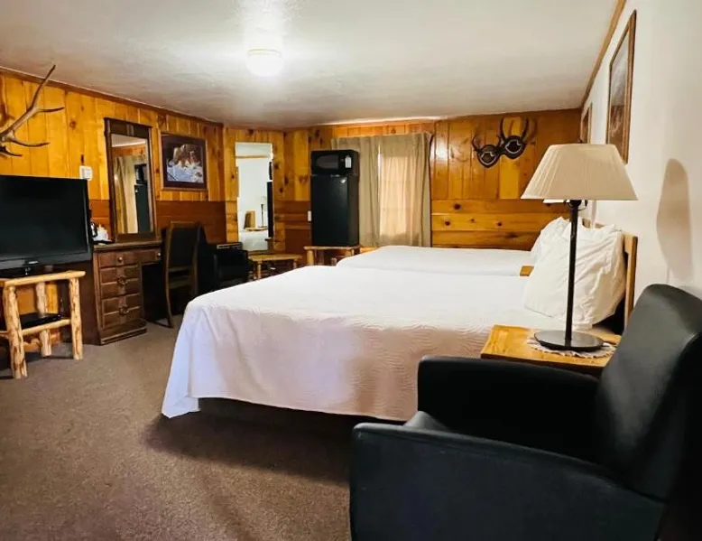 Comfortable Accommodations: Trails End Motel in Dubois offers family rooms with private bathrooms, tea and coffee makers, and free WiFi. Each room includes a refrigerator, microwave, oven, and TV. Convenient Facilities: Guests can enjoy free on-site private parking, room service, and a work desk. Additional amenities include a bath, mountain and river views, and free toiletries. Local Attractions: Central Wyoming Regional Airport is 72 mi away. The property provides easy access to local attractions such as the Dubois Museum and the Wind River Range. Offering free toiletries, this double room includes a private bathroom with a shower and a hairdryer. The double room offers a tea and coffee maker, a safe deposit box, tumble dryer, a carpeted floor and a flat-screen TV. The unit offers 2 beds.