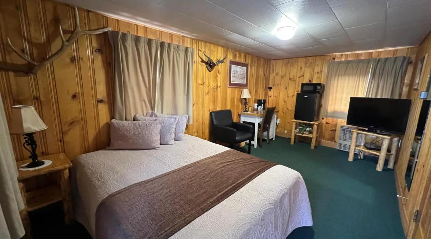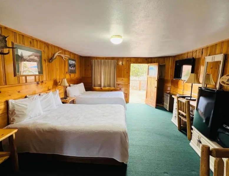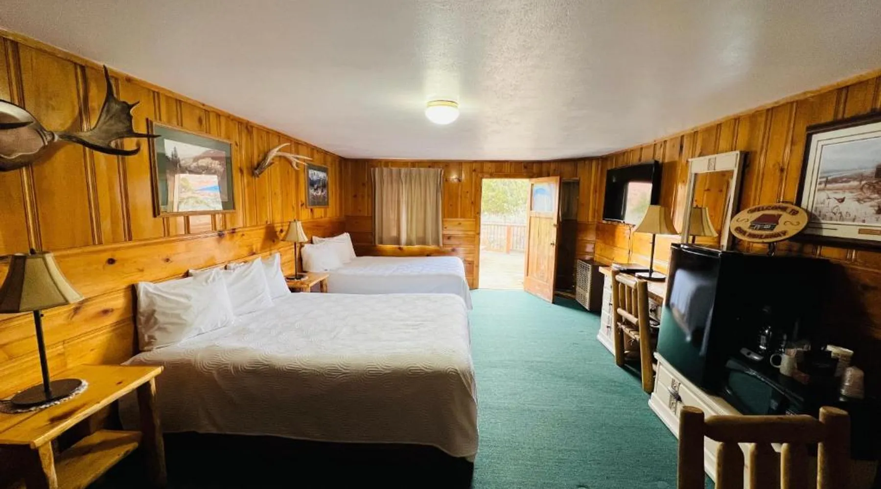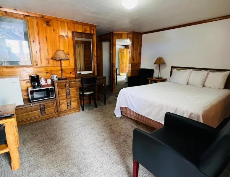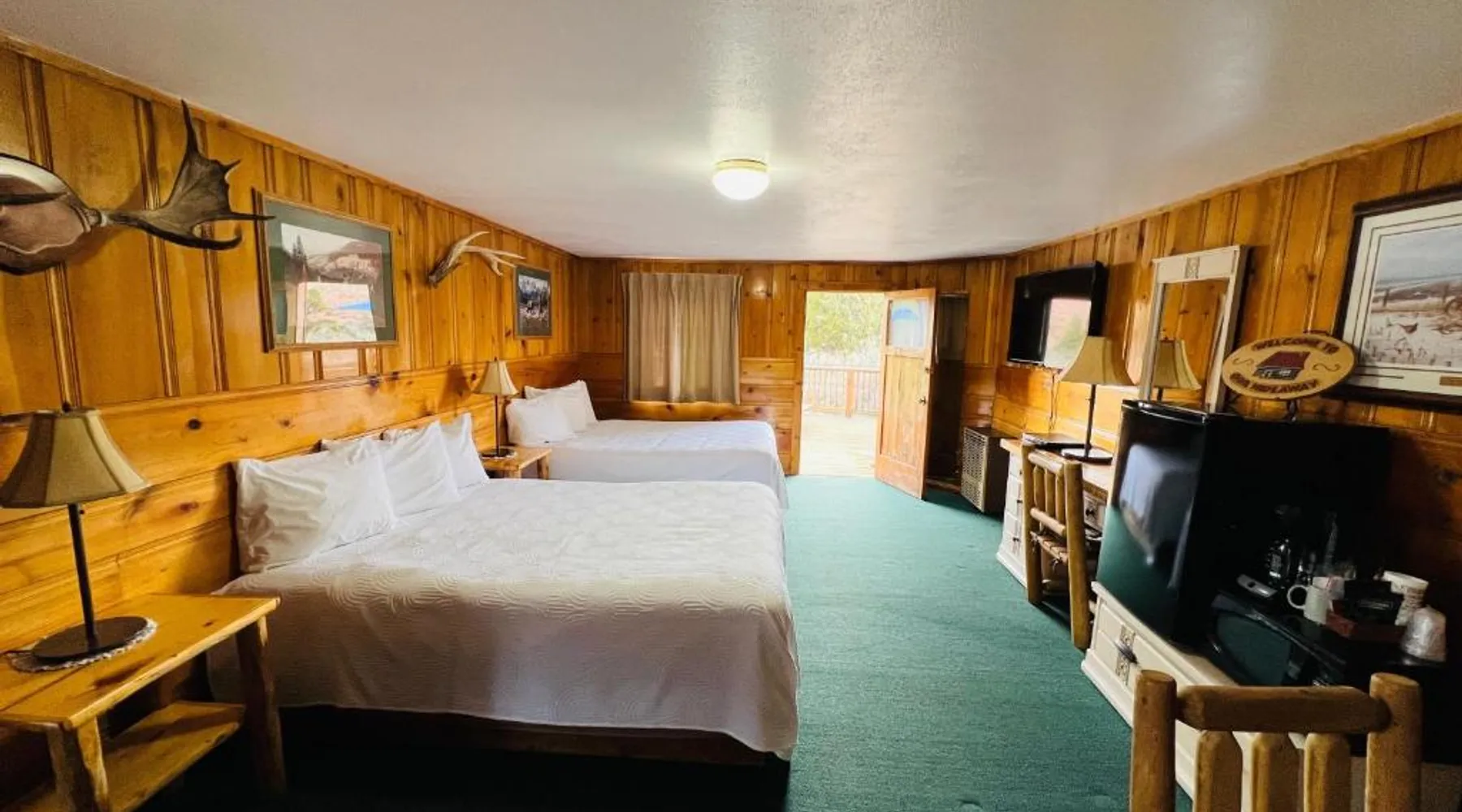 Comfortable Accommodations: Trails End Motel in Dubois offers family rooms with private bathrooms, tea and coffee makers, and free WiFi. Each room includes a refrigerator, microwave, oven, and TV. Convenient Facilities: Guests can enjoy free on-site private parking, room service, and a work desk. Additional amenities include a bath, mountain and river views, and free toiletries. Local Attractions: Central Wyoming Regional Airport is 72 mi away. The property provides easy access to local attractions such as the Dubois Museum and the Wind River Range. Offering free toiletries, this double room includes a private bathroom with a shower and a hairdryer. The double room offers a tea and coffee maker, a safe deposit box, tumble dryer, a carpeted floor and a flat-screen TV. The unit offers 2 beds.