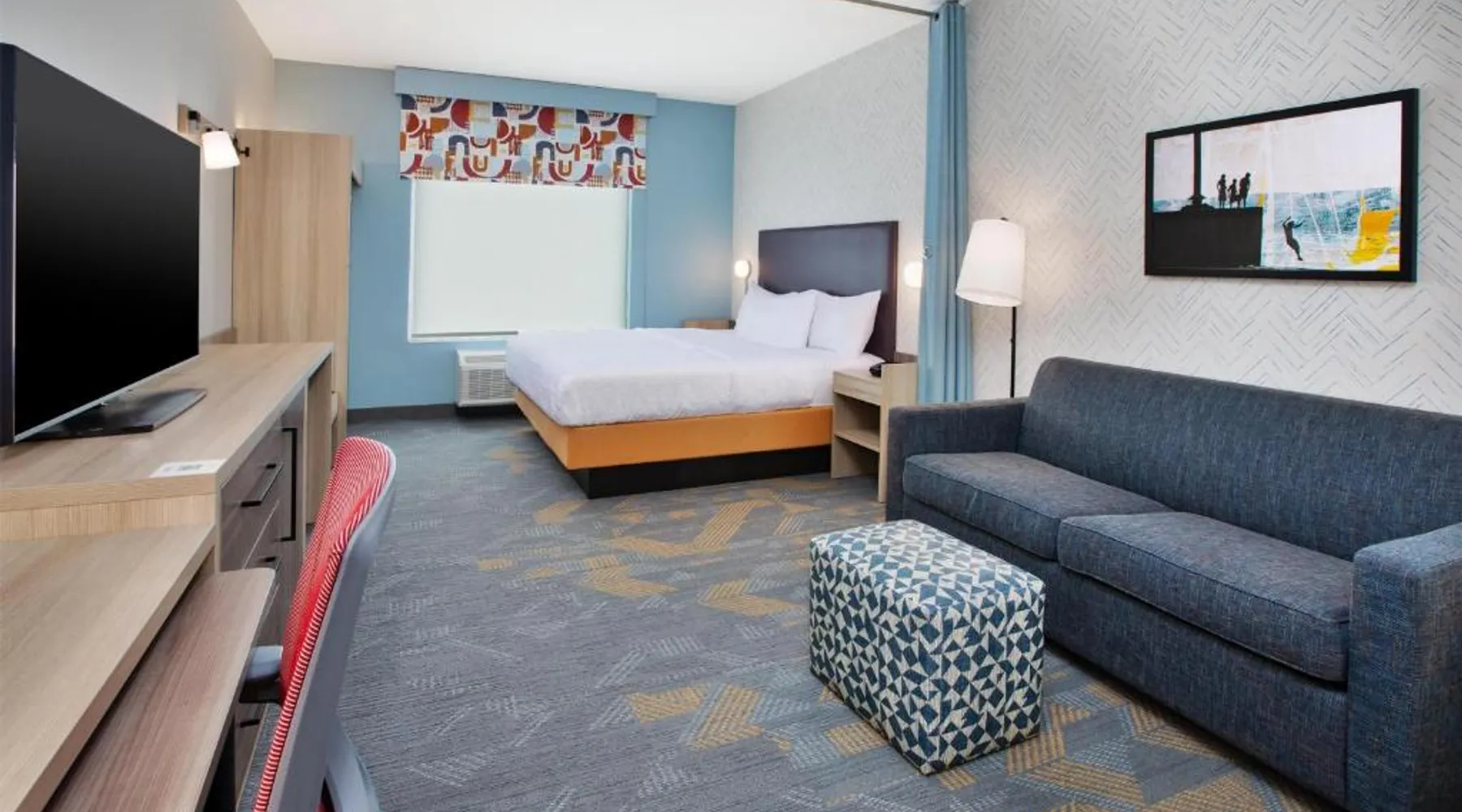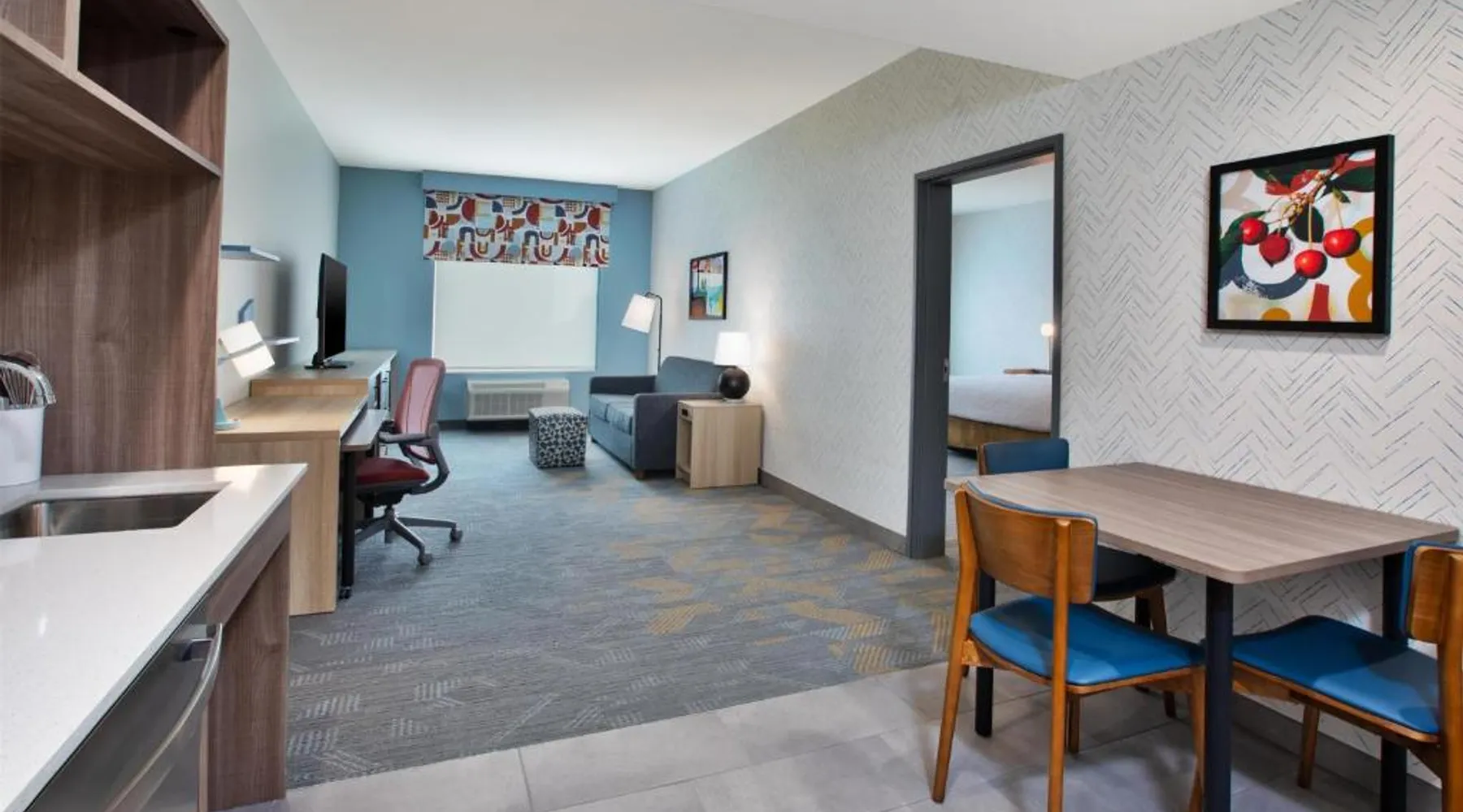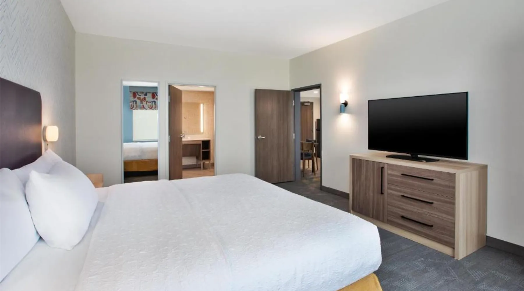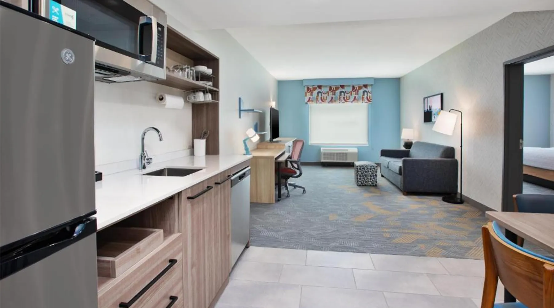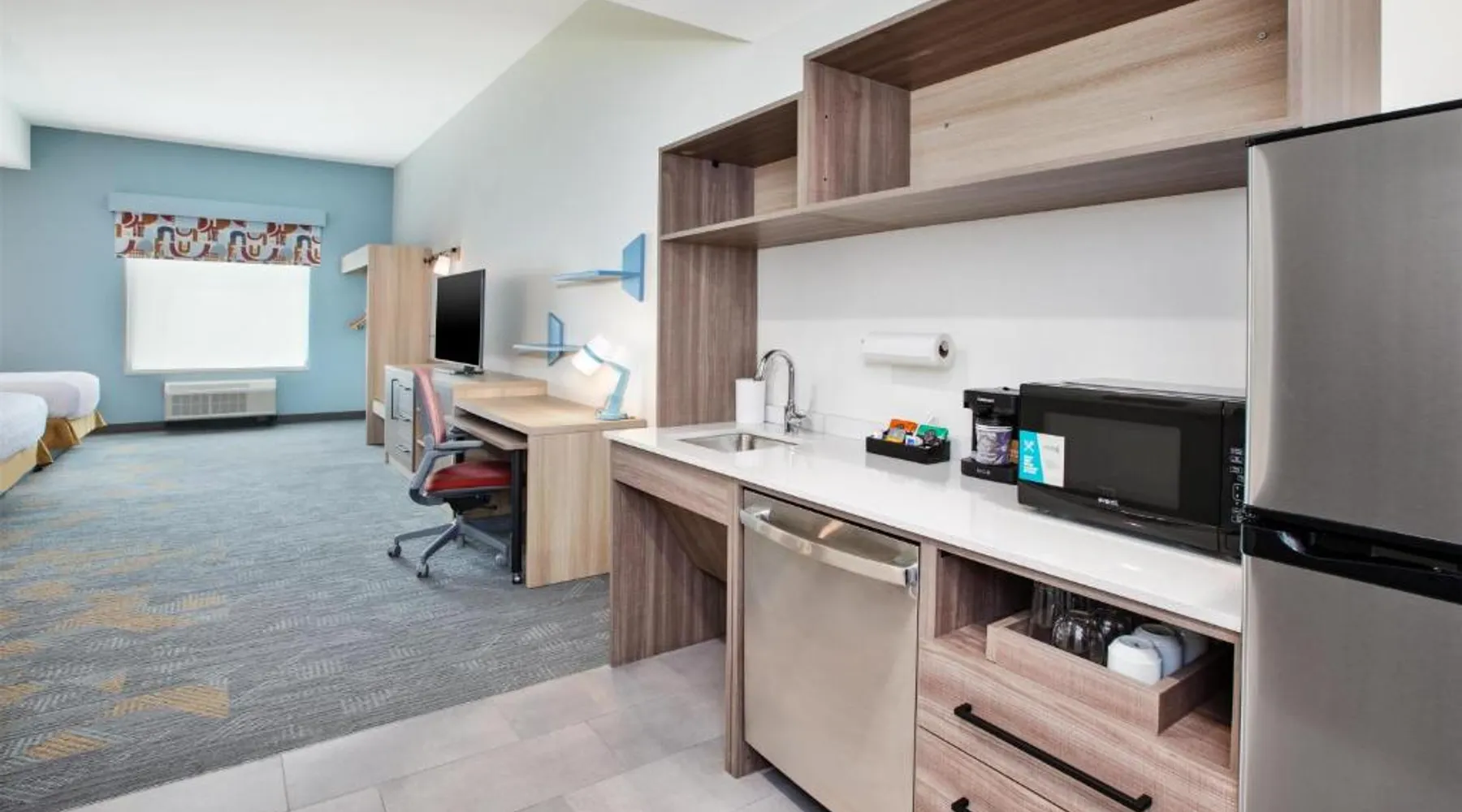Comfortable Accommodations: Home2 Suites By Hilton Traverse City in Traverse City offers comfortable rooms with air-conditioning, kitchenettes, and free toiletries. Each room includes a refrigerator, microwave, and TV, ensuring a pleasant stay. Leisure Facilities: Guests can enjoy an indoor swimming pool, fitness room, and elevator. The hotel provides a 24-hour front desk for added convenience. Convenient Location: Located 3.7 mi from Cherry Capital Airport, the hotel is a 17-minute walk from Great Wolf Lodge Traverse City. Nearby attractions include Dennos Museum Center At Northwestern Michigan College (5.6 mi) and Clinch Park (3.7 mi). In the fully equipped kitchen, guests will find a refrigerator, kitchenware, a microwave and a toaster. This studio has air conditioning, a tea and coffee maker and a TV with cable channels. The unit has 2 beds.