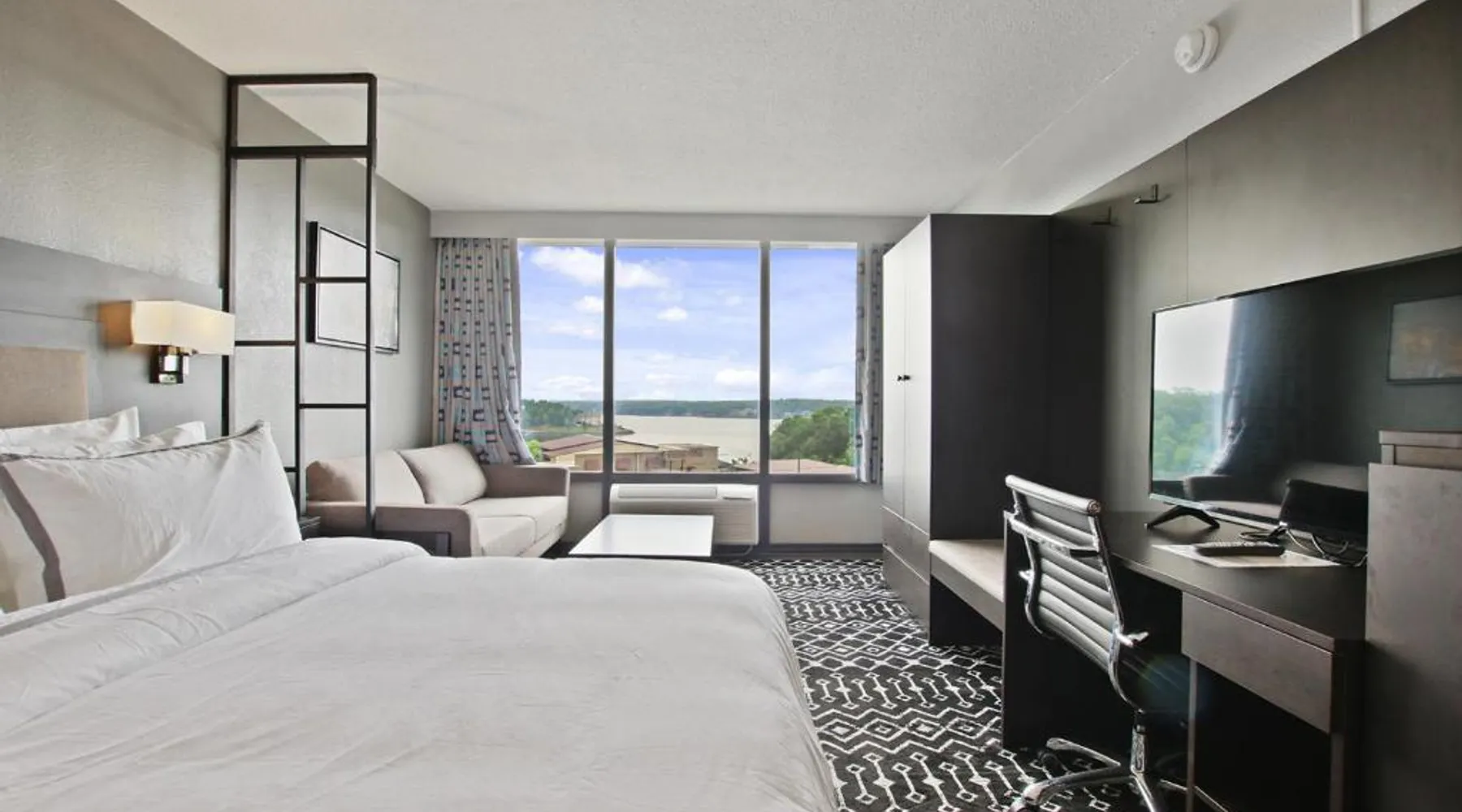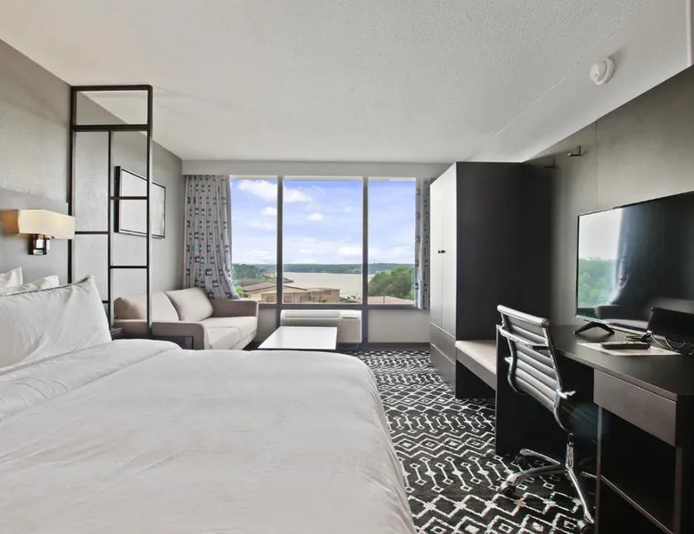 Comfortable Accommodations: The Resort at Lake of the Ozarks in Lake Ozark offers comfortable rooms with air-conditioning, private bathrooms, and modern amenities. Each room includes a bath, shower, TV, and free toiletries. Leisure Facilities: Guests can enjoy a swimming pool with a view, indoor pool, fitness center, sun terrace, and games room. Additional facilities include a lounge, outdoor fireplace, and picnic area. Free WiFi is available throughout the property. Dining Experience: The resort features a traditional and modern restaurant serving American, Mexican, and pizza cuisines. Dining options include lunch, dinner, and cocktails. A bar and coffee shop provide additional dining options. Location and Activities: Located 55 mi from Waynesville-St. Robert Regional Airport, the resort offers fishing, yoga classes, hiking, and cycling. Live music and outdoor seating enhance the guest experience. Offering free toiletries, this single room includes a private bathroom with a bath, a shower and a hairdryer. The single room offers air conditioning, a coffee machine, heating, a flat-screen TV with cable channels, as well as lake views. The unit offers 2 beds.