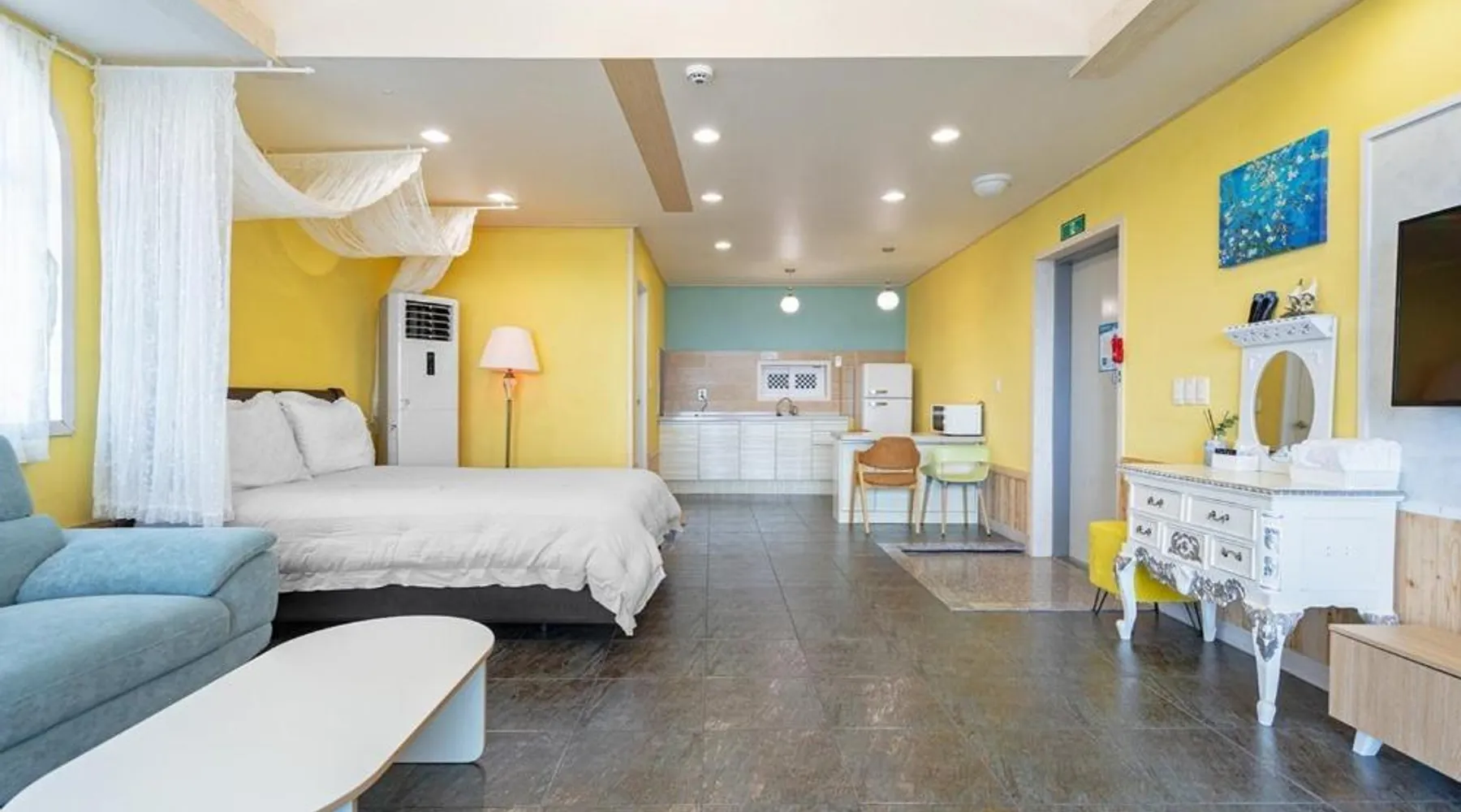 Comfortable Accommodations: Namhae Healing Time Pension in Namhae offers air-conditioned rooms with private bathrooms, free WiFi, and essential amenities including a dining table, refrigerator, and TV. Relaxing Facilities: Guests can enjoy spa facilities, a wellness center, and a hot tub for relaxation. Free on-site private parking is available. Local Attractions: Sachon Beach is a 6-minute walk away, while Gacheon male and female rocks are 3.1 mi distant. Yongmunsa Temple lies 8.7 mi from the property. Sacheon Airport is 36 mi away. Guests will have a special experience as the twin/double room offers a hot tub. The spacious twin/double room provides air conditioning, a mini-bar, as well as a private bathroom featuring a bath and a hairdryer. This twin/double room features an electric kettle, a sofa and a TV.
