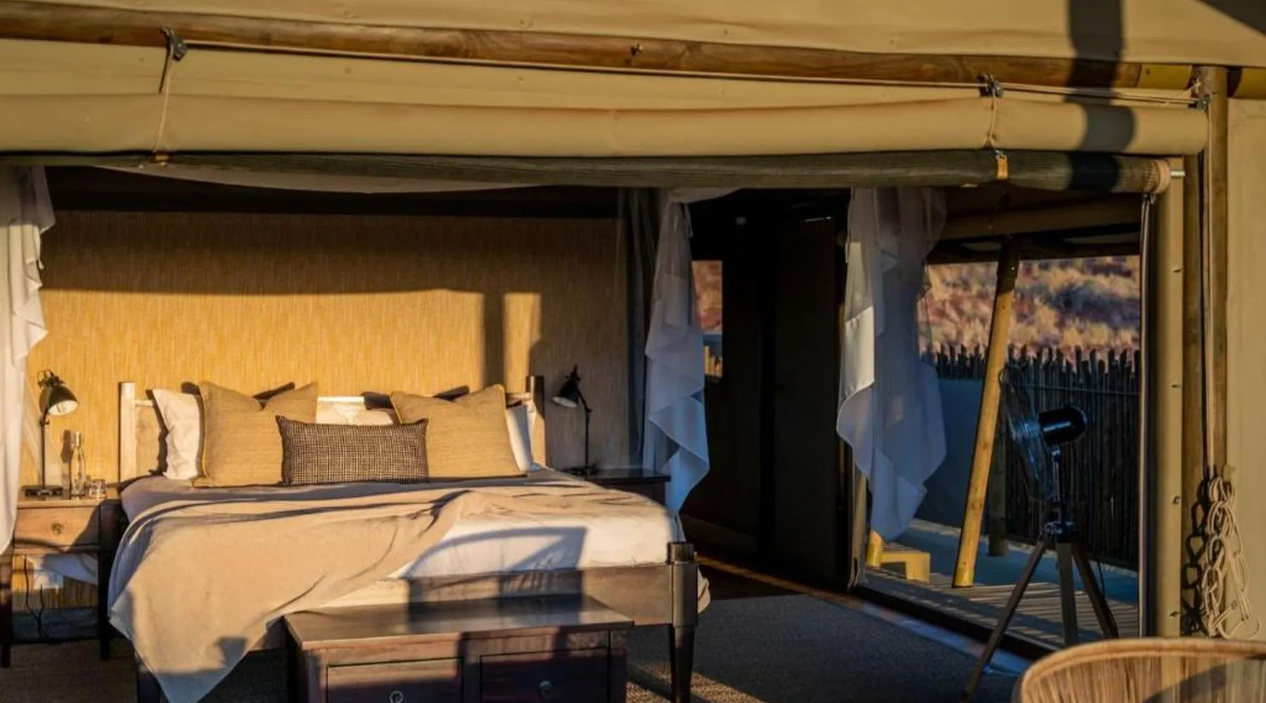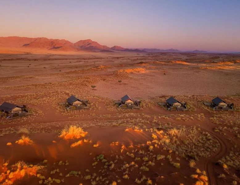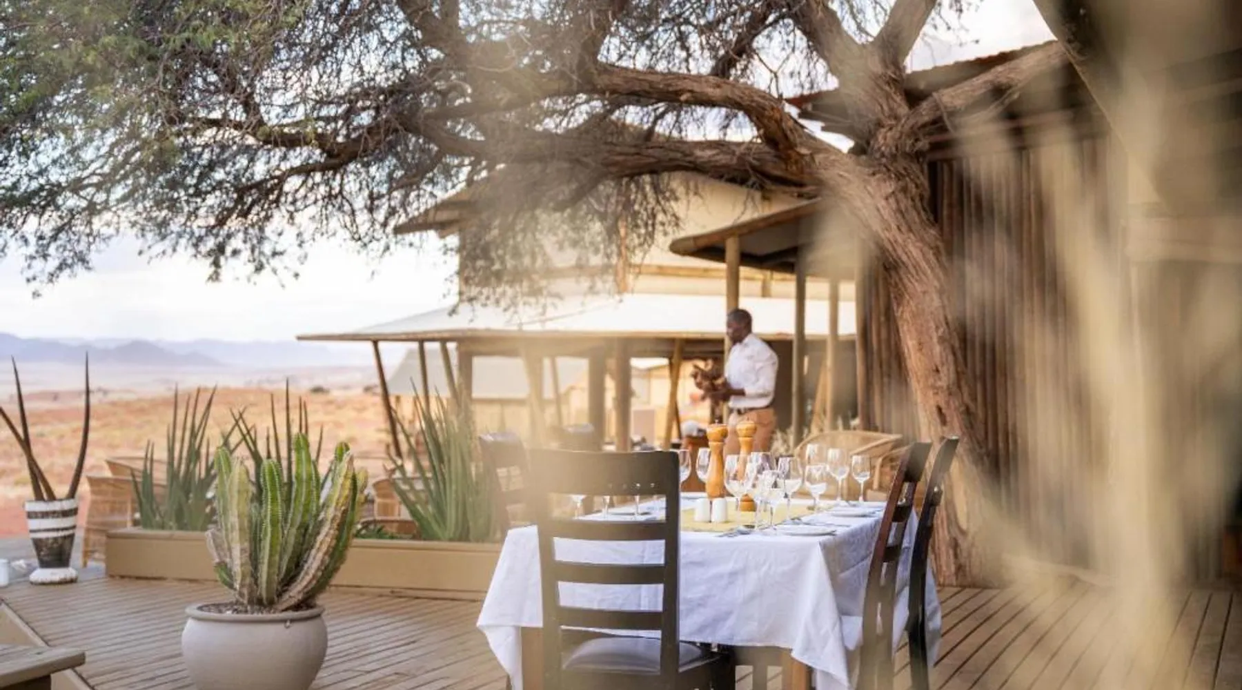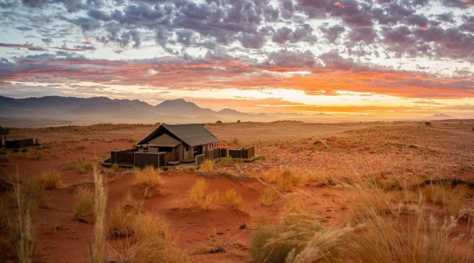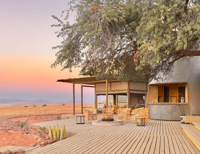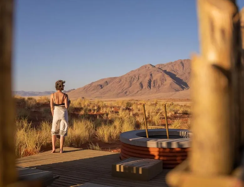Elegant Accommodations: Wolwedans Dune Camp in NamibRand offers a lodge experience with a terrace and free WiFi. Guests can relax in the outdoor dining area or enjoy the pool and mountain views. Comfortable Amenities: The lodge features a terrace, patio, tea and coffee maker, and a work desk. Free toiletries and a shower enhance the stay. Delicious Breakfast: A continental breakfast is served each morning, providing a perfect start to the day. Convenient Location: Located in Namibrand, the lodge is surrounded by stunning landscapes, offering a unique and memorable experience. A seating area, a desk, a terrace and a tea and coffee maker are offered in this tent. The unit has 2 beds.