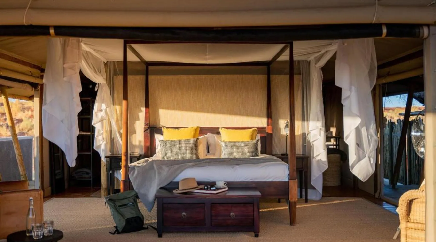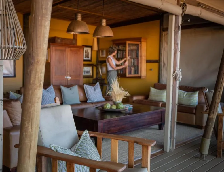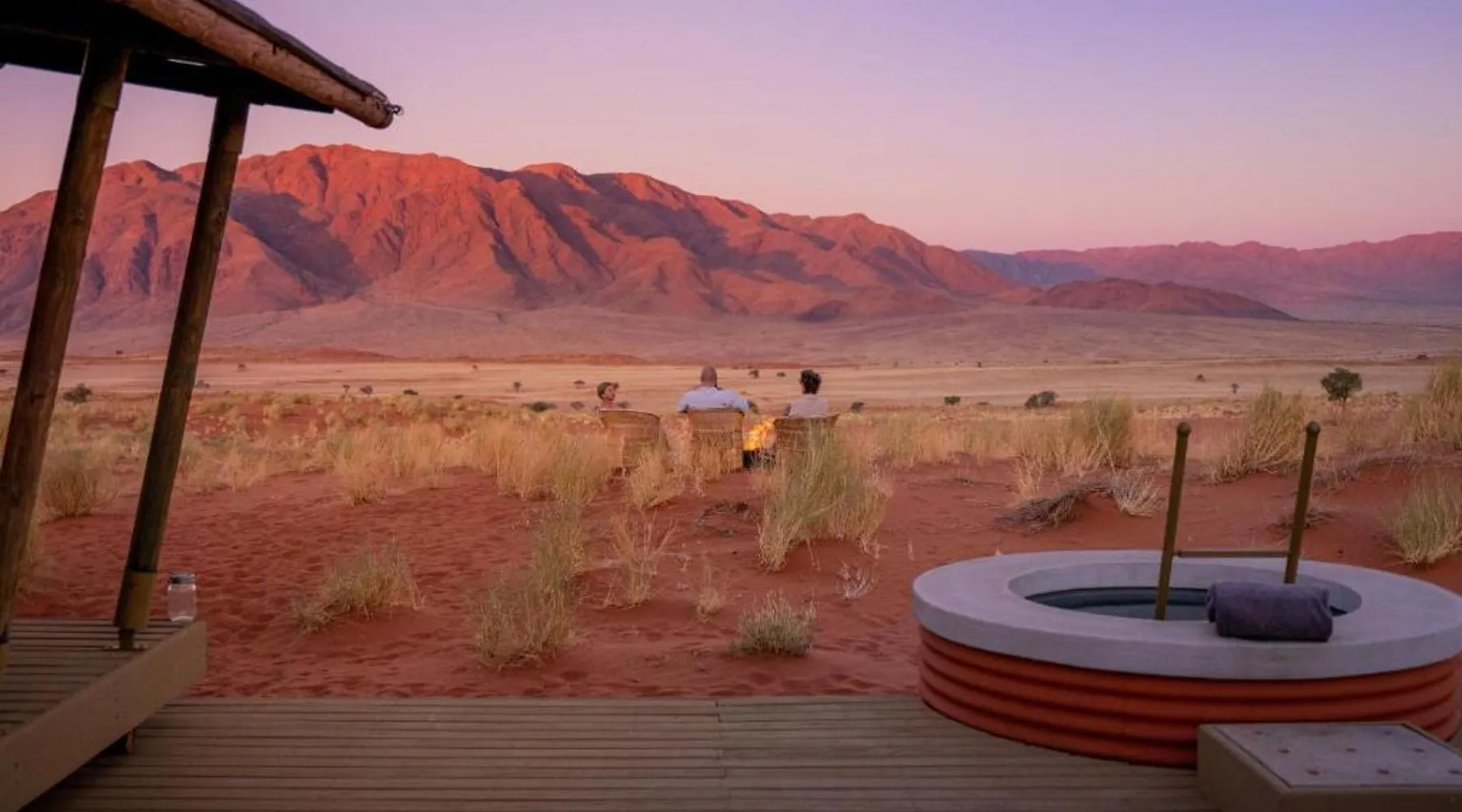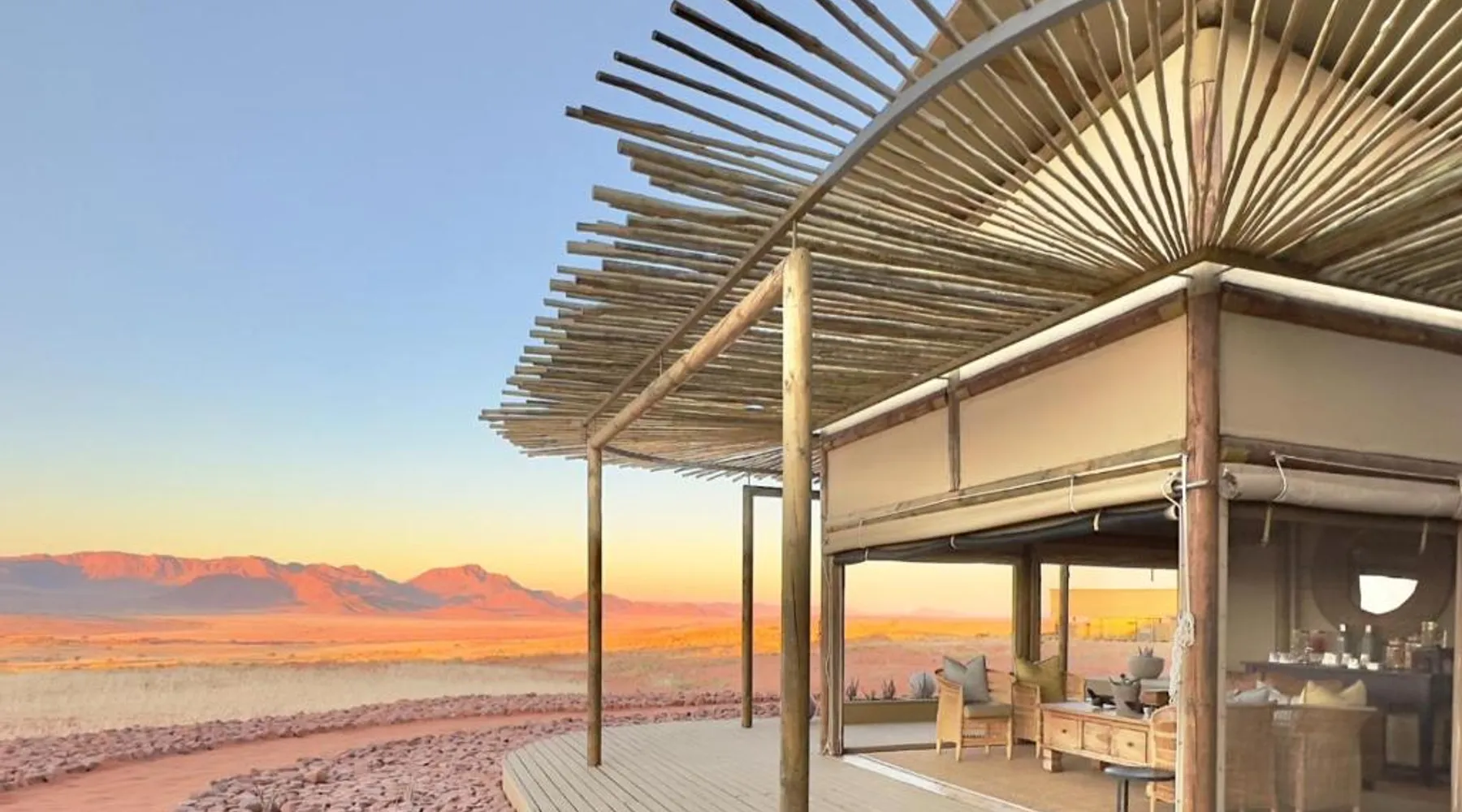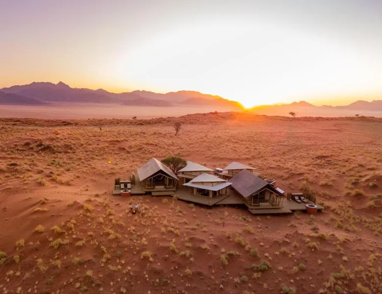 Elegant Accommodations: Wolwedans Dune Camp in NamibRand offers a lodge experience with a terrace and free WiFi. Guests can relax in the outdoor dining area or enjoy the pool and mountain views. Comfortable Amenities: The lodge features a terrace, patio, tea and coffee maker, and a work desk. Free toiletries and a shower enhance the stay. Delicious Breakfast: A continental breakfast is served each morning, providing a perfect start to the day. Convenient Location: Located in Namibrand, the lodge is surrounded by stunning landscapes, offering a unique and memorable experience. A seating area, a desk, a terrace and a tea and coffee maker are offered in this tent. The unit has 2 beds.