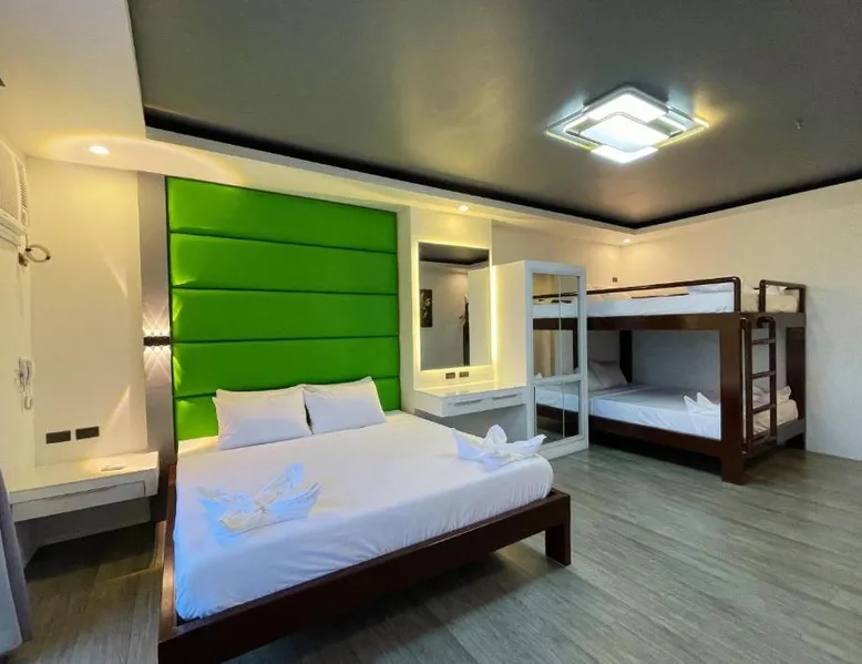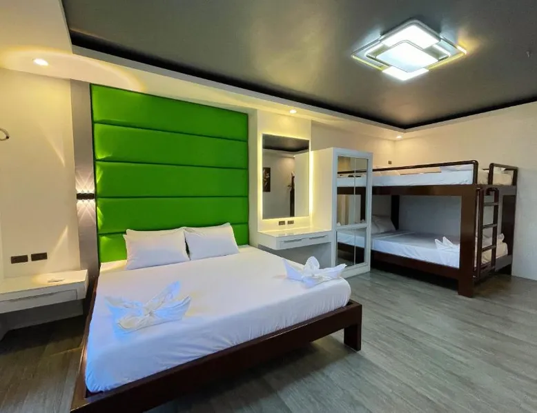 Comfortable Accommodations: Dream'Star Resort Puerto Galera powered by Cocotel in Puerto Galera offers family rooms with air-conditioning, private bathrooms, and balconies with pool or mountain views. Each room includes a work desk, free toiletries, and a shower. Exceptional Facilities: Guests enjoy a year-round outdoor swimming pool, restaurant serving local cuisine, and free WiFi. Additional amenities include a shuttle service, 24-hour front desk, and free on-site private parking. Dining Experience: An à la carte breakfast featuring local specialties is available each morning. Room service enhances the comfort of each stay. Prime Location: Located 82 mi from Ninoy Aquino International Airport, the hotel is a 5-minute walk from White Beach and less than 0.6 mi from Bayanan Beach. Aninuan Beach is a 15-minute walk away. This air-conditioned family room has a desk, a balcony, pool views and a private bathroom. The unit has 2 beds.