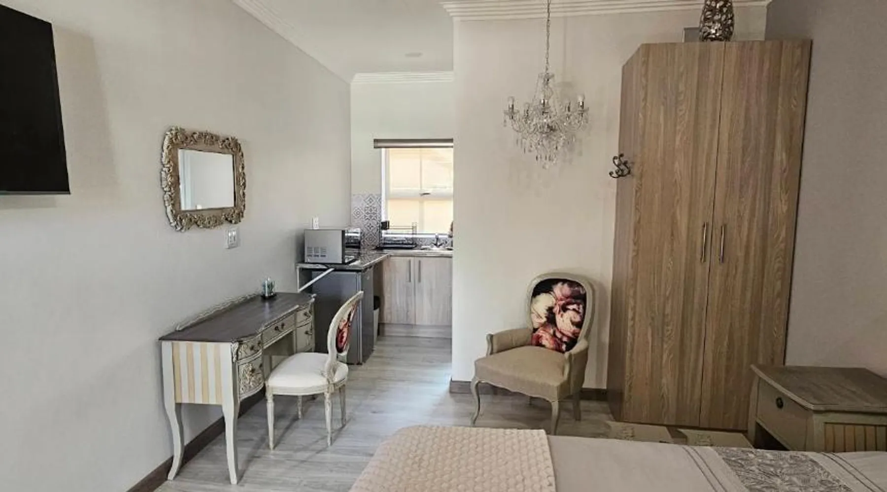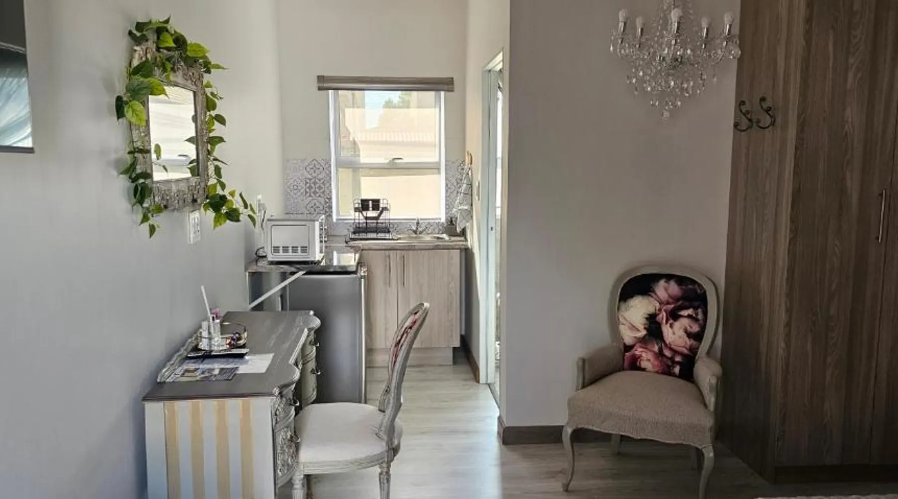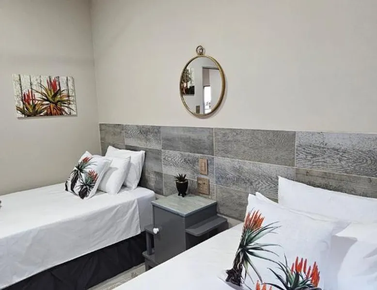 Comfortable Accommodations: Grazia Overnight accommodations in Harrismith offers recently renovated bed and breakfast rooms with private bathrooms. Guests enjoy free WiFi, air-conditioning, and mountain views. Convenient Facilities: The property provides free on-site private parking, private check-in and check-out services, and full-day security. Additional amenities include streaming services, a work desk, and a dining area. Local Attractions: Harrismith Golf Course is an 18-minute walk away, while Sterkfontein Dam Nature Reserve lies 27 mi from the property. Other nearby attractions include Kestell Golf Club and Kaalvoet Vrou Statue. Guest Satisfaction: Highly rated for room cleanliness, comfort, and attentive host. Offering free toiletries, this double room includes a private bathroom with a shower and a hairdryer. The well-equipped kitchenette features a refrigerator, kitchenware, a microwave and an electric kettle. The air-conditioned double room offers a flat-screen TV with streaming services, a private entrance, a seating area, a wardrobe as well as an inner courtyard view. The unit offers 1 bed.
