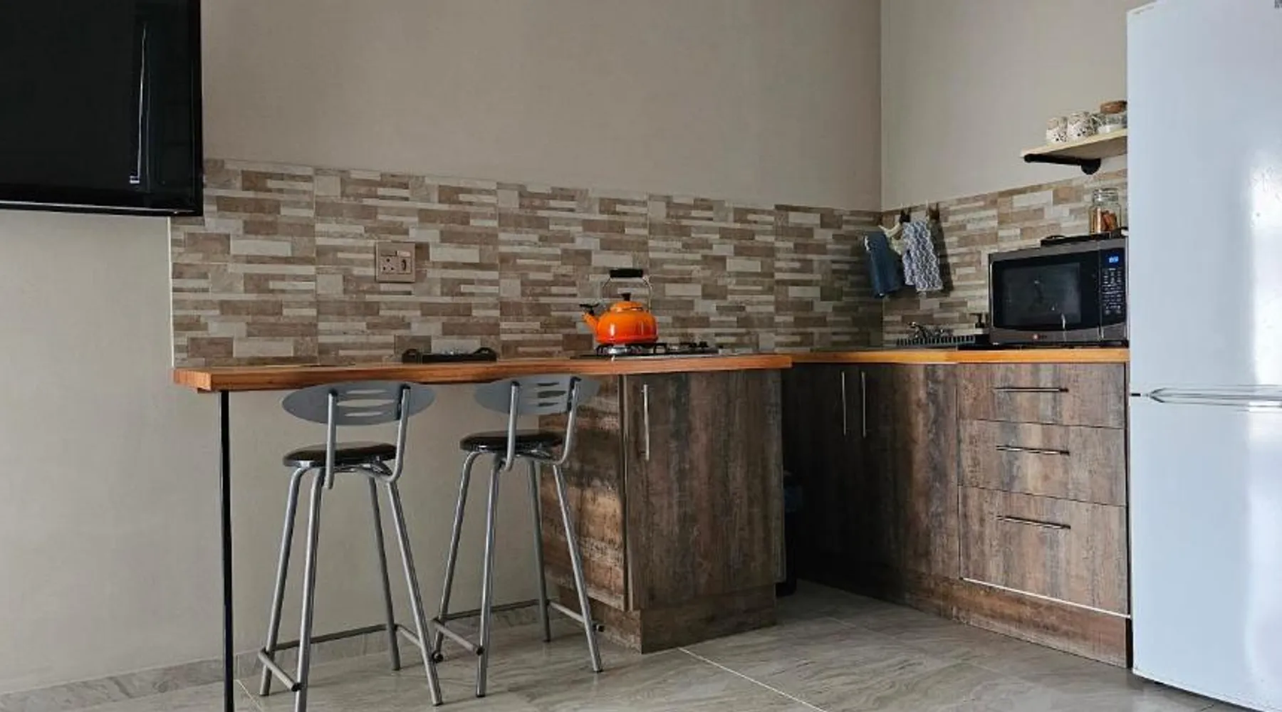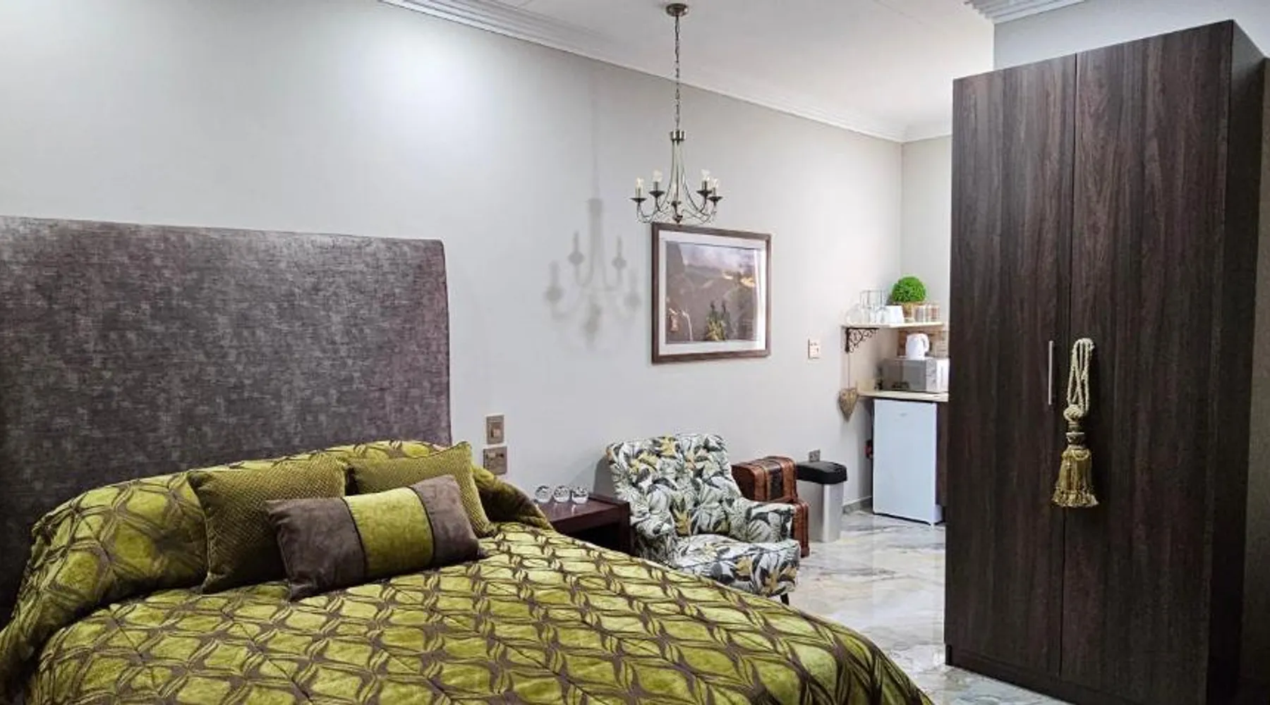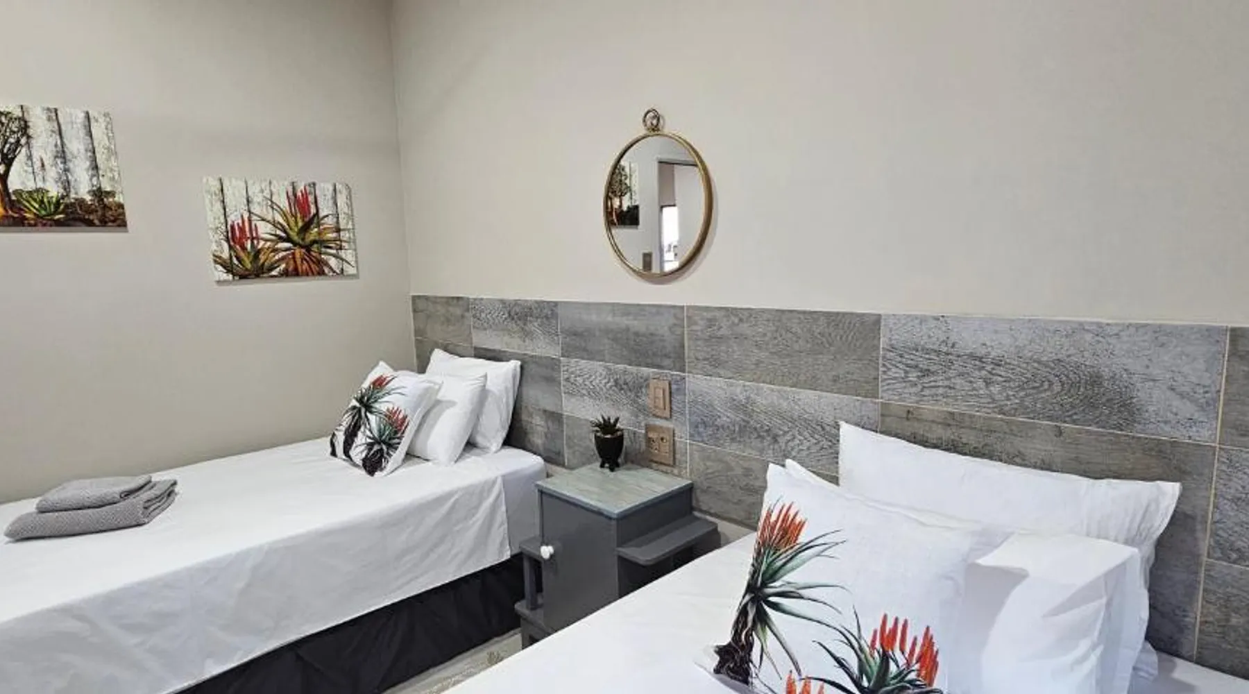 Comfortable Accommodations: Grazia Overnight accommodations in Harrismith offers recently renovated bed and breakfast rooms with private bathrooms. Guests enjoy free WiFi, air-conditioning, and mountain views. Convenient Facilities: The property provides free on-site private parking, private check-in and check-out services, and full-day security. Additional amenities include streaming services, a work desk, and a dining area. Local Attractions: Harrismith Golf Course is an 18-minute walk away, while Sterkfontein Dam Nature Reserve lies 27 mi from the property. Other nearby attractions include Kestell Golf Club and Kaalvoet Vrou Statue. Guest Satisfaction: Highly rated for room cleanliness, comfort, and attentive host. Offering free toiletries, this double room includes a private bathroom with a shower and a hairdryer. The well-equipped kitchenette features a refrigerator, kitchenware, a microwave and an electric kettle. The air-conditioned double room offers a flat-screen TV with streaming services, a private entrance, a seating area, a wardrobe as well as an inner courtyard view. The unit offers 1 bed.