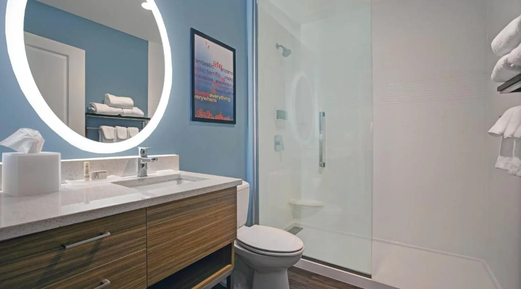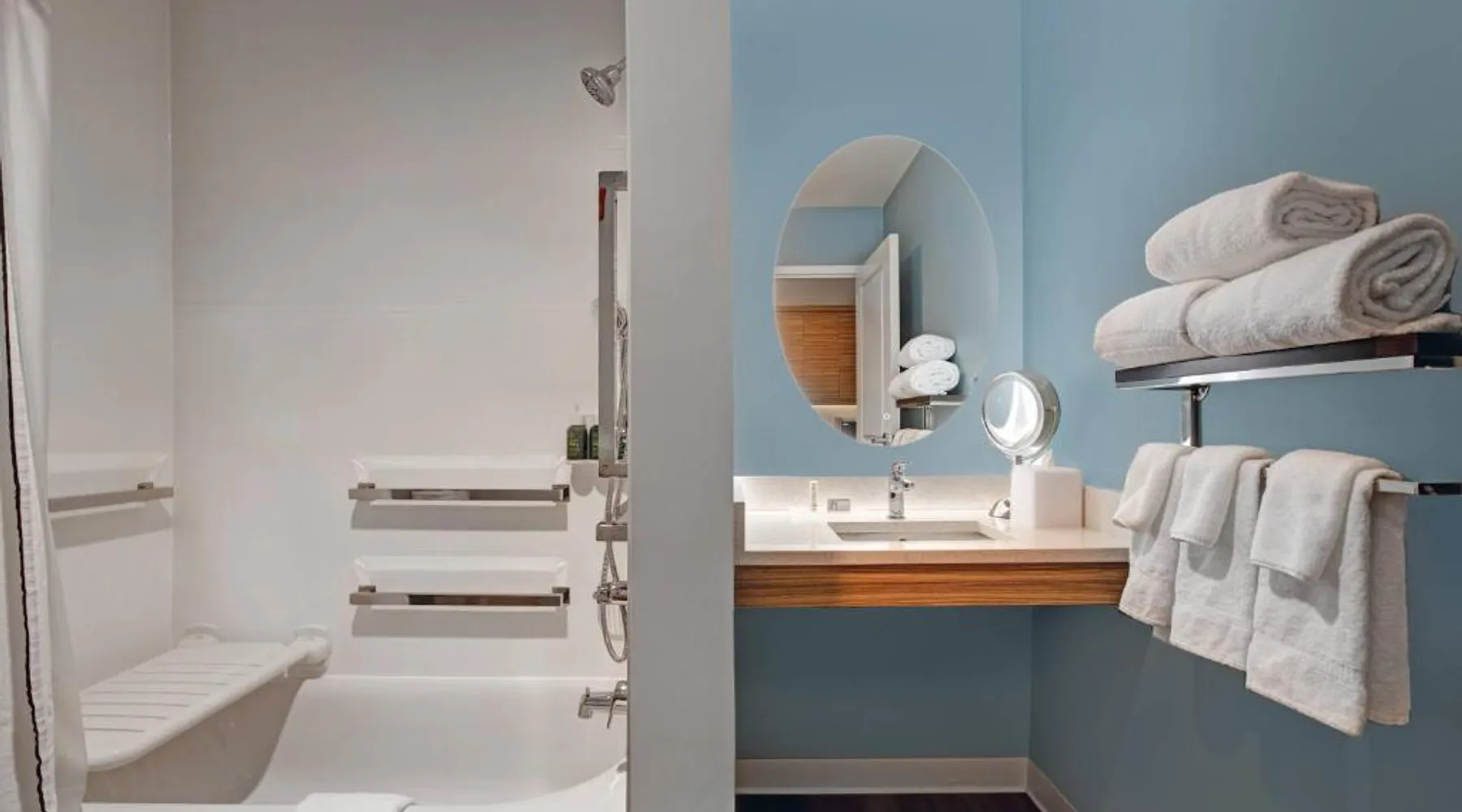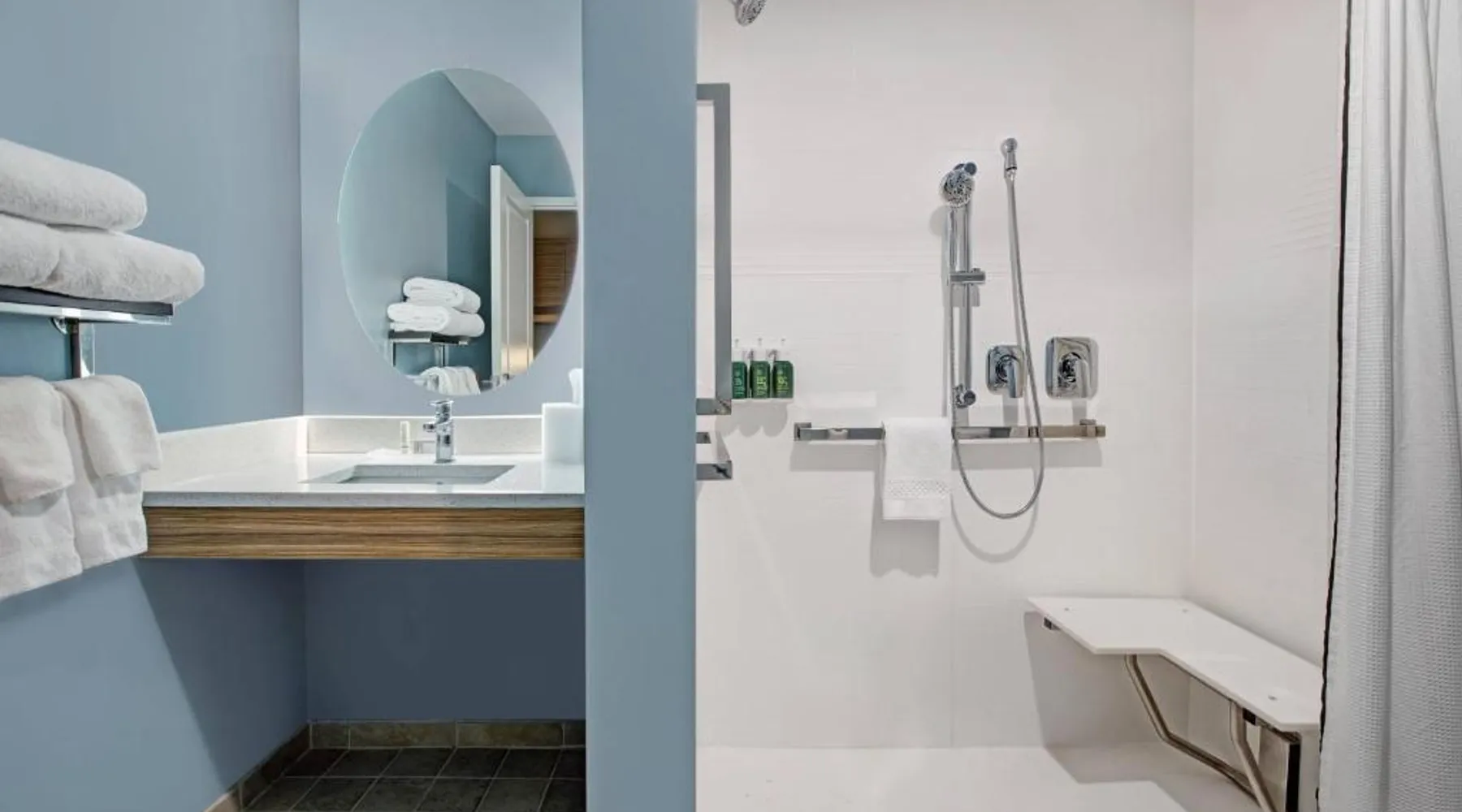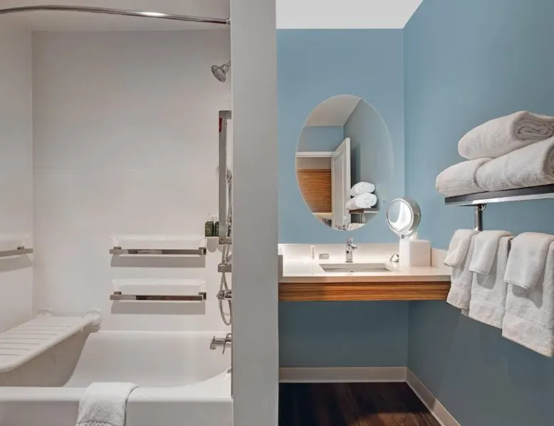 Comfortable Accommodations: TownePlace Suites by Marriott Potomac Mills Woodbridge in Woodbridge offers family rooms with air-conditioning, private bathrooms, and fully equipped kitchens. Each room includes a work desk, sofa bed, and free WiFi. Exceptional Facilities: Guests can enjoy a fitness center, indoor swimming pool, terrace, and free bicycles. Additional amenities include a lounge, minimarket, and business area. Delicious Breakfast: A continental buffet breakfast is served daily, featuring warm dishes, fresh pastries, fruits, and juices. Convenient Location: Located 24 mi from Ronald Reagan Washington National Airport, the hotel is near attractions such as Huntley Meadows Park (17 mi) and Old Town Waterfront (22 mi). The unit has 2 beds.