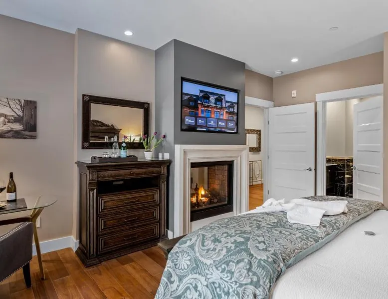 Comfortable Accommodations: Rockport Harbor Hotel in Rockport offers family rooms with sea or city views, balconies, and modern amenities including air-conditioning, free WiFi, and private bathrooms. Dining and Leisure: The romantic restaurant serves American cuisine with vegetarian and gluten-free options. Guests can also enjoy the bar and outdoor seating area. Additional facilities include a fitness room, yoga classes, hiking, cycling, and paid on-site private parking. Prime Location: Located 9.3 mi from Knox County Regional Airport and 1.2 mi from Mount Battie, the hotel is near attractions such as Farnsworth Art Museum and Camden Harbor Park. Guests appreciate the convenient location, room cleanliness, and scenic views. Guests will have a special experience as this family room provides a spa bath and a fireplace. Guests can make meals in the kitchenette that comes with a refrigerator, a dishwasher, kitchenware and a microwave. The spacious family room offers air conditioning, a tea and coffee maker, a balcony with city views as well as a private bathroom featuring a walk-in shower. The unit offers 2 beds.