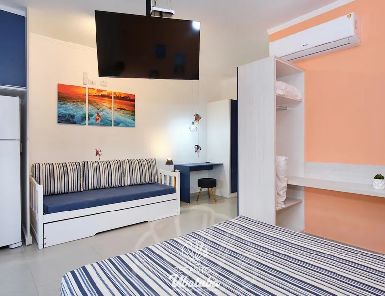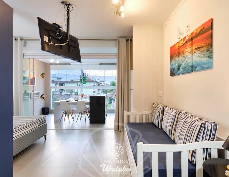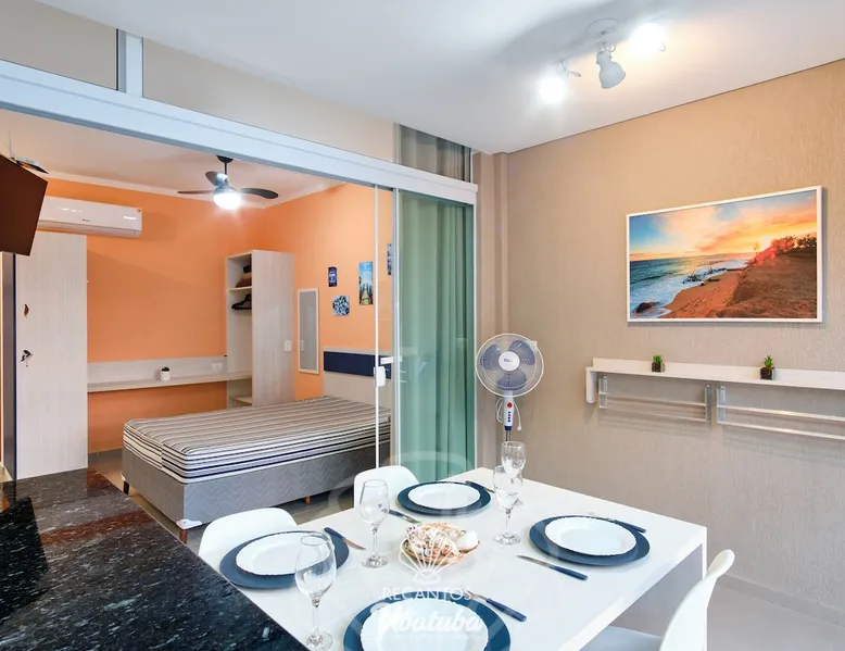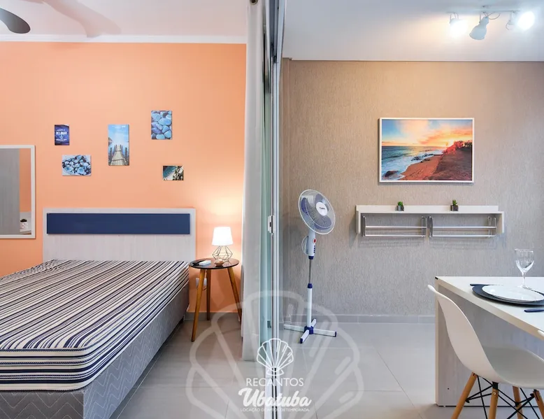 Just 600 meters from the ITAGUÁ waterfront, a perfect space to accommodate up to 4 guests, it has a barbecue and full kitchen on the gourmet balcony, air-conditioning, 43" swivel TV, work table and Wi-Fi (fiber), bathroom, and 1 covered and independent parking space. In the common area, the shared pool is located on the roof and has a beautiful view of the sea. With a privileged location, easy access to the highway to the southern and northern beaches (2 km from Praia Grande). The space All the decoration was prepared for the comfort of the guests, in a newly built building (September 2020). Comfortable double bed and a bunk bed with 2 single mattresses, bathroom with a good shower, hairdryer, iron, microfiber pillows and blankets for 4 guests (who must bring their own bedding, towels and personal hygiene items). The bedroom has air-conditioning and a ceiling fan, and a fan is also available on the gourmet balcony. With high-speed Wi-Fi (Fiber Optic), the space can also be used for work or studies, as it has a dedicated notebook table, and a Nespresso coffee maker (for you to use your favorite capsules)! Studio has a 43" smart TV, connected to Wi-Fi, with a swivel ceiling mount (for viewing from both the bed/bedroom and the gourmet balcony). The full kitchen is equipped with the main APPLIANCES (gas stove and oven, microwave, refrigerator, blender, sandwich maker, etc.) and UTENSILS (plates, cutlery, pots, baking sheets, pressure cooker, glasses, tulips, wine glasses, etc.). Guest access After your reservation, information (car and companion data) will be requested for authorization to access the condominium. In the week of your trip, instructions will be provided for SELF check-in (pedestrian gate with password, and on-site key pickup from a safe and electronic garage access control). Shared rooftop pool, overlooking Itagua's shoreline. Parking space for 1 small or medium-sized car (large vehicles such as vans do not fit) Other things to note CAUTION: * Bring your towels and bed linens (1 standard double 1.38 m wide and 20 cm high, and 2 single mattresses 88 cm wide and 14 cm high) ** We do NOT provide consumables, such as food, beverages, toiletries and cleaning products (such as toilet paper and detergent); *** The apartment's electrical outlets are 110 V. . If you need sheets and towels, we have partner companies in the city that we can request a quote from and forward to you. You'll need to provide 3 days' notice. . 1 parking space for small or medium car (maximum 5x2.3 m - within the limit marked on the floor) . Use of the pool requires compliance with the rules of the condominium (must be in appropriate swimwear, no food and drinks allowed, etc.), access by stairs. . Any requests for CHANGES to the dates of the stay will be considered IF MADE AT LEAST 30 days BEFORE the check-in date. . ꙭ Your pet (small or medium size) will be welcome, as long as previously communicated and under the analysis and prior authorization of the host. There will be an extra fee of R$ 150 in case of approval. The pet will not be able to attend the common areas of the building, and must access the property on the tutor's lap and with the use of a guide. Pets are expressly PROHIBITED on the beds and sofa, under penalty of payment of an extra fee for washing the covers. (If not communicated in advance, the penalty will be double the amount and a request for immediate withdrawal from the property). . Also visit the other spaces we rent: 》in the Center, in front of Prainha do Matarazzo (for up to 5 guests, with spectacular sea views, a large balcony and swimming pool), or 》in Itaguá (for up to 5 guests, 1 BEDROOM with air-conditioning, barbecue area on the balcony, game room and swimming pool), or ☆ see listings on the host's profile, or on our social media profile recantosubatuba