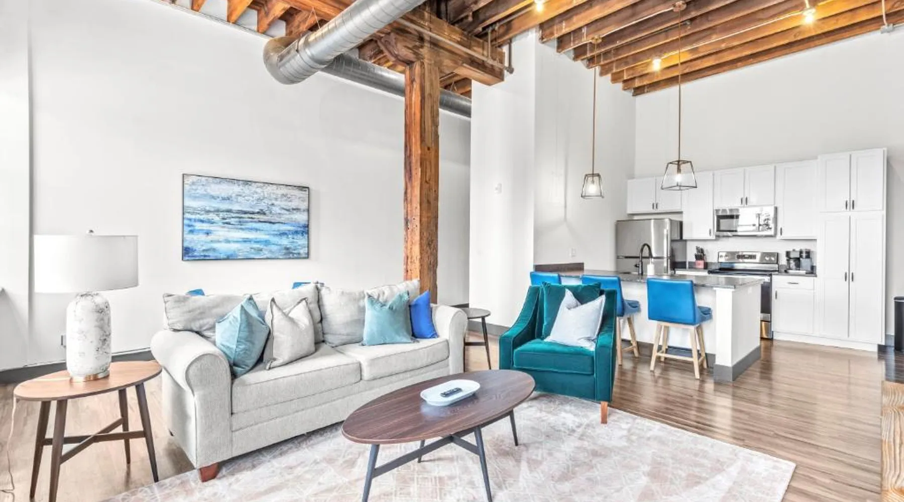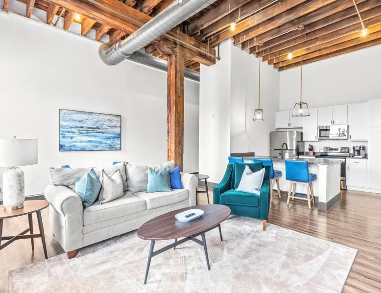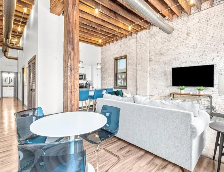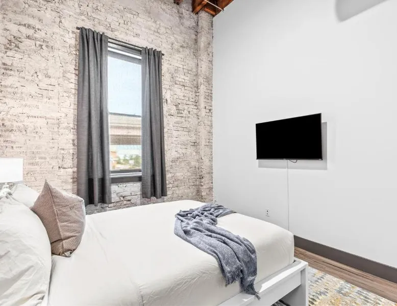 Spacious Accommodations: The Large Riverfront Loft in St. Louis offers a spacious apartment with two bedrooms and a bathroom. Guests enjoy river views, a dining area, and a fully equipped kitchen with modern appliances. Modern Amenities: The property features a fitness center, free WiFi, air-conditioning, and a washing machine. Additional amenities include a work desk, dishwasher, microwave, and parquet floors. Prime Location: Located in the city center, the apartment is a 12-minute walk from the Gateway Arch and close to Laclede's Landing. St. Louis Lambert International Airport is 14 mi away. Highly rated by guests. The spacious apartment features 2 bedrooms and 1 bathroom with a bath and free toiletries. Meals can be prepared in the well-fitted kitchen, which comes with a stovetop, a refrigerator, a dishwasher and kitchenware. The air-conditioned apartment provides a flat-screen TV, a washing machine, a coffee machine, a dining area as well as river views. The unit offers 2 beds.