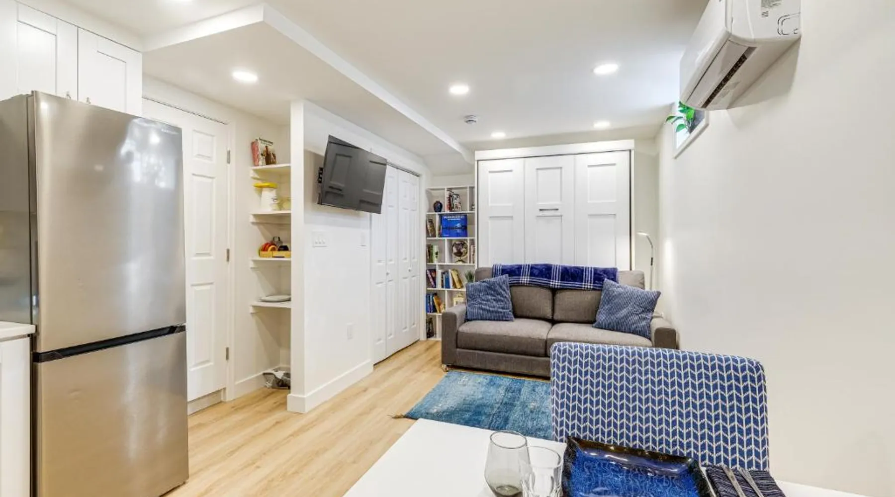 Comfortable Living Space: 7 Mi to National Mall Bright DC Studio! in Washington offers a spacious apartment with free WiFi, air-conditioning, and a private bathroom. The fully equipped kitchen includes a refrigerator, microwave, dishwasher, oven, stovetop, toaster, and kitchenware. Convenient Amenities: Guests can enjoy a washing machine, dining table, work desk, TV, and free toiletries. The apartment features a private entrance, hairdryer, and paid on-site parking. Prime Location: Located 12 mi from Ronald Reagan Washington National Airport, the property is near attractions such as the Phillips Collection (5.6 mi), White House (6.2 mi), and National Mall (6.8 mi). An ice-skating rink is also in the vicinity. The apartment features air conditioning, a washing machine, as well as a private bathroom boasting a shower and a hairdryer. In the well-equipped kitchen, guests will find a stovetop, a refrigerator, a dishwasher and kitchenware. The apartment offers a private entrance, tumble dryer, heating, as well as a TV.