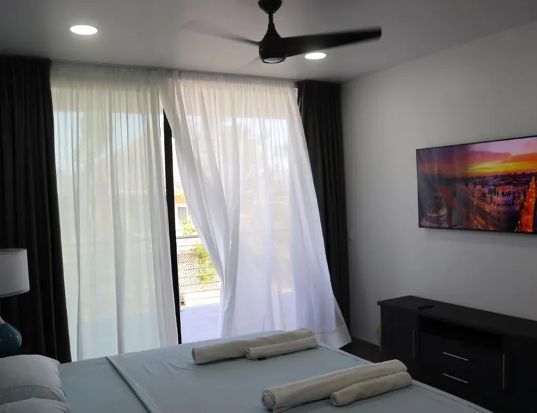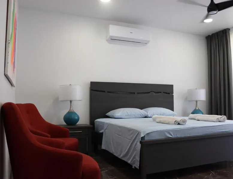 Spacious Holiday Home in San Pedro: Casa Liberta offers a spacious holiday home in San Pedro, Belize. The property features four bedrooms and three bathrooms, ensuring ample space for all guests. Exceptional Facilities: Guests can enjoy a sun terrace, open-air bath, and a year-round outdoor swimming pool. Free WiFi is available throughout the property, enhancing the stay experience. Comfortable Amenities: The holiday home includes air-conditioning, a fully equipped kitchen, and a washing machine. Additional amenities include a private check-in and check-out service, concierge, and free on-site parking. Prime Location: Located 2.5 mi from San Pedro Airport, Casa Liberta is a 9-minute walk from San Pedro Beach. Nearby attractions include yoga classes, walking tours, and bike tours. Guests will have a special experience as the holiday home features a pool with a view. Featuring a private entrance, this spacious holiday home also consists of 4 bedrooms, a seating area and 3 bathrooms with a bath and a shower. In the fully equipped kitchen, guests will find a stovetop, a refrigerator, a dishwasher and an oven. The air-conditioned holiday home provides a flat-screen TV with streaming services, a washing machine, soundproof walls, a tea and coffee maker as well as sea views. The unit offers 4 beds.