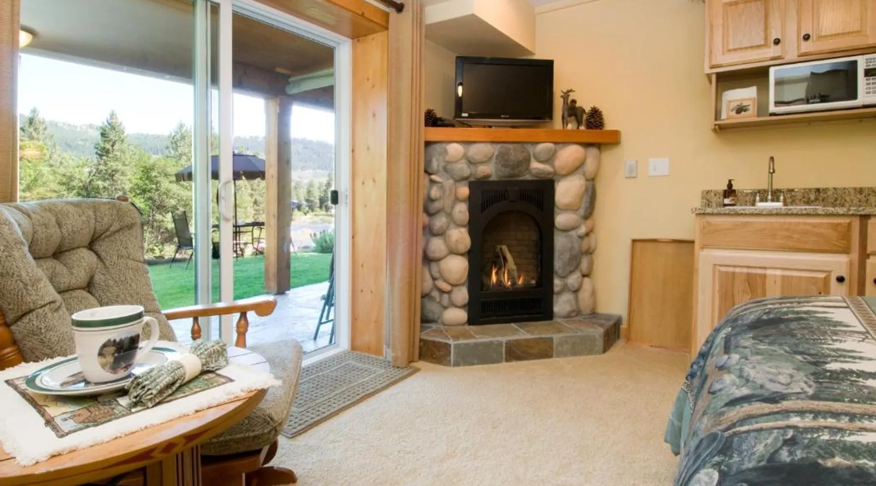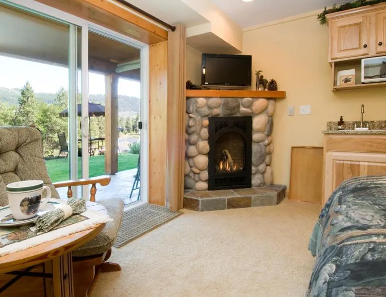 Beachfront Location: Haus Hanika in Leavenworth offers a private beach area and beachfront access. Guests can enjoy water sports facilities and a serene garden. Comfortable Accommodations: Rooms feature air-conditioning, private bathrooms, and balconies with garden or mountain views. Additional amenities include free WiFi, flat-screen TVs, and soundproofing. Dining Experience: Breakfast includes American, vegetarian, and gluten-free options. The on-site restaurant serves fresh pastries, pancakes, and fruits. Activities and Services: Guests can engage in fishing, skiing, hiking, cycling, and film nights. The property provides free on-site parking, a hot tub, and a paid shuttle service. Nearby Attractions: Pangborn Memorial Airport is 29 mi away, and Wenatchee Convention Center is 24 mi from the property. Guests will have a special experience as this double room features a fireplace. In the kitchen, guests will find a refrigerator, kitchenware, a microwave and a tea and coffee maker. The spacious double room offers air conditioning, a private entrance, a terrace with garden views as well as a private bathroom featuring a walk-in shower. The unit offers 1 bed.