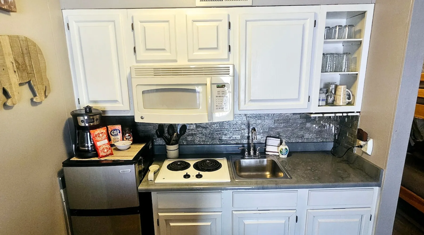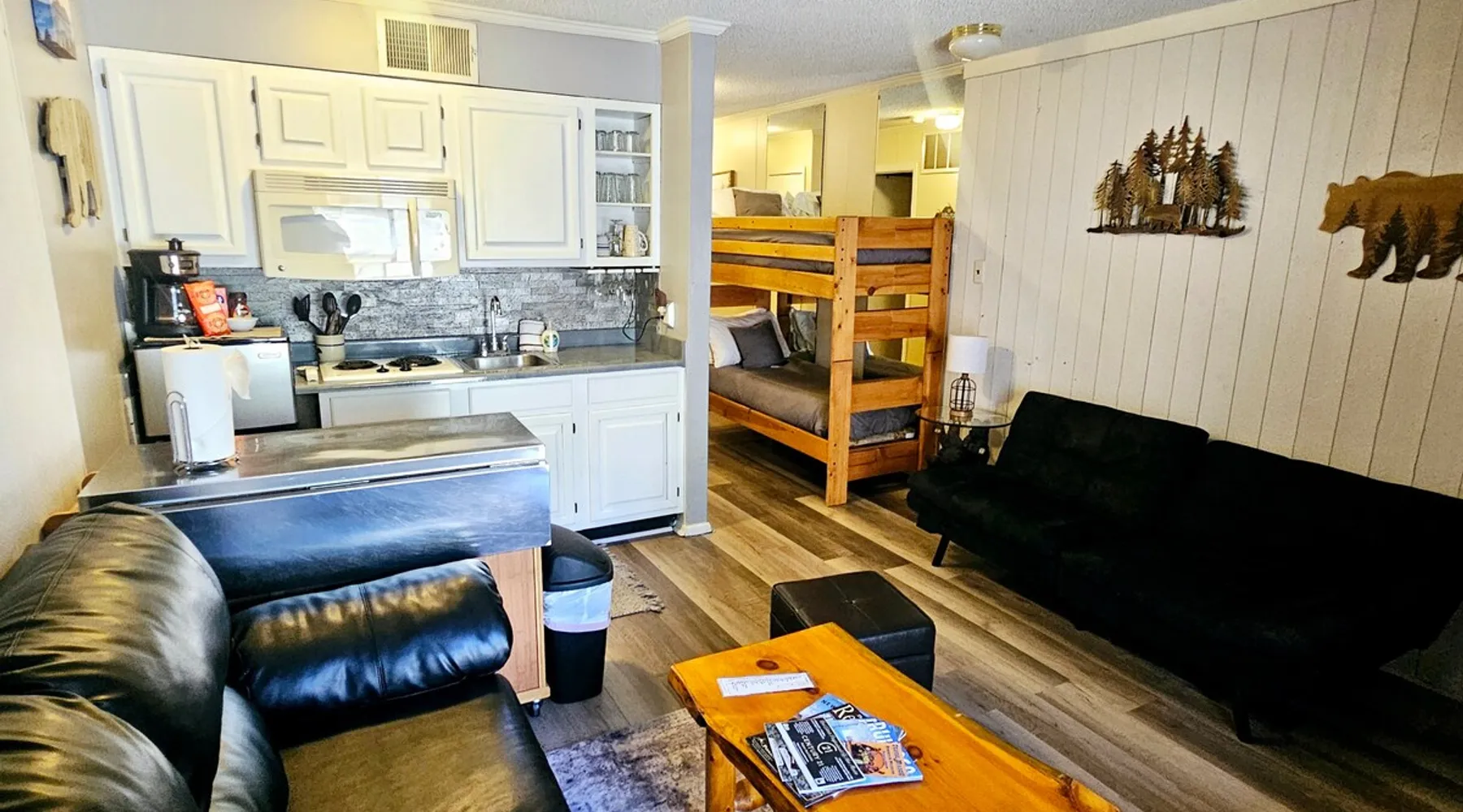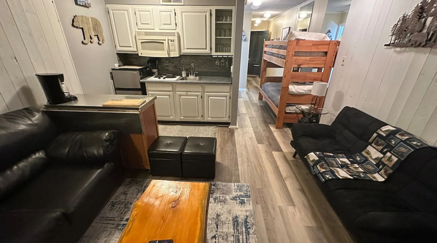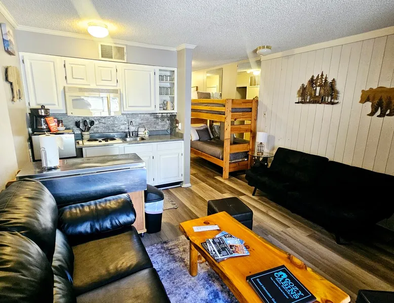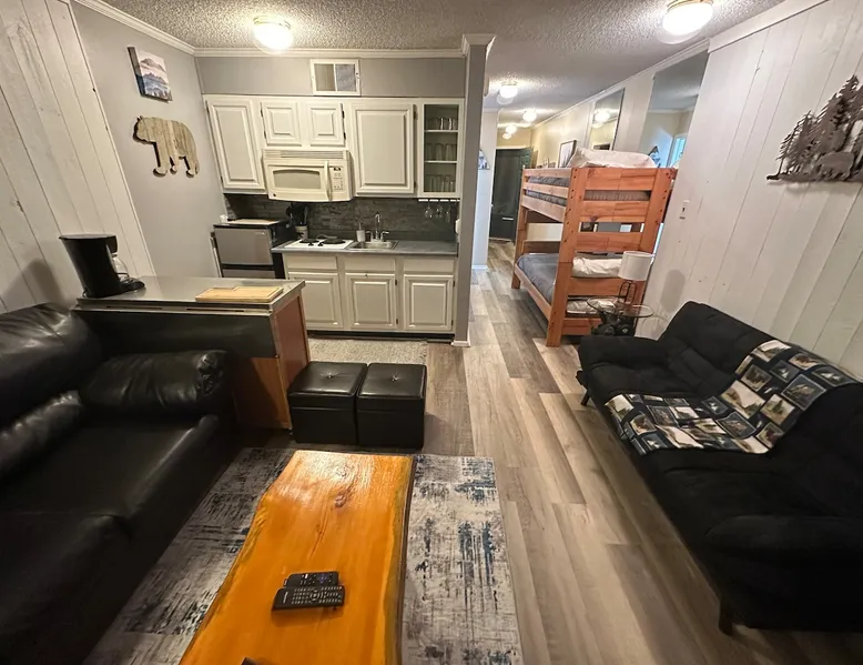 This special place is close to everything, making it easy to plan your visit. Located close to Inn of the Mountain Gods and Down Town Ruidoso this condo is the perfect place to stay. From the balcony enjoy deer, elk, ducks, and other animals while listening to the creek water run. Inn of the Mountain Gods offers fishing, canoeing, and paddle boats. Fun Trackers family entertainment is just down the road and has go carts, mini golf, bumper boats, and maze. The space This 1 bedroom condo has a queen size bedroom in the bedroom along with twin size bunk bed. The couch in the living room folds out to make a bed and there is also a futon couch.