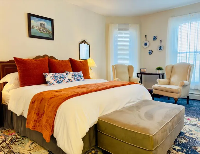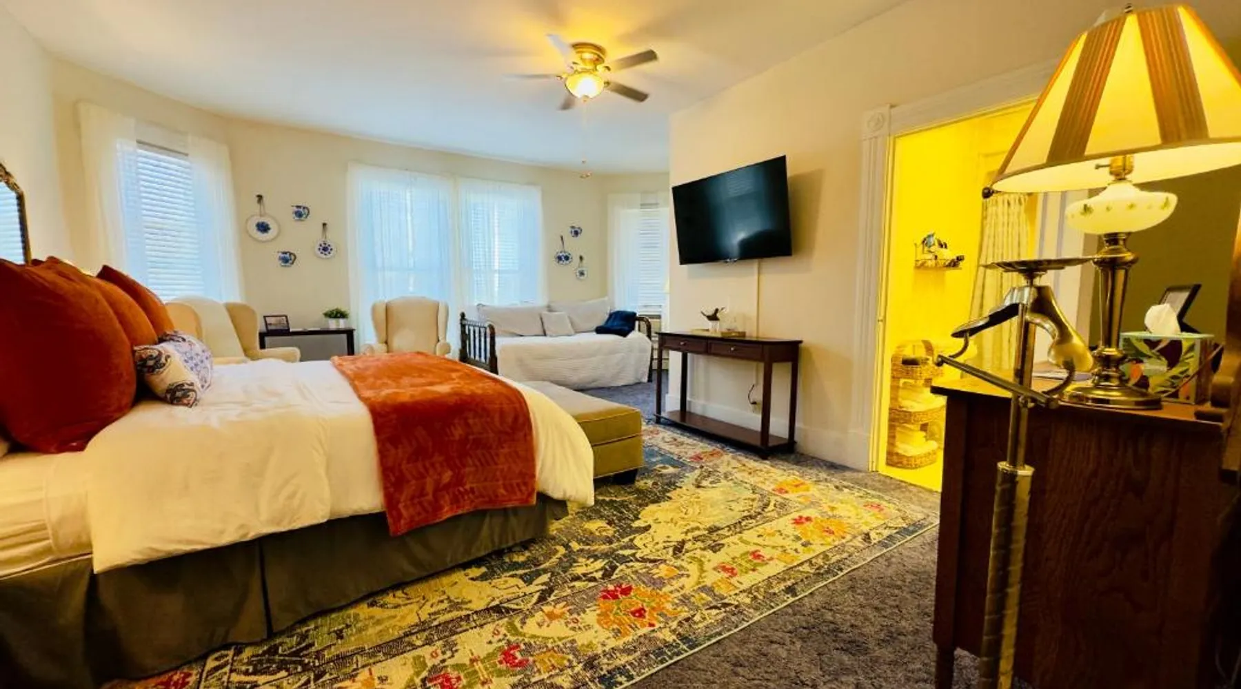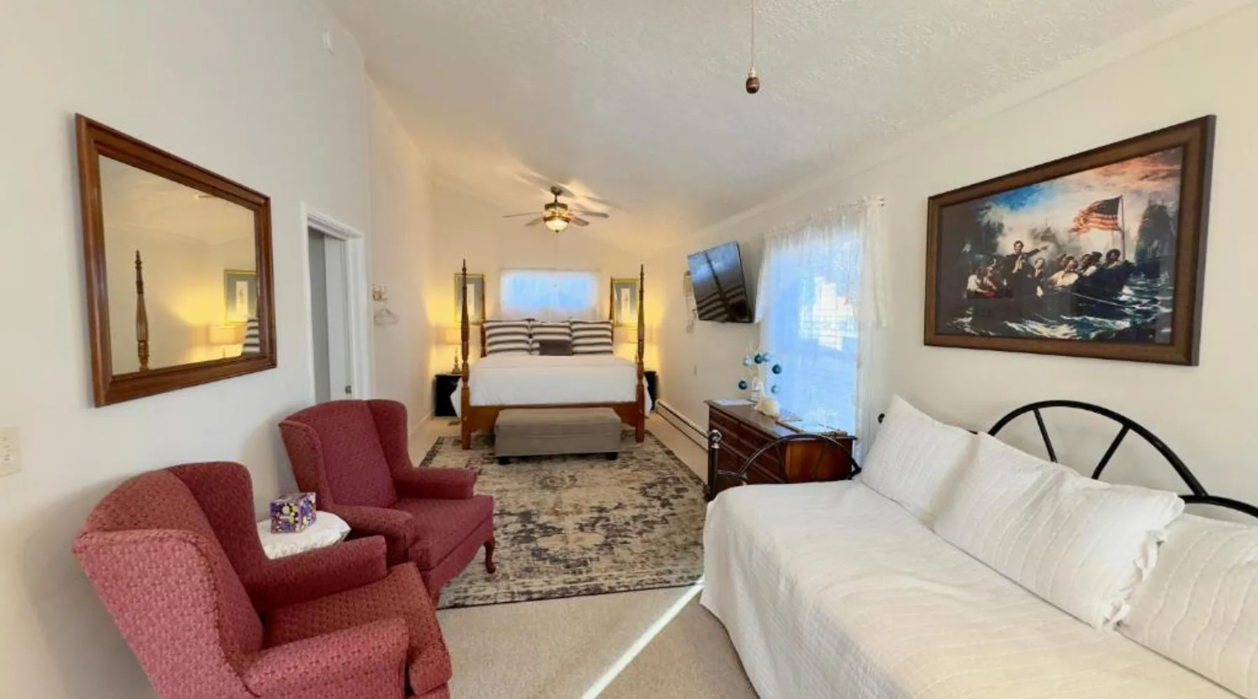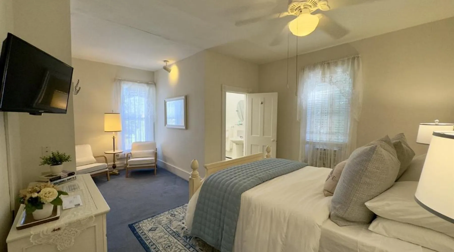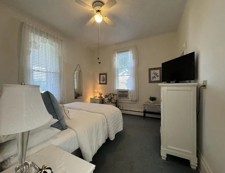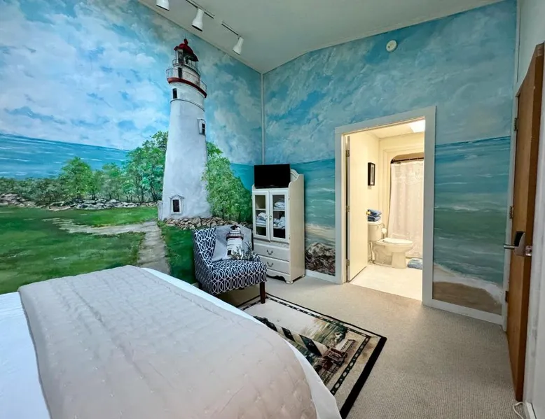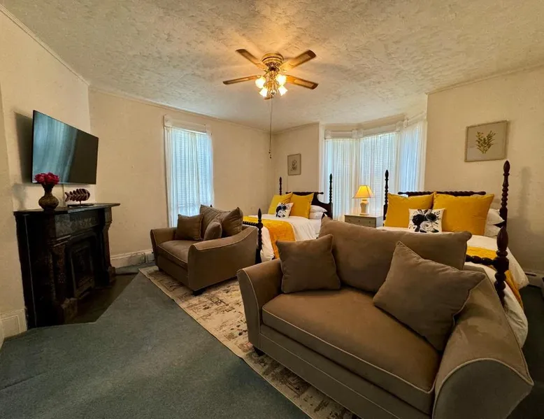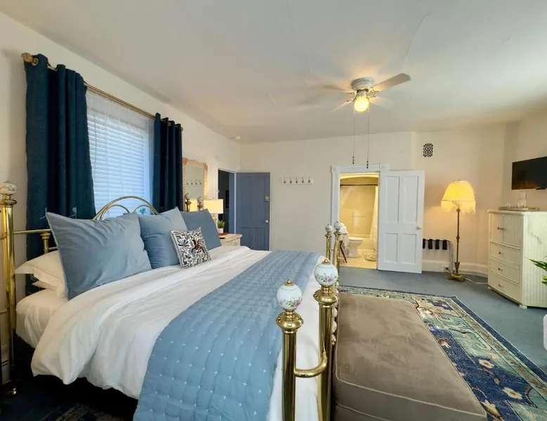 Historic Setting: Victorian Inn Bed And Breakfast in Lakeside Marblehead offers a recently renovated historic building with a sun terrace and free WiFi. Guests enjoy garden views and a serene environment. Comfortable Accommodations: The property features family rooms, a lounge, and a public bath. Additional amenities include an outdoor fireplace, fitness room, and shared kitchen. Free on-site private parking is available. Delicious Breakfast: A variety of breakfast options are served, including continental, American, and full English/Irish. Fresh pastries, warm dishes, fruits, and juice enhance the morning experience. Local Attractions: Located 17 mi from Cedar Point Amusement Park and 6.2 mi from Marblehead Lighthouse, the property is also close to African Safari Wildlife Park (2.1 mi) and Portage River (7.5 mi). Boating and yoga classes are available. Toledo Express Airport is 62 mi away. Providing free toiletries, this triple room includes a private bathroom with a bath, a shower and a hairdryer. Guests will find a refrigerator, kitchenware, a microwave and a toaster in the fully equipped kitchenette. The triple room also offers a barbecue. The air-conditioned triple room provides a flat-screen TV with streaming services, a mini-bar, a tea and coffee maker, a seating area as well as garden views. The unit offers 2 beds.
