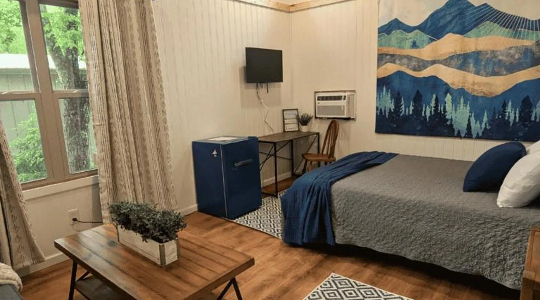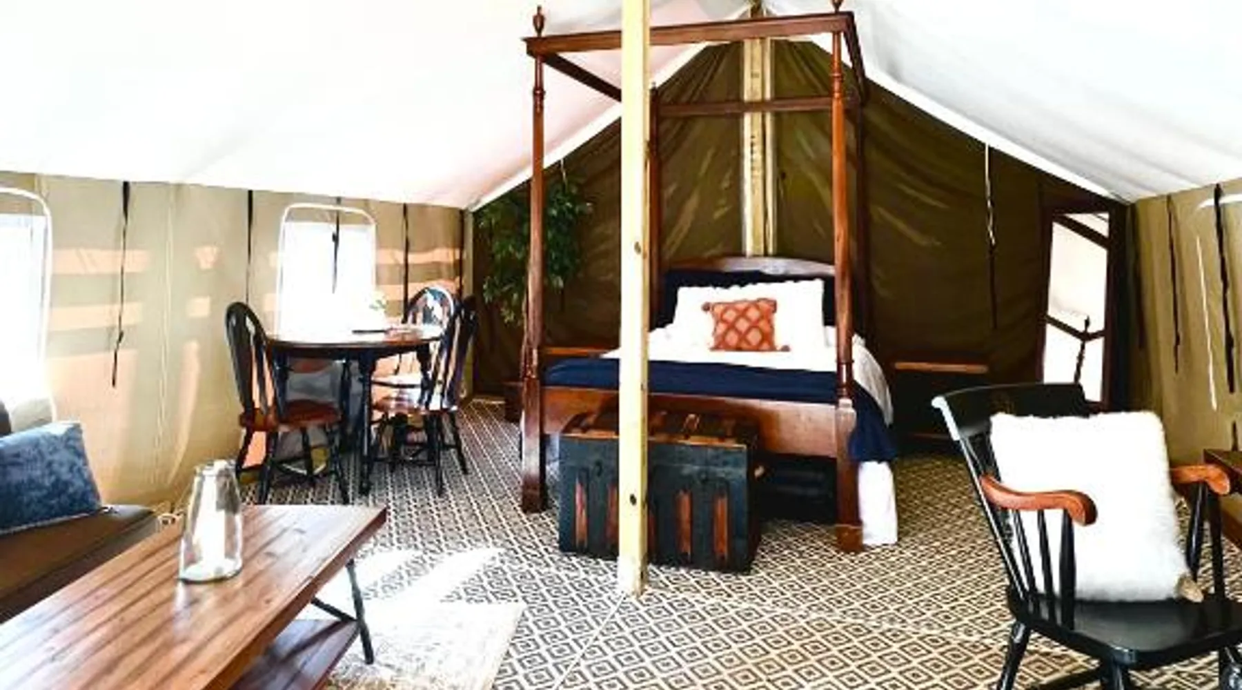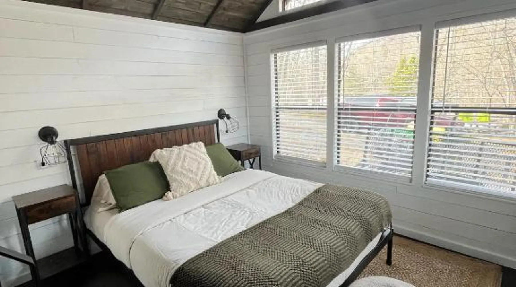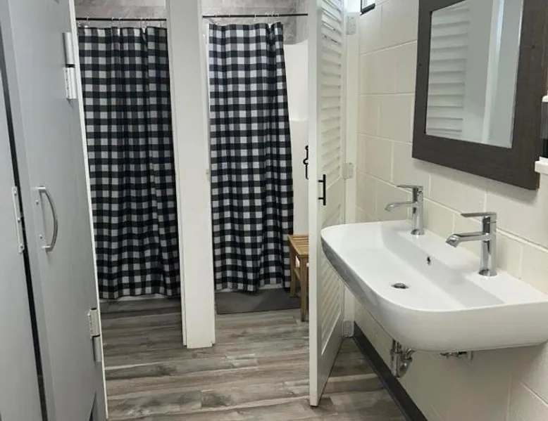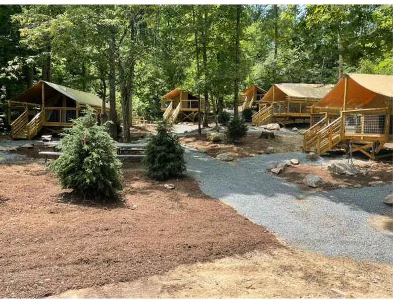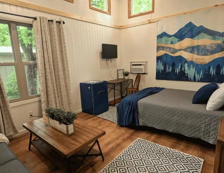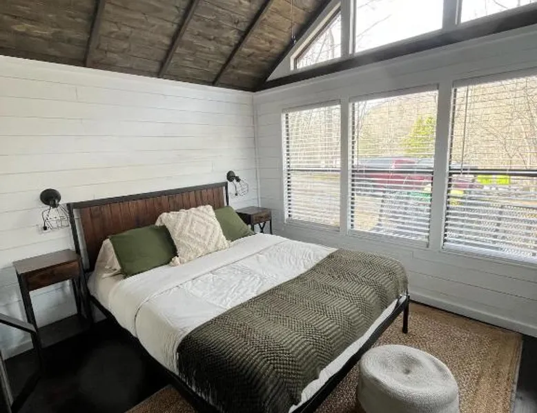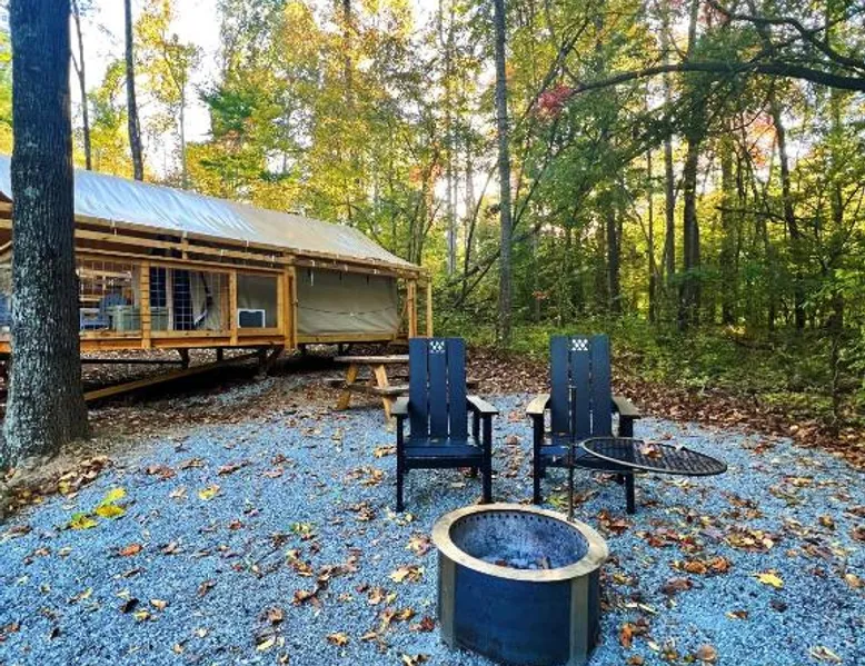 Accommodations Features: Outdoor Adventure Retreats - Wilderness Cove Campground in Saluda offers family rooms with private entrances. Each unit includes air-conditioning, a work desk, and a dining area. Amenities and Facilities: Guests enjoy a private beach area, free WiFi, an outdoor fireplace, and a minimarket. Additional facilities include a picnic area, outdoor seating, barbecue facilities, and free on-site private parking. Activities and Surroundings: The campground provides opportunities for fishing, hiking, and cycling. Mountain and river views enhance the outdoor experience. Asheville Regional Airport is 24 mi away. This air-conditioned family room has a desk, an outdoor dining area, an inner courtyard view and a shared bathroom. The unit has 1 bed and 1 futon.