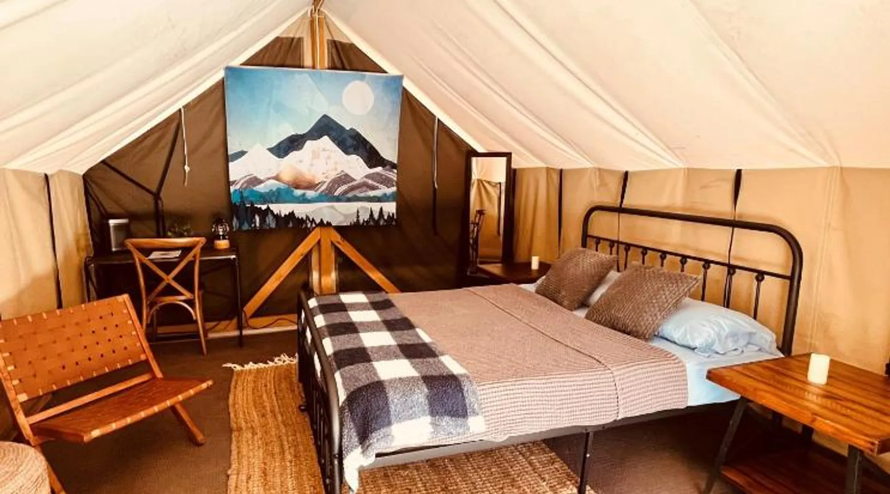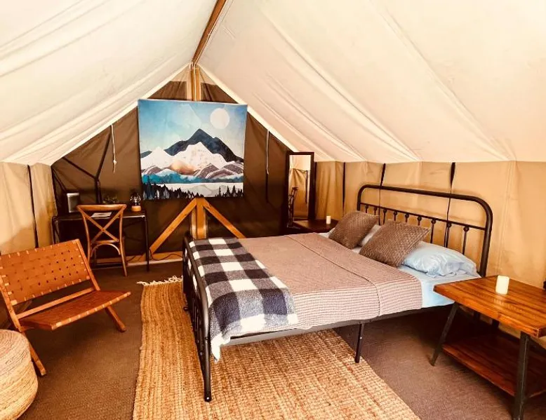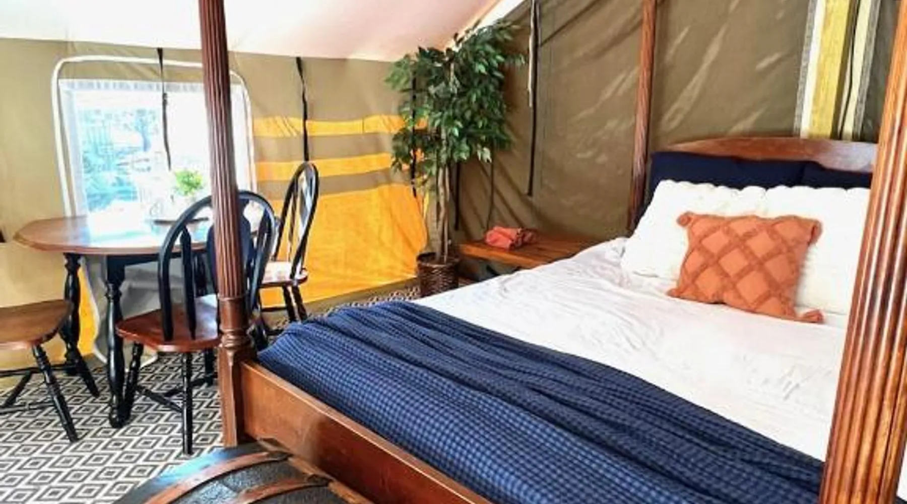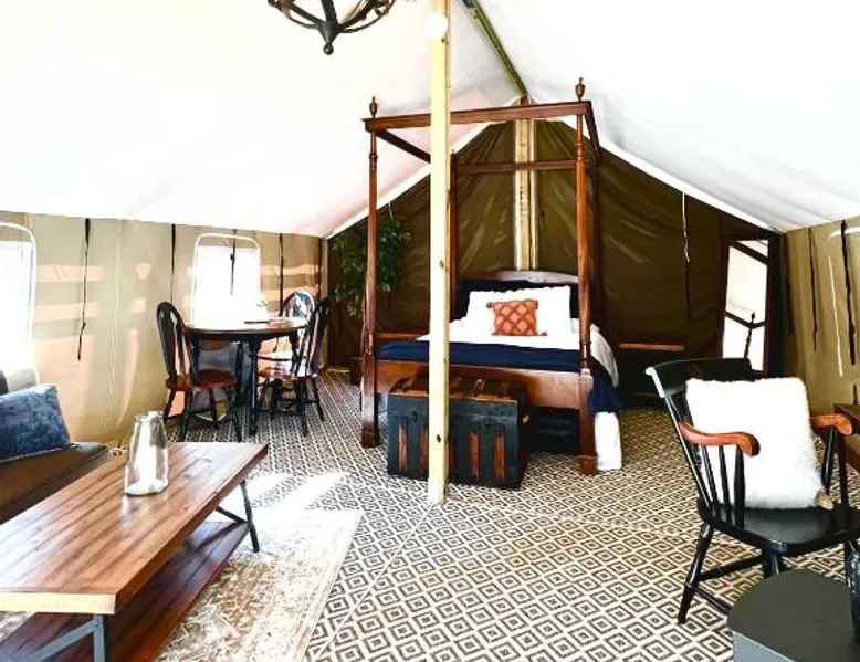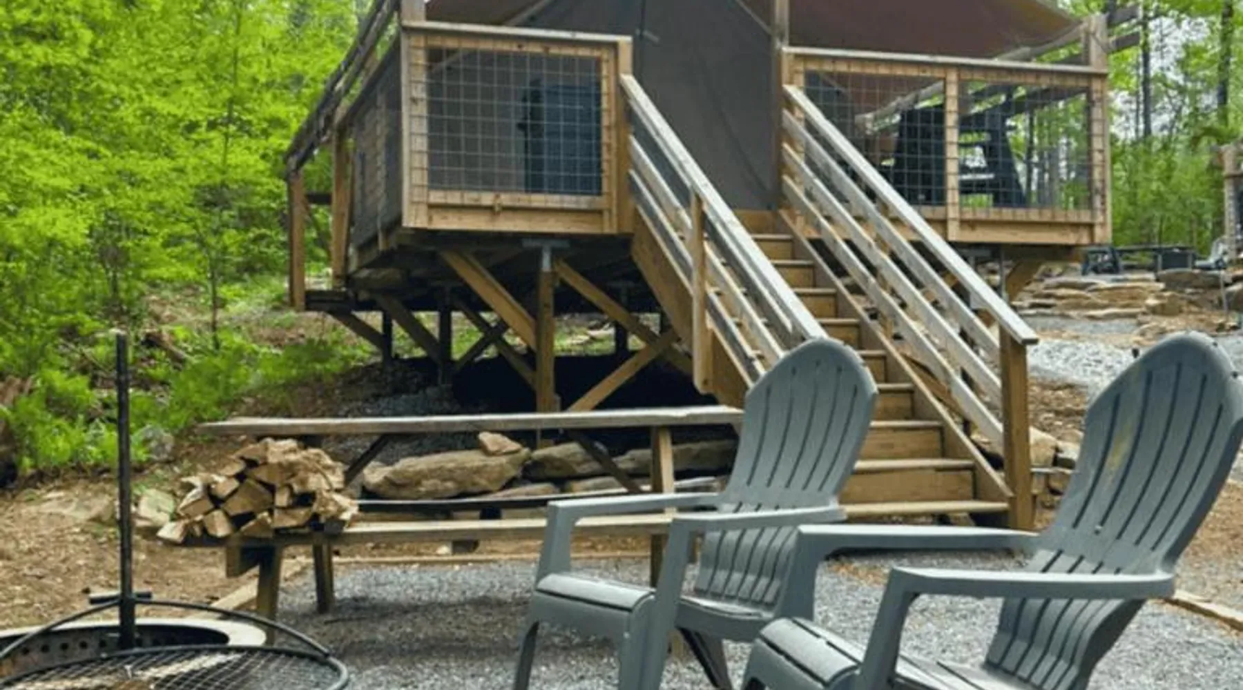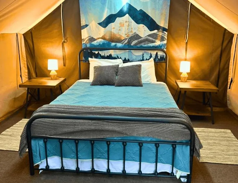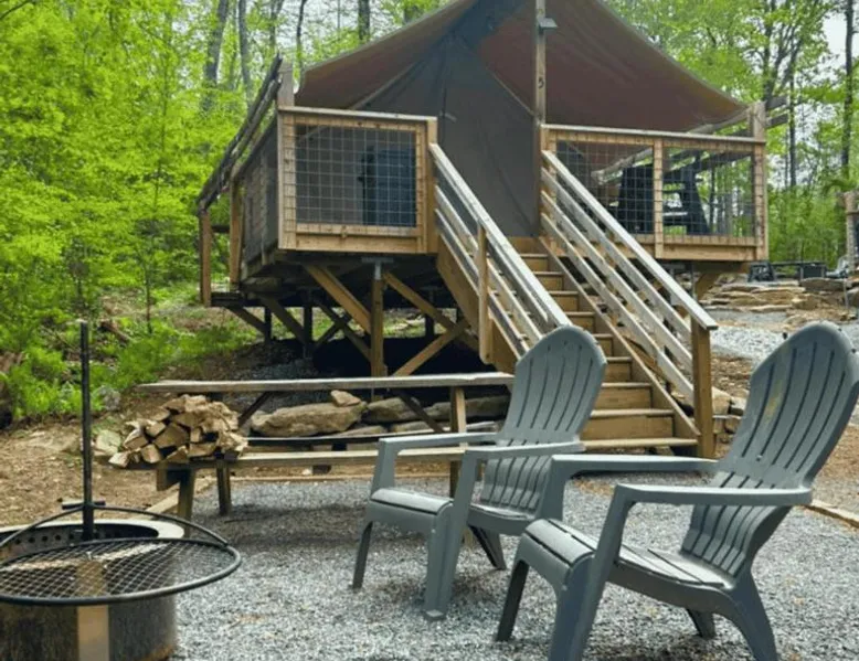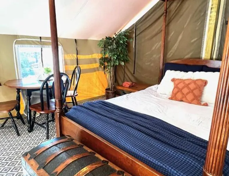Accommodations Features: Outdoor Adventure Retreats - Wilderness Cove Campground in Saluda offers family rooms with private entrances. Each unit includes air-conditioning, a work desk, and a dining area. Amenities and Facilities: Guests enjoy a private beach area, free WiFi, an outdoor fireplace, and a minimarket. Additional facilities include a picnic area, outdoor seating, barbecue facilities, and free on-site private parking. Activities and Surroundings: The campground provides opportunities for fishing, hiking, and cycling. Mountain and river views enhance the outdoor experience. Asheville Regional Airport is 24 mi away. This air-conditioned family room has a desk, an outdoor dining area, an inner courtyard view and a shared bathroom. The unit has 1 bed and 1 futon.