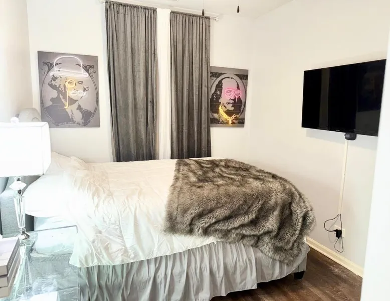 Modern Comforts: Prime Location Retreat 4 Bedrooms w Parking in Chicago offers a spacious apartment with four bedrooms and a private garden. Free WiFi is available throughout the property. Convenient Facilities: Guests can enjoy a fully equipped kitchenette, balcony, washing machine, and private bathroom. Additional amenities include a patio, barbecue, and outdoor furniture. Prime Location: Located 6.8 mi from Midway International Airport, the apartment is close to attractions such as Guaranteed Rate Field (2.4 mi) and the Museum of Science and Industry (3 mi). The private pool is a top feature of this apartment. Boasting a private entrance, this spacious apartment also comes with 3 separate bedrooms and 1 bathroom with a bath and a shower. Guests will find a stovetop, a refrigerator, kitchenware and an oven in the fully equipped kitchen. The apartment also includes a barbecue. This apartment has air conditioning, a washing machine, a flat-screen TV and a patio. The unit has 4 beds.
